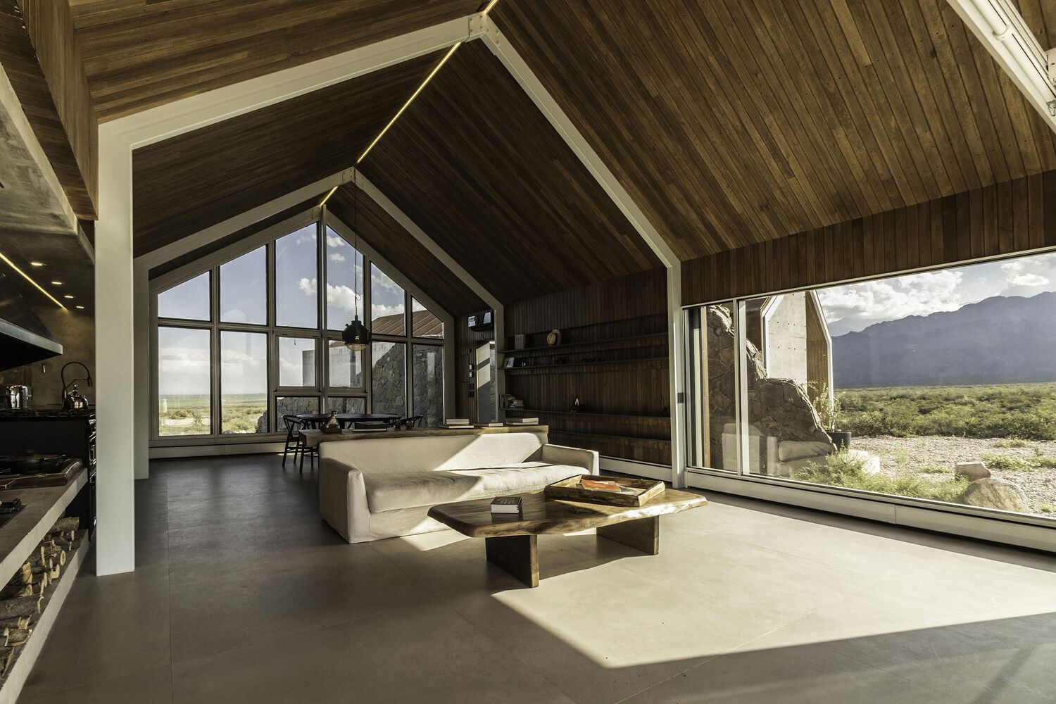 Projekt tego wyjątkowego schronienia inspirowany jest tradycyjnymi górskimi szałasami „pircas”, budowanymi z kamienia przez rdzennych mieszkańców And. Architekci zdecydowali się stworzyć konstrukcję przypominającą pozostałości starożytnej budowli, idealnie wpisującą się w surowy krajobraz. Wybór padł na kamień z domieszką tlenku żelaza, a dopełnieniem stała się elewacja z kortenowskiej stali, której rdzawy odcień nawiązuje do naturalnych barw regionu.