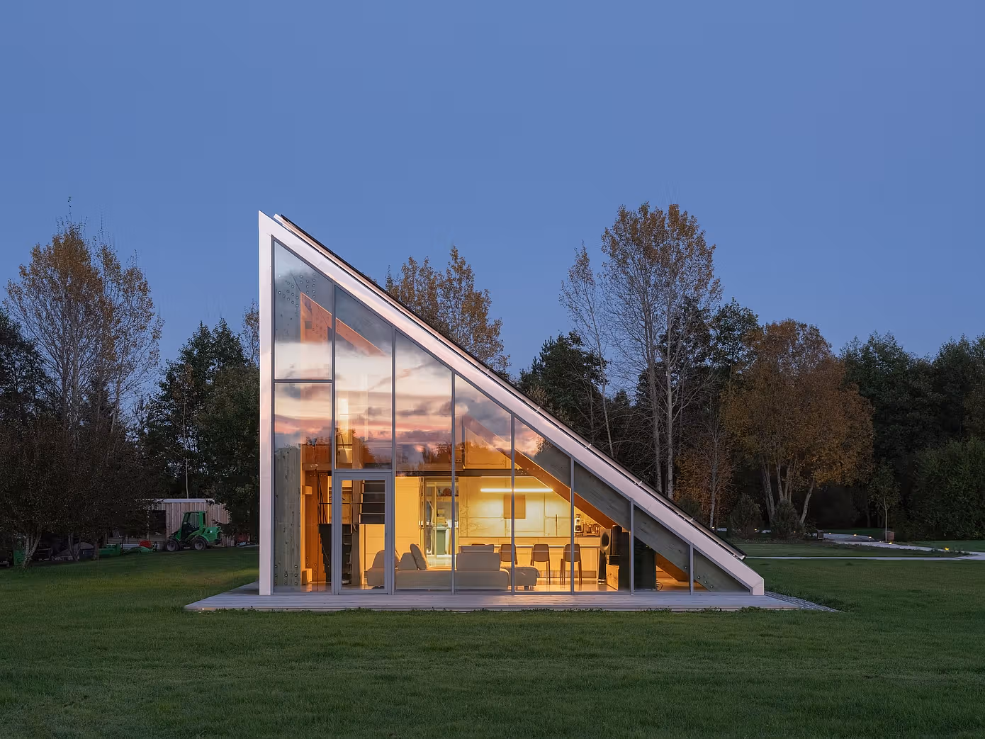 O zmierzchu metalowa bryła zaczyna świecić od środka, gdy maszyny odpoczywają, a goście spoglądają na krajobraz pól. Stodoła w Utriai udowadnia, że budynek gospodarczy może być jednocześnie miejscem pracy, spotkań i noclegu, nie tracąc swojej wiejskiej tożsamości. To współczesna architektura, która poszerza znaczenie pojęcia stodoły, pozostając wierna rytmowi życia na wsi.