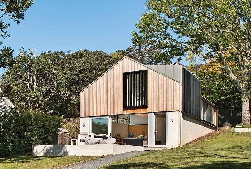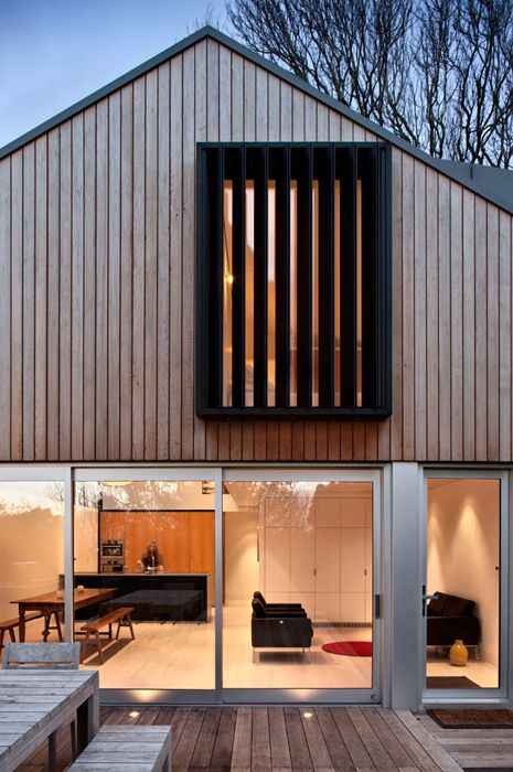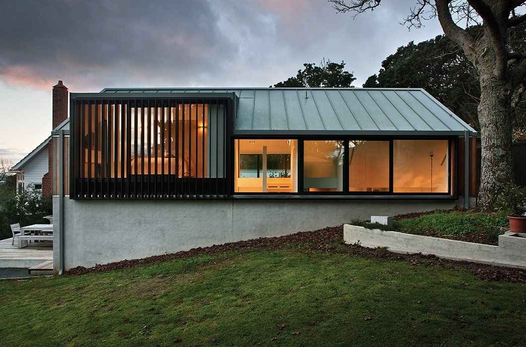 Ten niewielki, rodzinny dom w Auckland w Nowej Zelandii powstał w miejscu dawnego ceglanego garażu z lat 80., w którym nie pozostał żaden ślad po dawnej graciarni. Architekt Marc Lithgow z pracowni Space Division przekształcił istniejącą konstrukcję w funkcjonalny i energooszczędny dom jednorodzinny dla czteroosobowej rodziny. Wykorzystanie częściowo wkopanej w zbocze bryły pozwoliło spełnić lokalne wymogi planistyczne, skrócić czas realizacji do zaledwie dziewięciu miesięcy oraz stworzyć współczesną architekturę mieszkaniową, która łączy prostotę formy z wysoką efektywnością energetyczną, nawiązując pośrednio do idei, jaką reprezentuje nowoczesna stodoła.