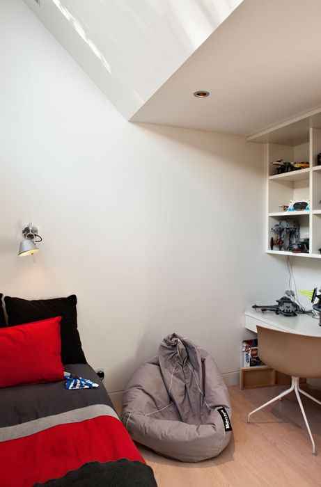Wnętrze domu zaprojektowano z niemal inżynierską precyzją, porównywaną przez architekta do układanki przypominającej Kostkę Rubika. Dwie łazienki zostały umieszczone jedna nad drugą przy głównej klatce schodowej, a przestrzeń pod schodami wykorzystano na prysznic i ukryte instalacje. Wszystkie techniczne elementy zostały starannie schowane, co pozwoliło zachować czystość formy i wizualny porządek. Efektem jest kompaktowy, nowoczesny dom, który pokazuje, jak adaptacja istniejącej zabudowy może prowadzić do powstania wysokiej jakości architektury mieszkaniowej.