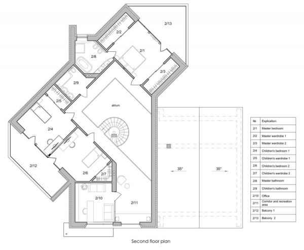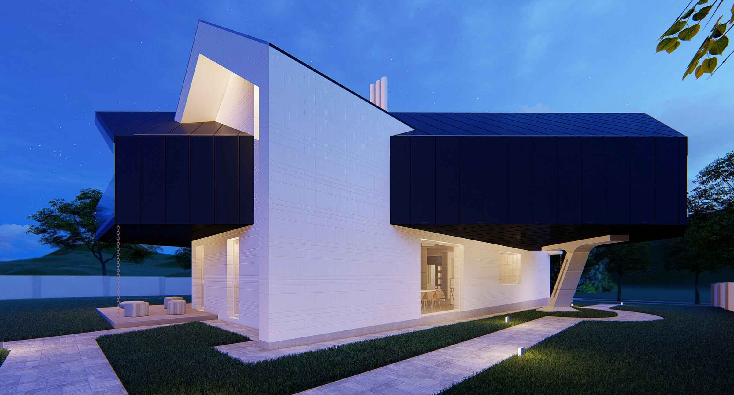 Strut House to wyjątkowy dom jednorodzinny o powierzchni 297 m², zaprojektowany przez Golub Architects dla młodej, kreatywnej rodziny mieszkającej kilka kilometrów od Kijowa. Budynek powstał na prostokątnej działce o powierzchni 1500 m², usytuowanej na wzgórzu z widokami na dwie doliny, gdzie można obserwować zarówno wschody, jak i zachody słońca. Architektura domu opiera się na świadomej grze geometrią – parter zaprojektowano zgodnie z ortogonalnym układem działki, natomiast piętro zostało obrócone o 45 stopni, co pozwoliło maksymalnie otworzyć wnętrza na krajobraz i nadało bryle dynamiczny, rzeźbiarski charakter, kojarzący się z estetyką, jaką reprezentuje nowoczesna stodoła.