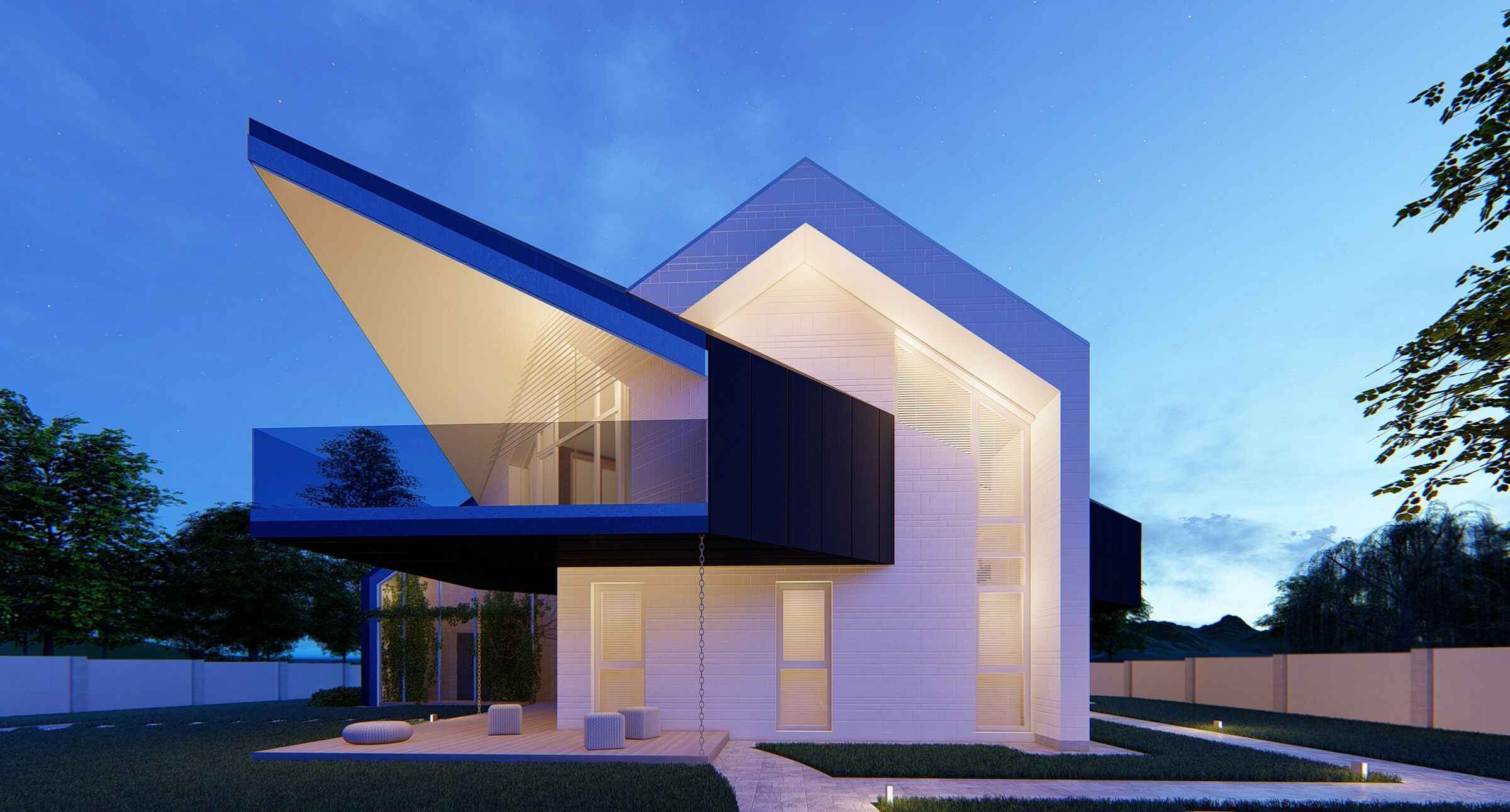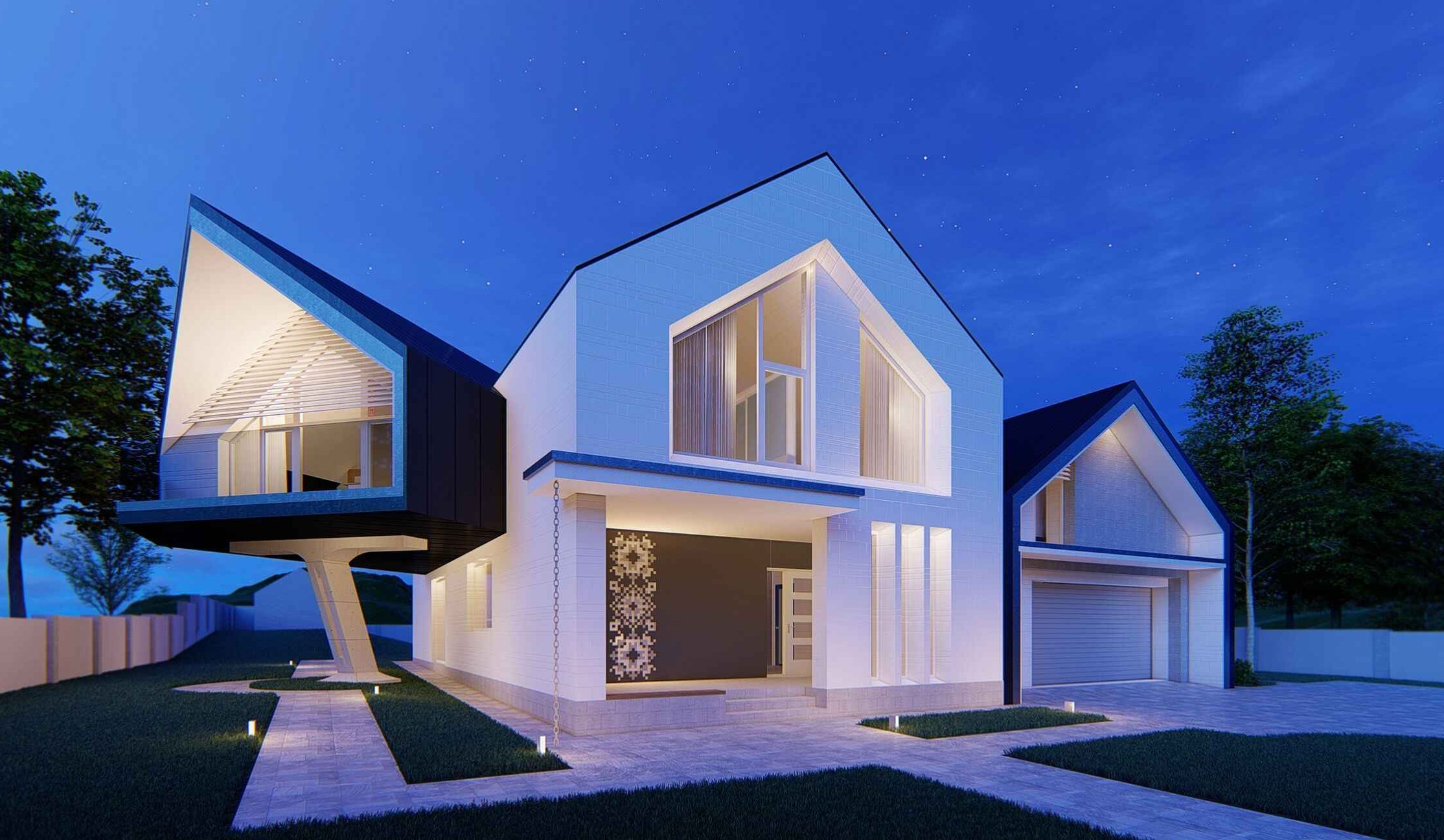 Geometryczny dom jednorodzinny z panoramicznymi widokami