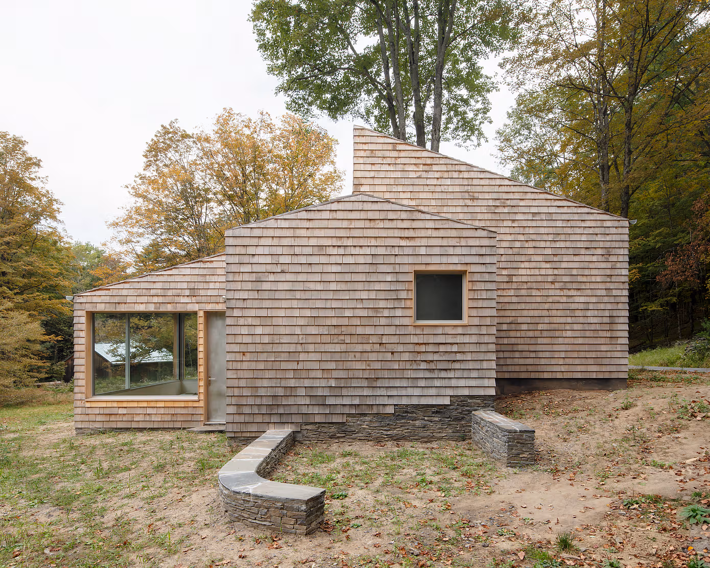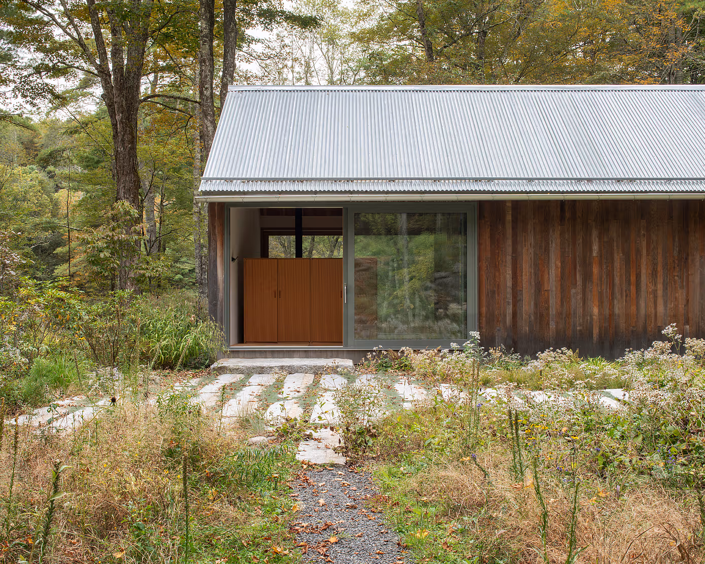 W lesie niedaleko miejscowości Accord w stanie Nowy Jork powstał kameralny zespół budynków, który redefiniuje pojęcie komfortu w stylu cabin. Projekt Studio & Guest House autorstwa Neil Logan to przekształcenie dwóch skromnych obiektów – dawnego domu i budynku gospodarczego – w przestrzeń pracy i gościnny azyl.