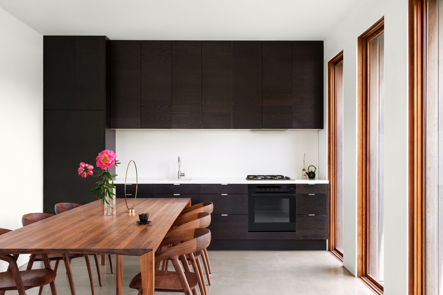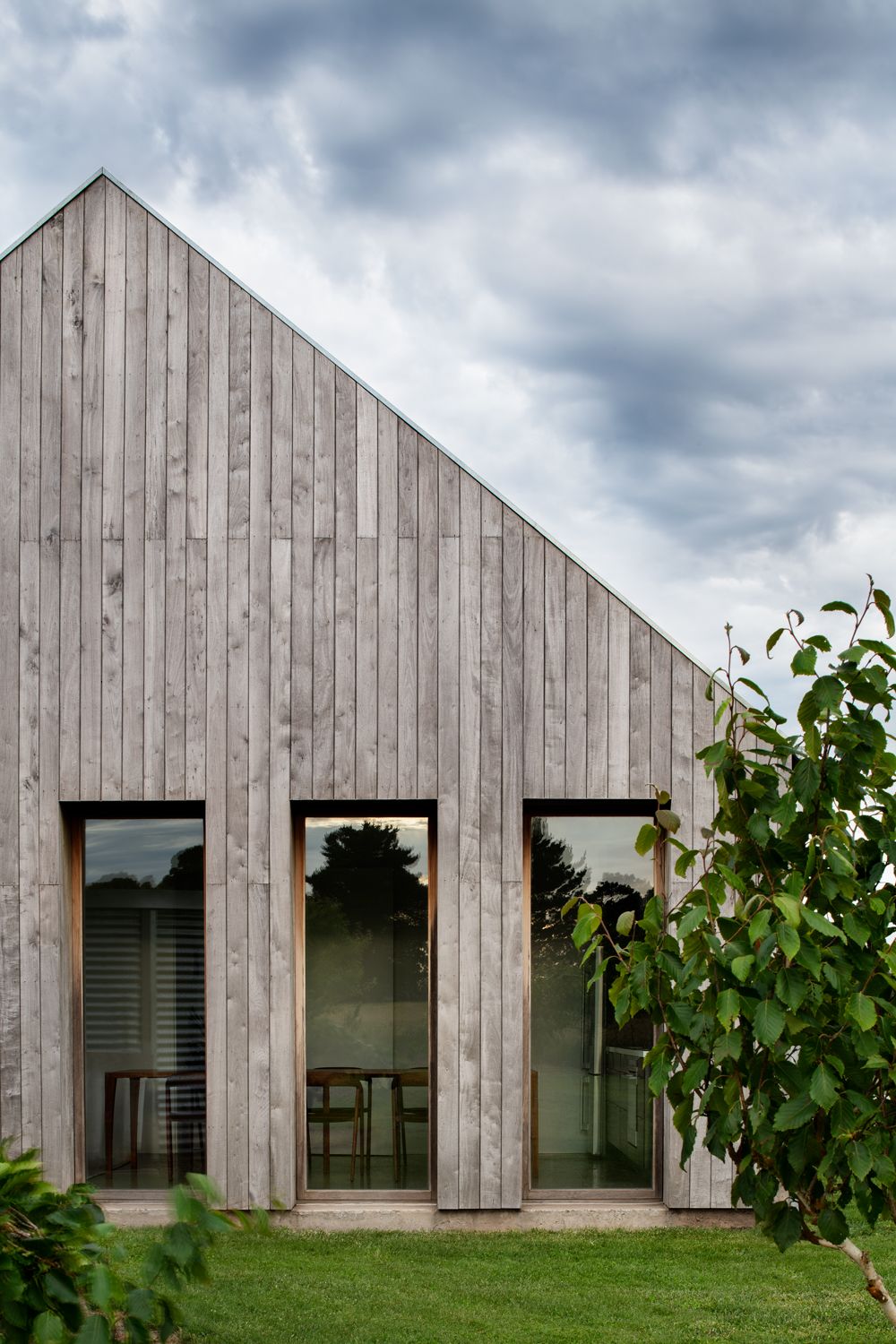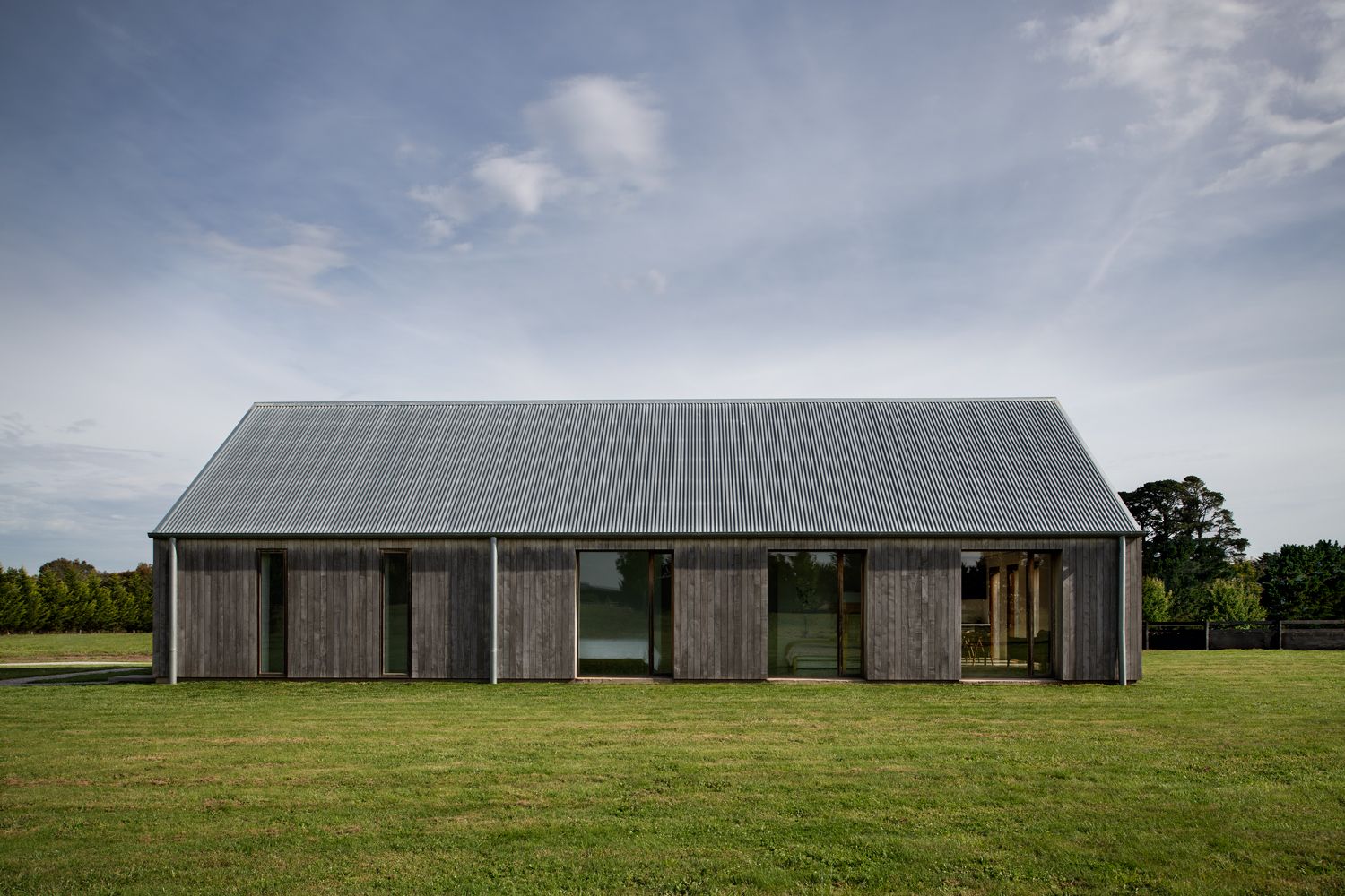 Architektura Barn House opiera się na minimalistycznej geometrii i przemyślanej orientacji względem słońca i wiatru. Fasada od strony południowej została zaprojektowana jako zamknięta, aby chronić wnętrze przed zimnymi wiatrami, natomiast okna z czerwonego cedru na północnych elewacjach otwierają wnętrze na otaczający krajobraz, oferując prywatność i widoki. Przemyślana prostota widać także we wnętrzach – przestrzenie są niemal puste, wypełnione światłem i cieniem, które zmieniają się wraz z porami dnia i roku. Ten celowy minimalizm buduje intymność, harmonię i naturalny rytm życia. Barn House to dom, który z biegiem czasu ewoluuje wraz z potrzebami mieszkańców, przewidując przyszłą rozbudowę i podział na strefy prywatne i dzienne.