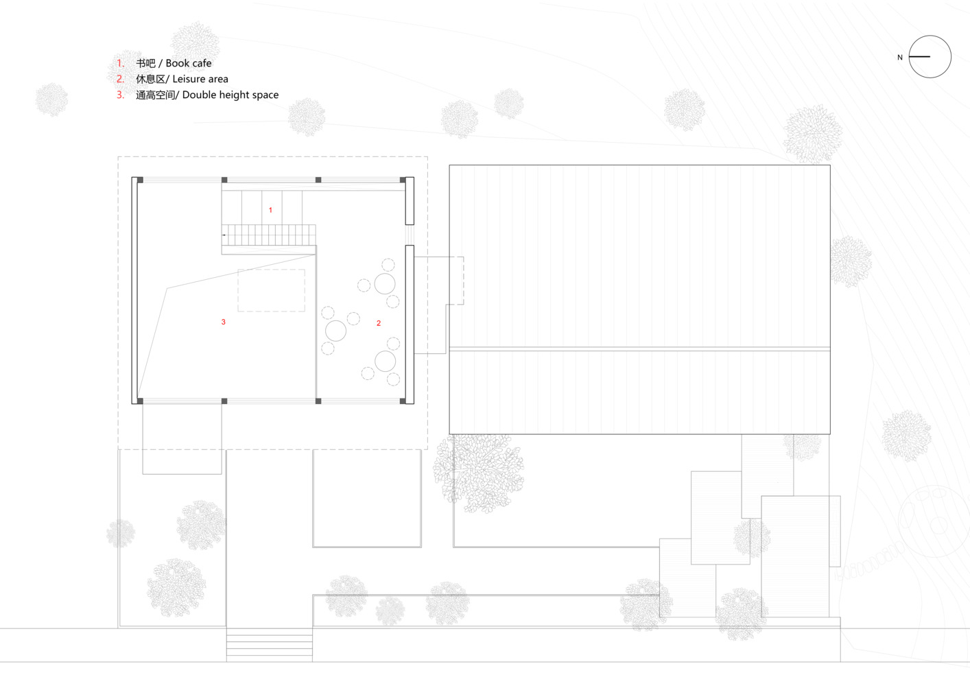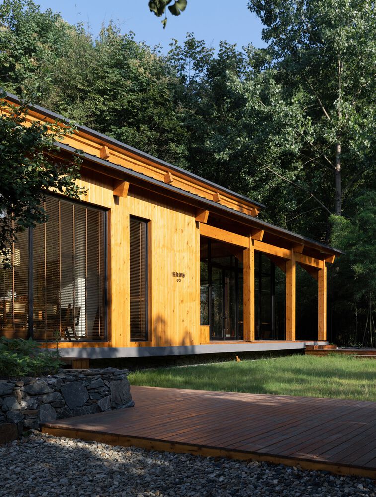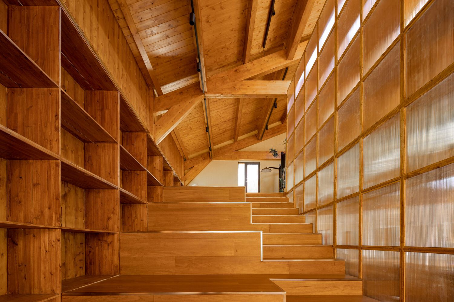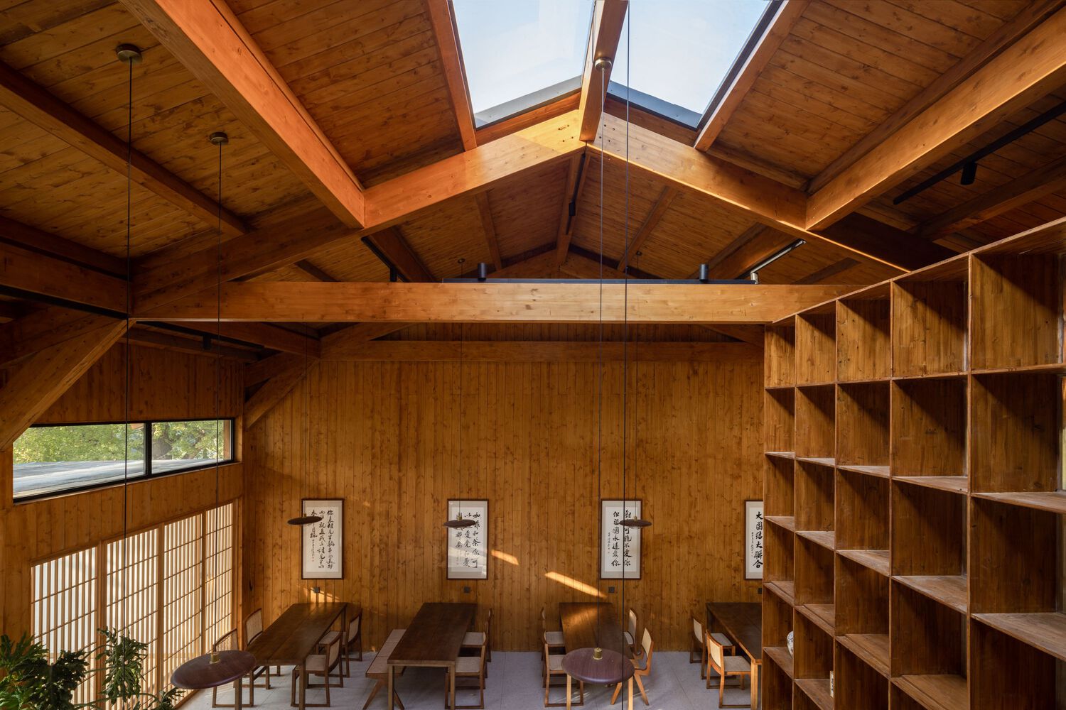 Kontynuując ideę „lekkiej interwencji” w wiejskim krajobrazie, stacja Baimei została zaprojektowana jako konstrukcja drewniana. Oba budynki wykorzystują ten sam prototyp konstrukcyjny, który opiera się na systemie szkieletu drewnianego o rozpiętości 10 metrów, bez słupów. Dzięki temu przestronność i otwartość budynku stają się kluczowymi elementami projektu. Dwuspadowy dach budynku nr 1 został przesunięty, co stworzyło przestronną powierzchnię z wysokimi oknami bocznymi, pozwalającymi na dostęp do naturalnego światła. Wnętrze budynku nr 2 charakteryzuje się antresolą oraz przestronnym, schodkowym barem z książkami, który tworzy przyjazną atmosferę do spędzania czasu wśród książek i sztuki. Przestrzeń została zaprojektowana z myślą o interakcji z naturą, w której światło odgrywa kluczową rolę.