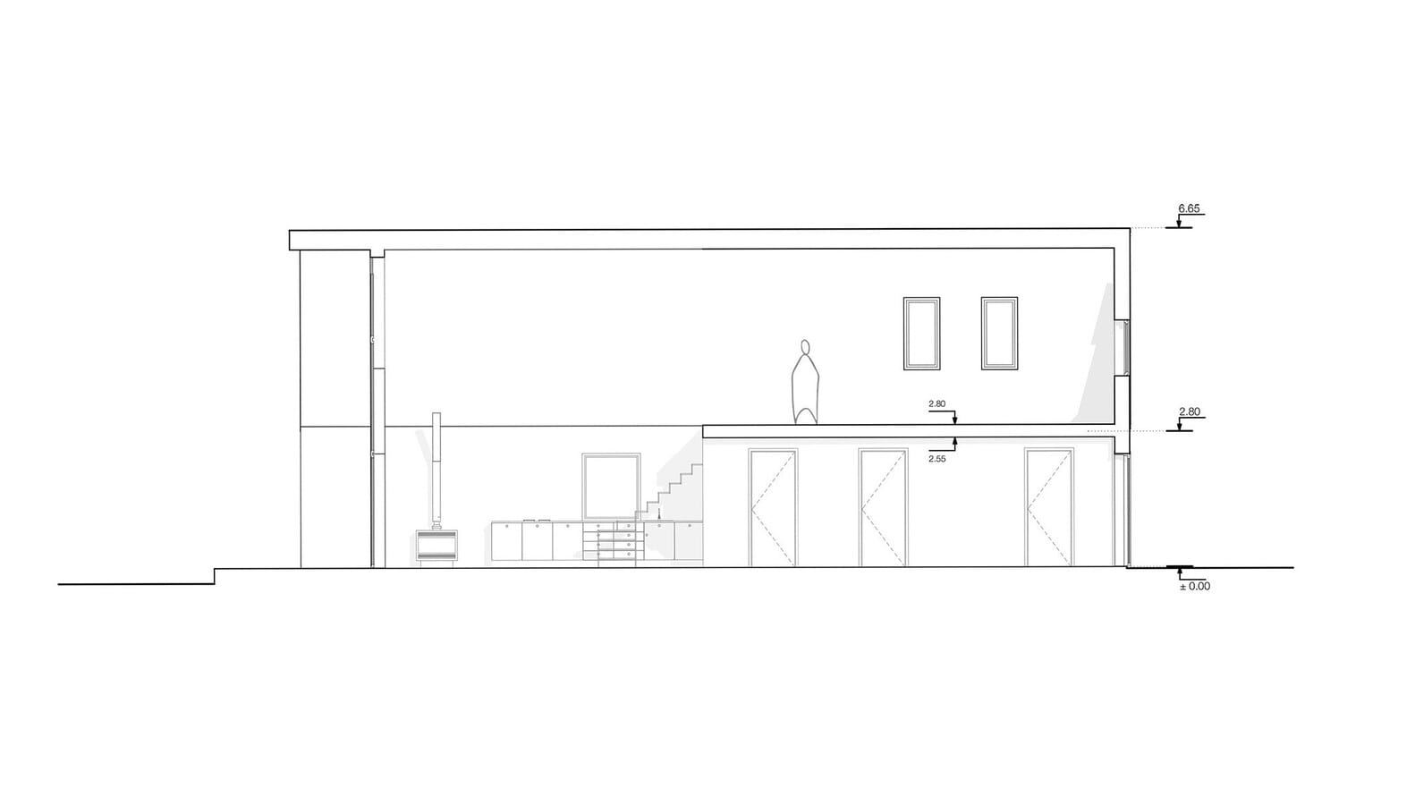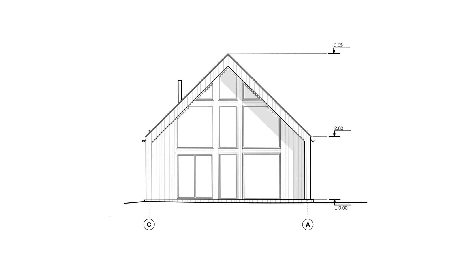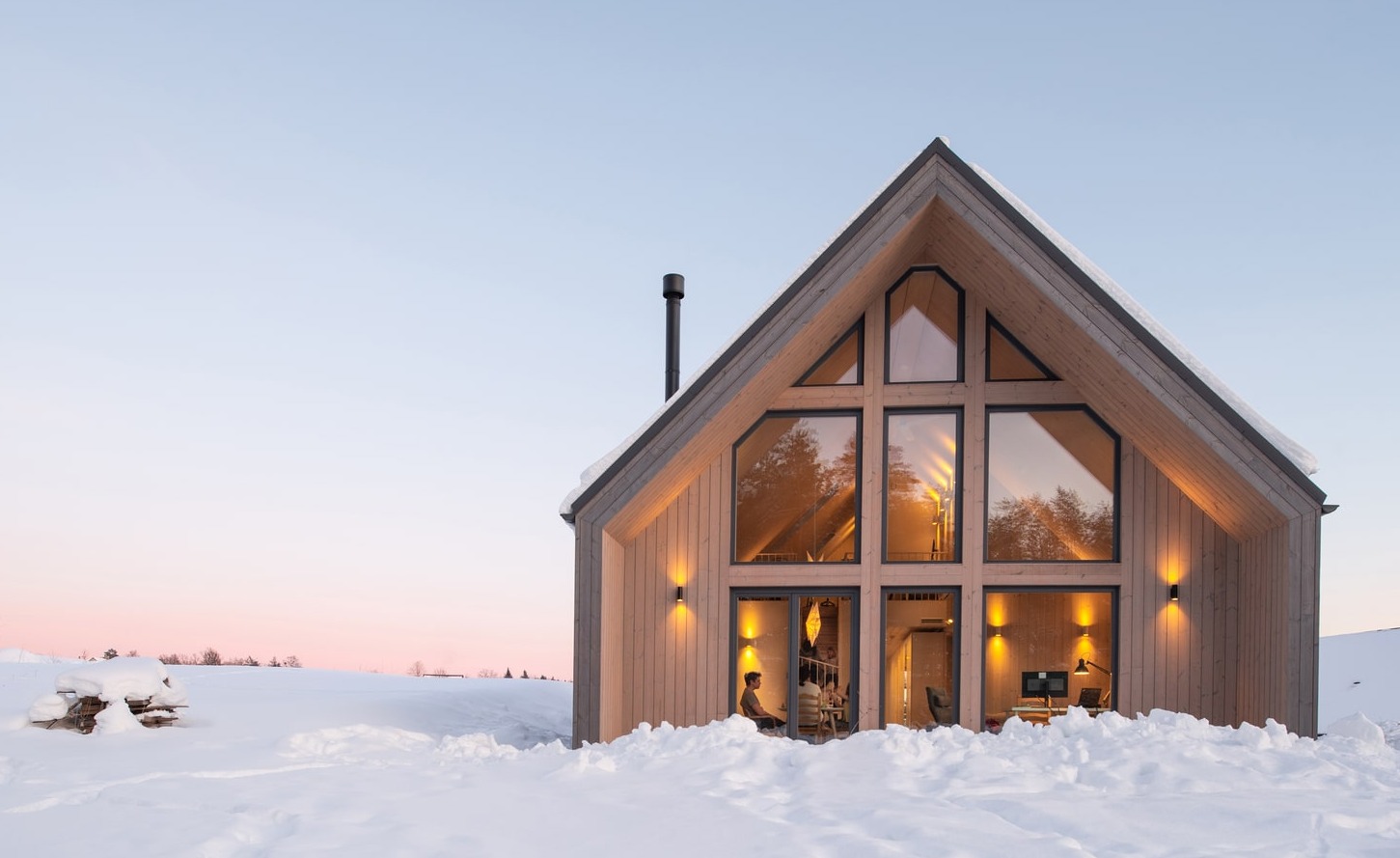 Z uwagi na ścisłe regulacje budowlane, projekt musiał spełniać określone wymagania dotyczące konstrukcji, wysokości oraz kąta nachylenia dachu. Jednak kluczowym aspektem było harmonijne wkomponowanie budynku w naturalne otoczenie. Architekci szczegółowo przeanalizowali ścieżkę słońca, by maksymalnie wykorzystać światło dzienne i stworzyć optymalne warunki do życia. Dom o powierzchni 145 m² usytuowano na szczycie wzgórza, co pozwoliło otworzyć wnętrze na panoramiczne widoki lasu. Cała działka została funkcjonalnie podzielona na strefy. Od strony zachodniej powstała przestrzeń rekreacyjna, natomiast od wschodu zlokalizowano prywatną szklarnię oraz ogród warzywny, wpisujące się w ideę ekologicznego życia.