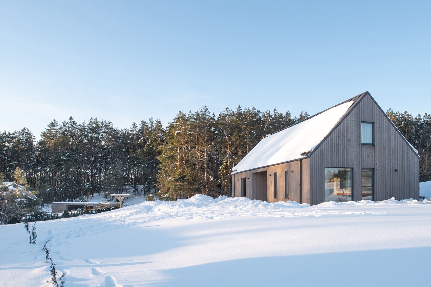 Sun Path House to projekt domu, który pozwala mieszkańcom żyć w naturalnym rytmie słońca. Zlokalizowany w malowniczej, zabytkowej miejscowości Kiernów na Wileńszczyźnie na Litwie, dom harmonijnie wpisuje się w otaczającą przyrodę. Kiernów, wpisany na listę Światowego Dziedzictwa UNESCO, to region pełen historii, starych lasów i pagórkowatych terenów, które przyciągają osoby szukające wytchnienia od miejskiego zgiełku. Działka, na której powstał ten nowoczesny dom, graniczy z prawym brzegiem rzeki i zwrócona jest ku majestatycznemu sosnowemu lasowi. Architekci z pracowni LUNAARCH stanęli przed wyzwaniem stworzenia idealnej przestrzeni wypoczynkowej dla czteroosobowej rodziny, która planuje tu spędzać weekendy i wakacje. Ich celem było połączenie nowoczesnej architektury z historycznym krajobrazem.