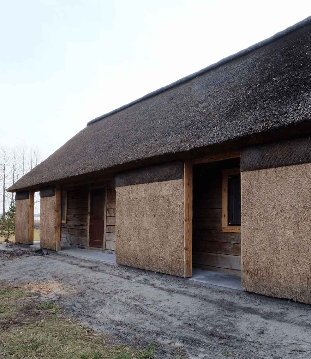 Na szczególną uwagę zasługuje drewniana elewacja oraz strzecha, która płynnie przechodzi z dachu na zewnętrzne ściany budynku. Dzięki temu dom zyskuje organiczny, naturalny charakter, wtapiając się w krajobraz. „Horse’s House” to inspirująca nowoczesna stodoła, w której tradycja spotyka się z minimalizmem, a naturalne materiały podkreślają wyjątkową estetykę projektu.
