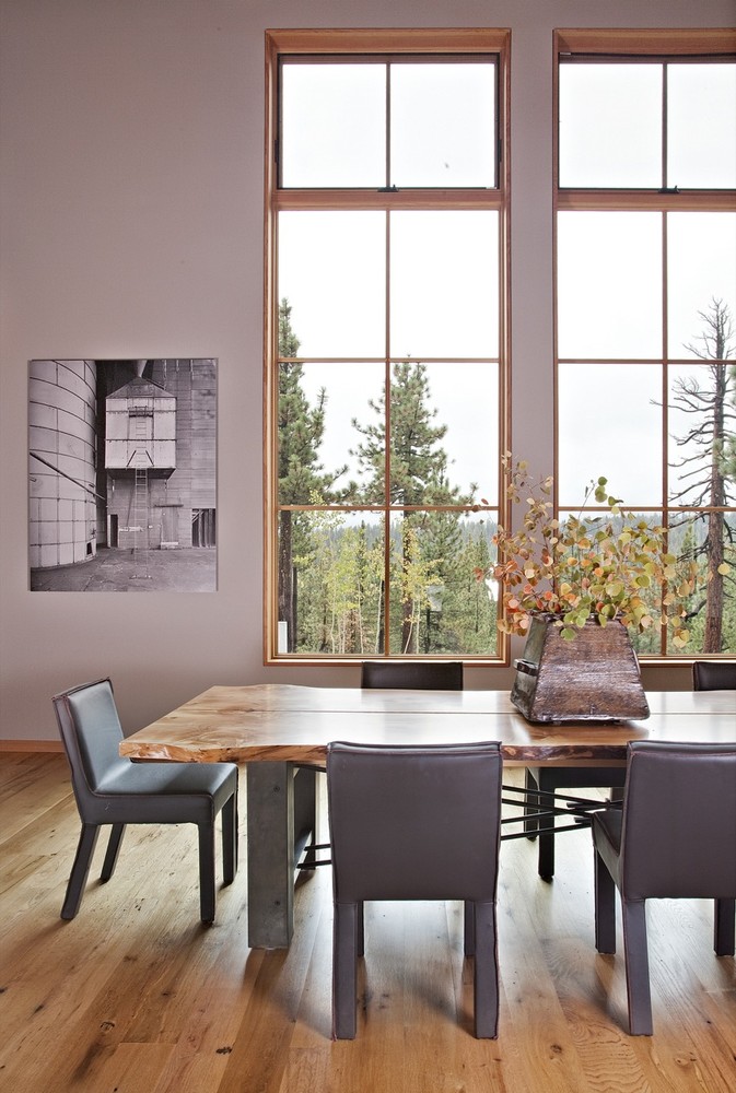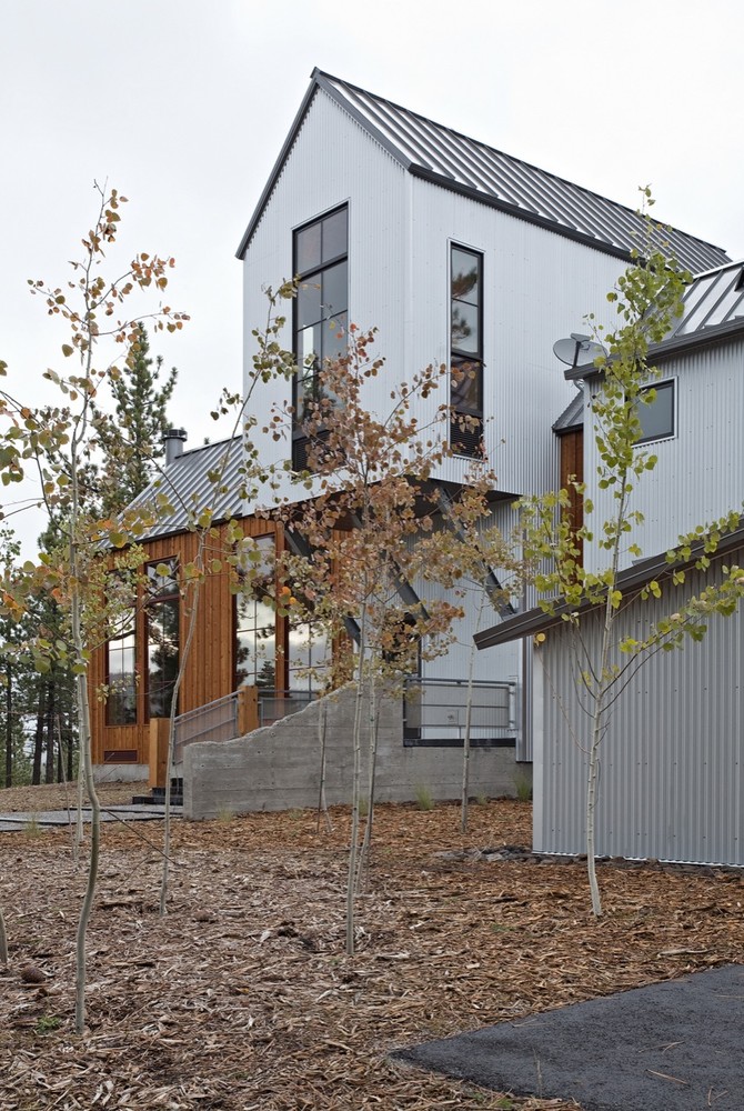 Inspiracją dla tego nowoczesnego domu stały się dawne zabudowania przemysłowe związane z rejonem Tahoe. Zanim ta okolica stała się bowiem ulubionym miejscem dla narciarzy, była pna powszechnym celem wypraw wszelkich poszukiwaczy złota. Specjalne młyny kruszące wykorzystywano do kruszenia twardej skały, z której później wydobywano złoto. Kamień poruszał się w takiej konstrukcji dzięki grawitacji i dlatego wszystkie miały sporą wysokość.Kolejnym istotnym założeniem tego projektu było otwarcie domu na piękne, górskie widoki. Właściciele chcieli, by dom otwierał się zarówno na góry Nevada od północy, jak i Sierra Crest od południa. Te kryteria zdecydowały o utworzeniu domu, którego plan ciągnie się na dwóch osiach i opada w pionie po strony północnej, gdzie znajduje się gabinet oraz sypialnia główna. Ta osiowość projektu wzmocniona została jeszcze dodatkowo przez zastosowanie powtarzających się belek konstrukcyjnych z daglezji świerkowej pochodzącej z odzysku, które spójnie łączą się z konstrukcją dachu.
