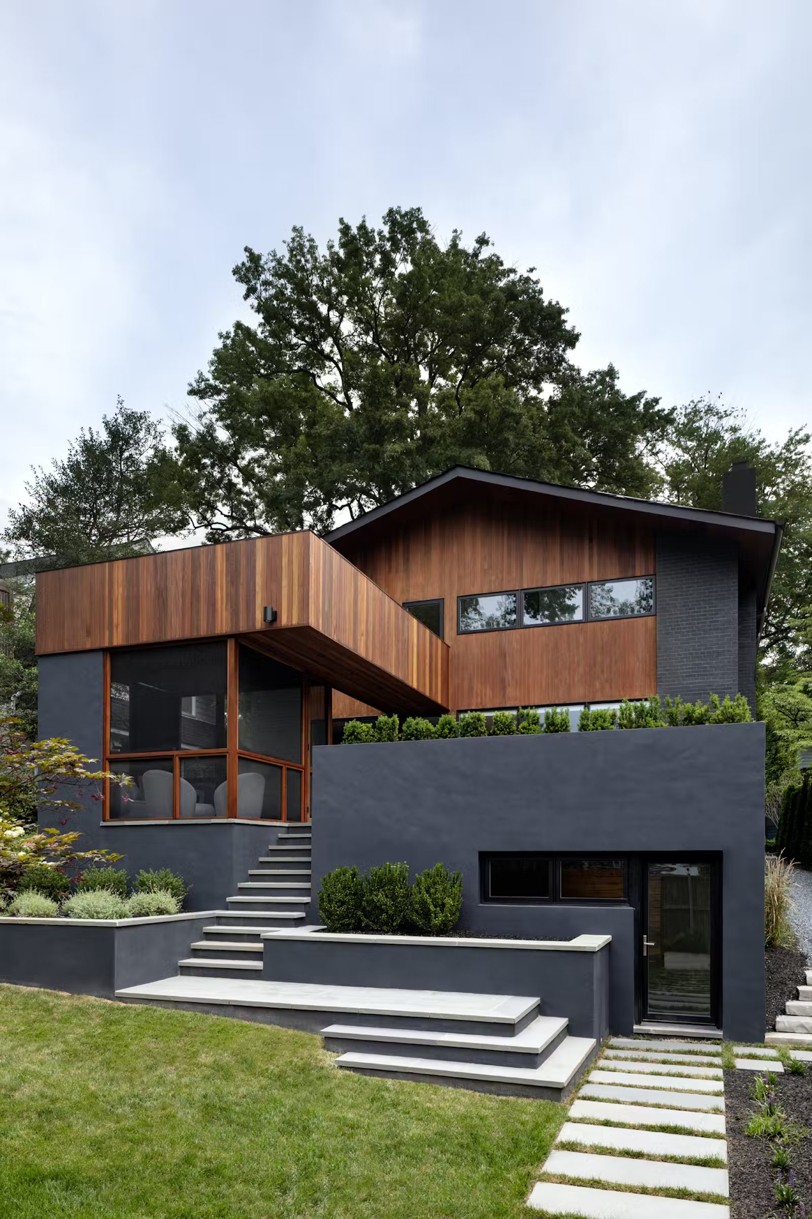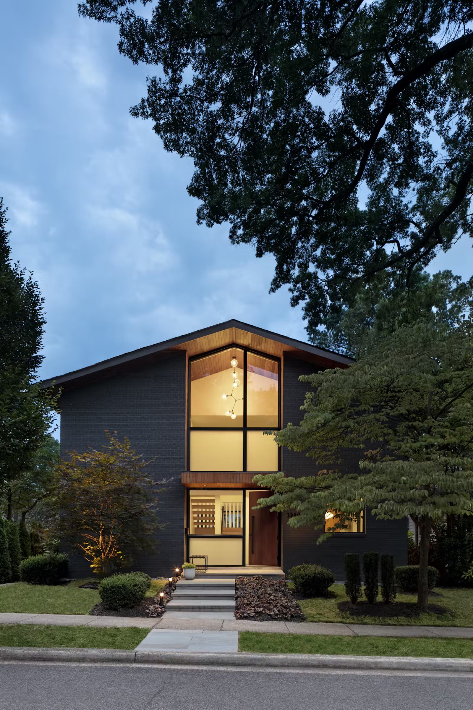 Scott Satin i Marilyn Kitzes przez długi czas poszukiwali domu z potencjałem, który można by przekształcić w nowoczesną przestrzeń inspirowaną modernizmem połowy XX wieku. Choć nie planowali opuszczać swojej ukochanej dzielnicy w Waszyngtonie, zdominowanej przez domy w stylu kolonialnym i artystycznym, znalezienie odpowiedniego budynku było wyzwaniem. Przełom nastąpił dzięki przyjaciółce, która wskazała im tajemniczy dom o ceglanej fasadzie i niemal całkowitym braku okien. Budynek ukryty był w gęstej roślinności, a jego forma przypominała minimalistyczną, zamkniętą bryłę.