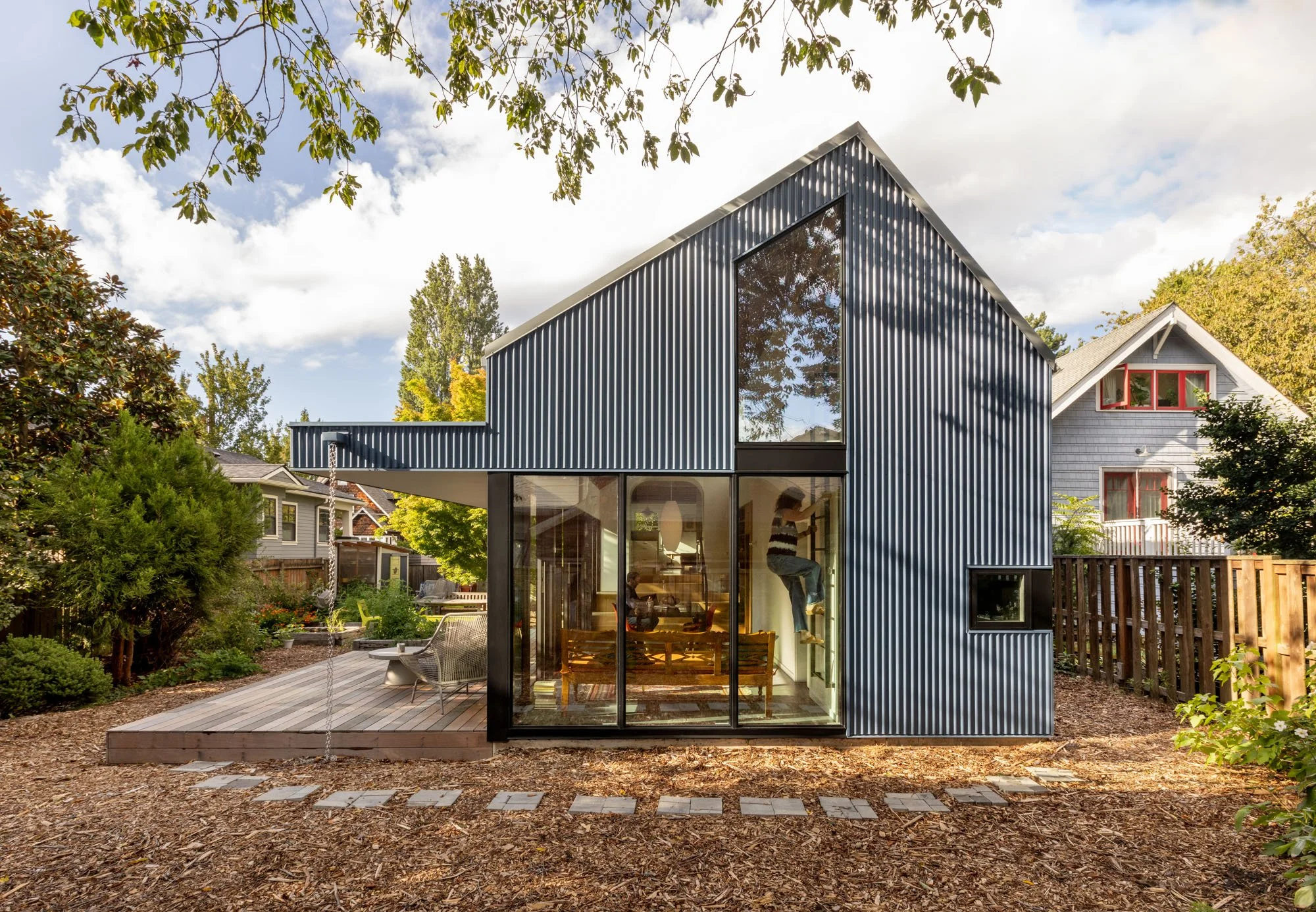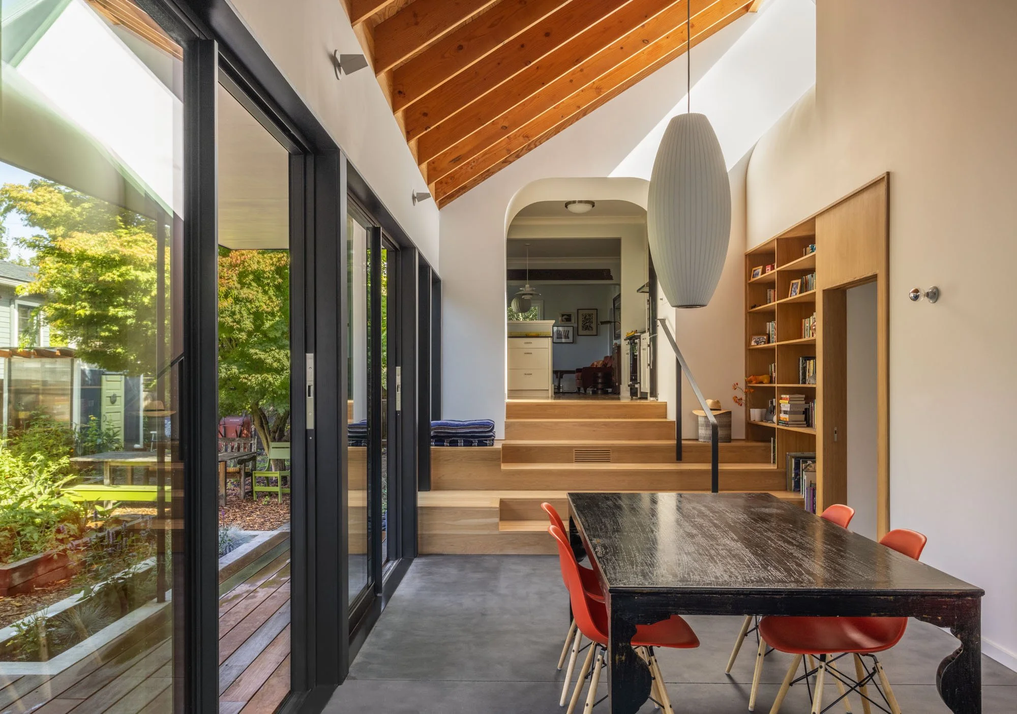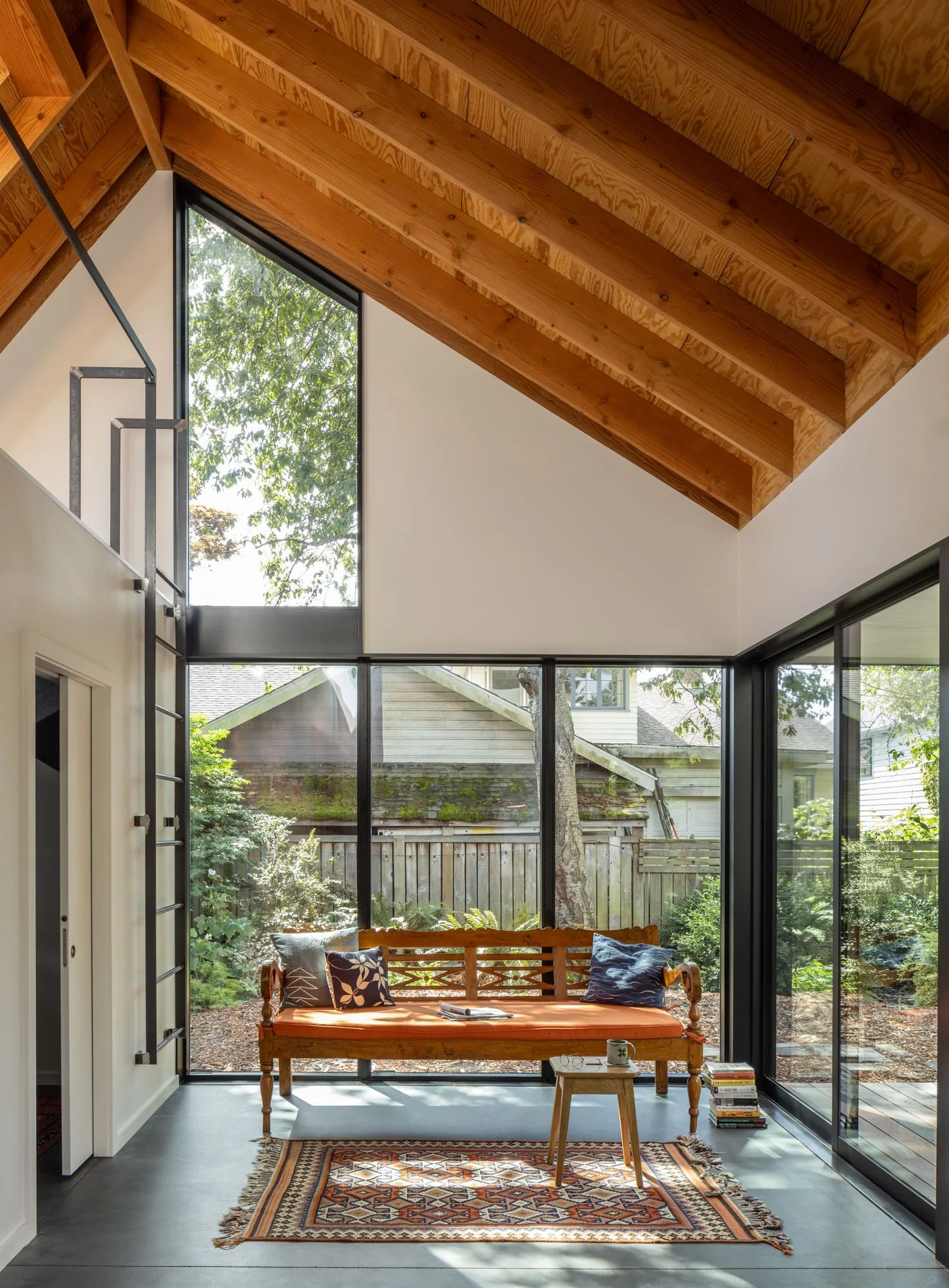 W dzielnicy Tangletown w Seattle powstała niewielka, lecz wyjątkowo przemyślana rozbudowa bungalowu z 1913 roku. Projekt Tangletown Telescope Addition to dodatek o powierzchni zaledwie kilku metrów kwadratowych, który stał się odpowiedzią na współczesne potrzeby mieszkańców – pary oraz ich dużego psa. Dzięki niemu powstała elastyczna przestrzeń dzienna, dodatkowa łazienka dla częstych gości oraz niewielki gabinet do pracy w domu.