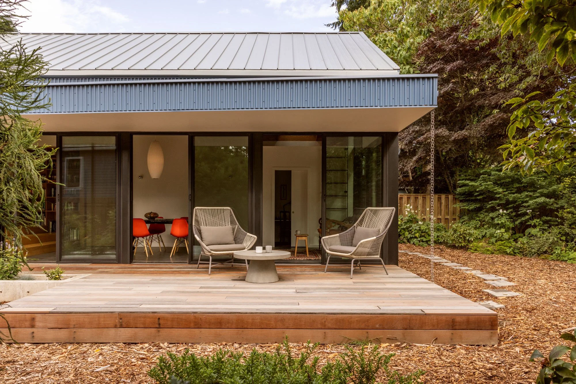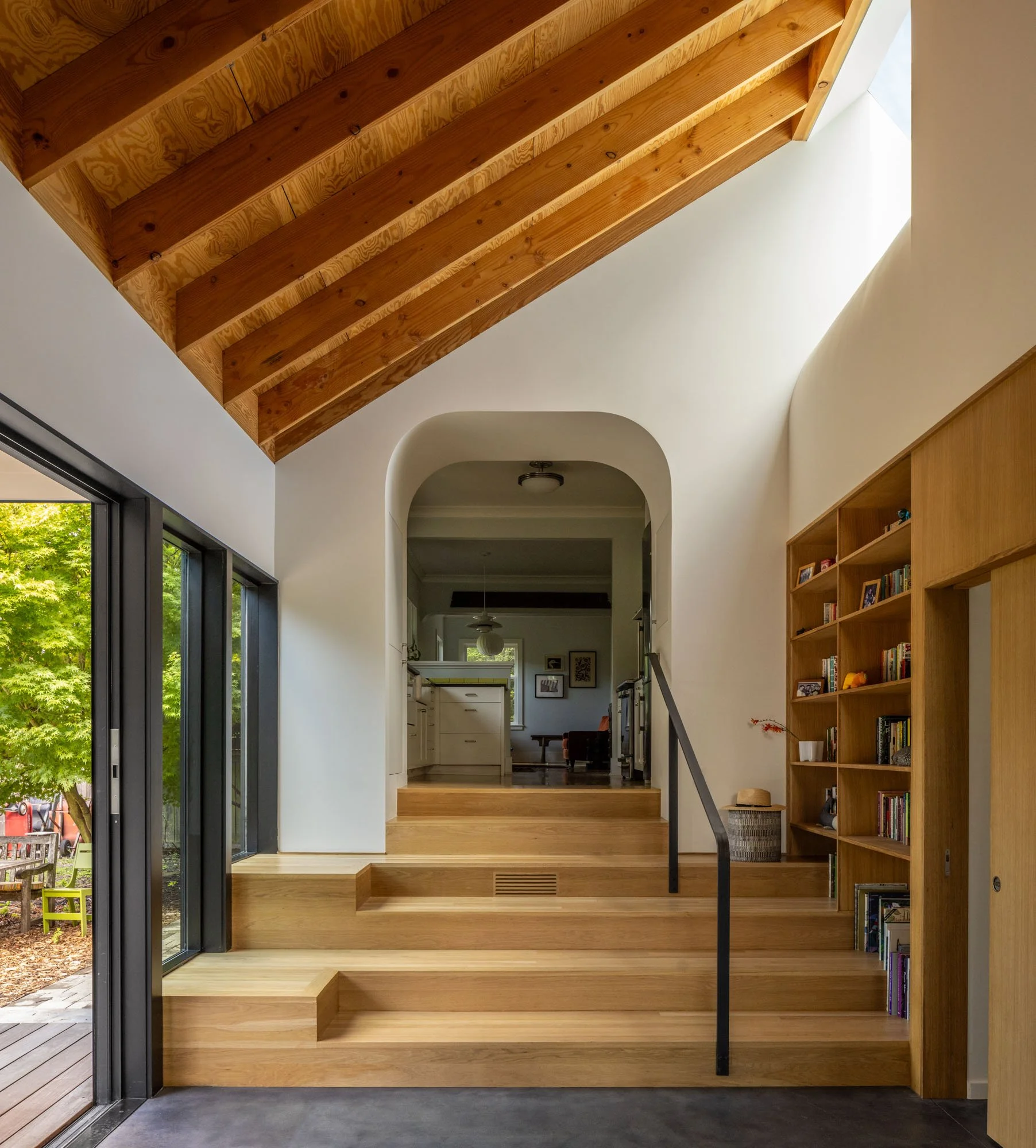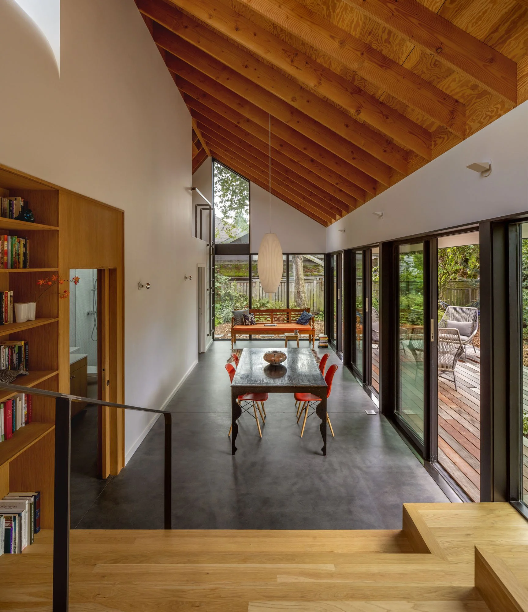 W dzielnicy Tangletown w Seattle powstała niewielka, lecz wyjątkowo przemyślana rozbudowa bungalowu z 1913 roku. Projekt Tangletown Telescope Addition to dodatek o powierzchni zaledwie kilku metrów kwadratowych, który stał się odpowiedzią na współczesne potrzeby mieszkańców – pary oraz ich dużego psa. Dzięki niemu powstała elastyczna przestrzeń dzienna, dodatkowa łazienka dla częstych gości oraz niewielki gabinet do pracy w domu.