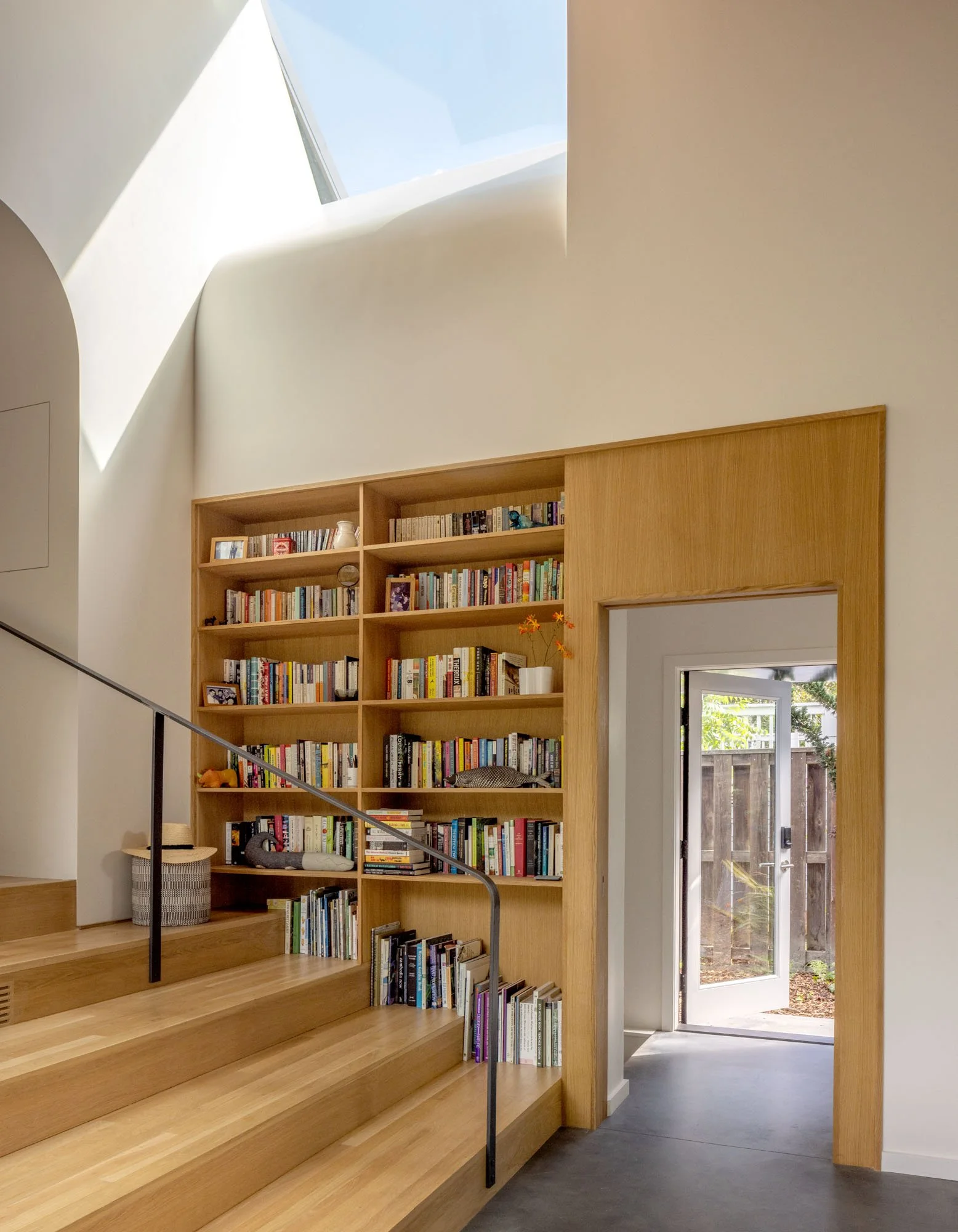 Rozbudowę zaprojektowano jako naturalne przedłużenie oryginalnego bungalowu. Architekci odwołali się do charakterystycznych łukowych przejść, które zdobiły wnętrza budynku. Nowe, wyeksponowane łuki stały się motywem przewodnim – zarówno w otworach drzwiowych, jak i w formie świetlików o wyprofilowanych krawędziach, wpuszczających do wnętrza światło dzienne.