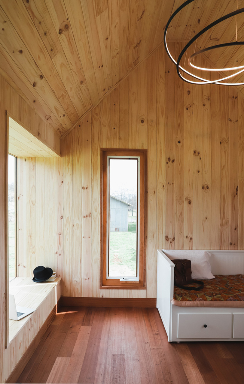 Projekt ten nie tylko nawiązuje do estetyki, jaką prezentuje nowoczesna stodoła, ale przede wszystkim odpowiada na lokalne potrzeby i warunki klimatyczne. W planach znajduje się rozbudowa o drugi budynek – pawilon mieszkalny, który wspólnie z mikrodomem stworzy elastyczną, dwuczęściową przestrzeń życiową. Obie jednostki (dom-studio i dom rodzinny) będą połączone przeszklonym krużgankiem pełniącym funkcję wiatrochronu i strefy prywatności.