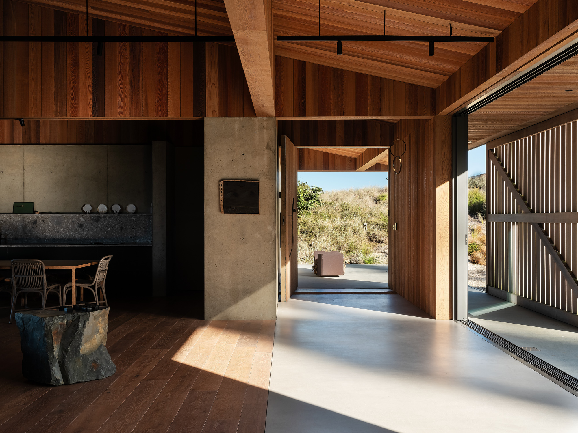 Te Arai Beach House to projekt, który łączy w sobie lekkość wakacyjnej chaty, funkcjonalność zabudowań gospodarczych i wrażliwość współczesnej architektury. Oferuje nie tylko schronienie, lecz także bogactwo doświadczeń i scenariuszy codziennego życia, z których każdy osadzony jest w dialogu z lasem, oceanem i zmieniającym się światłem.