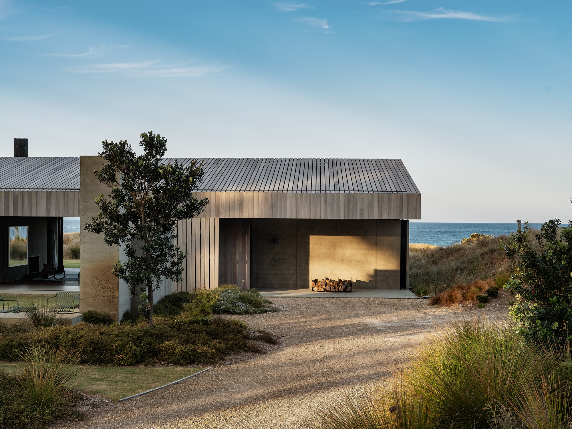 Na wybrzeżu Nowej Zelandii, w miejscu gdzie sosnowy las styka się z piaszczystymi wydmami, powstał Te Arai Beach House autorstwa Fearon Hay Architects. Ten współczesny dom wakacyjny przypomina z zewnątrz prostą, niemal stodolną bryłę, ale w rzeczywistości kryje wielowarstwową architekturę, w której prostota formy spotyka się z bogactwem detali i przestrzennych doświadczeń.