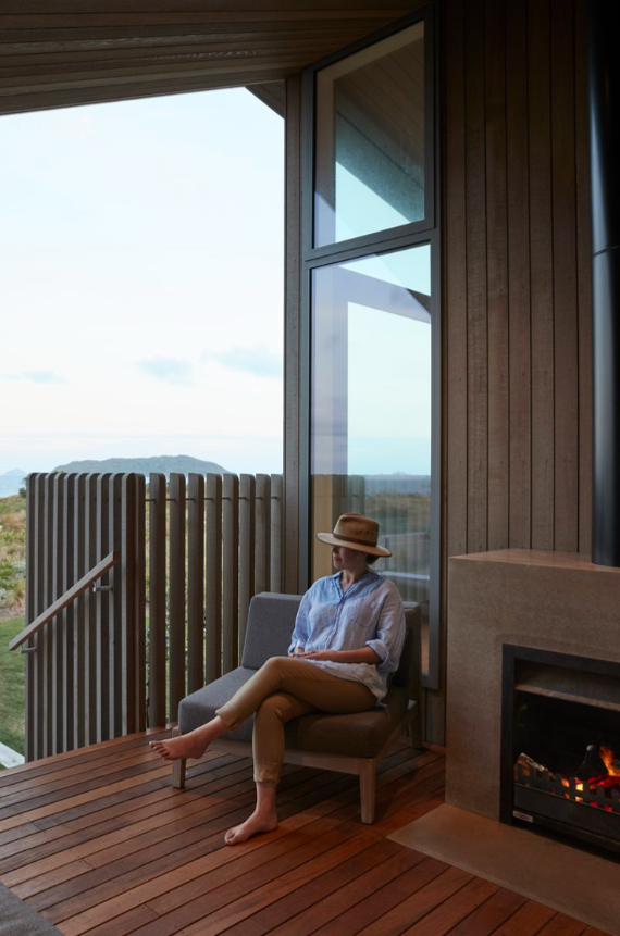 SGA zastosowało nietypowe rozwiązanie, określane jako „mieszkanie na werandzie”. Przestrzeń dzienna może być całkowicie otwarta lub zamknięta za pomocą przesuwanych szklanych ścian, tworząc efekt tarasu latem i przytulnego salonu zimą. Dodatkowo, strefa wypoczynkowa rozciąga się na wschodni taras z zewnętrznym kominkiem, oferując relaksujące wieczory w każdej porze roku.