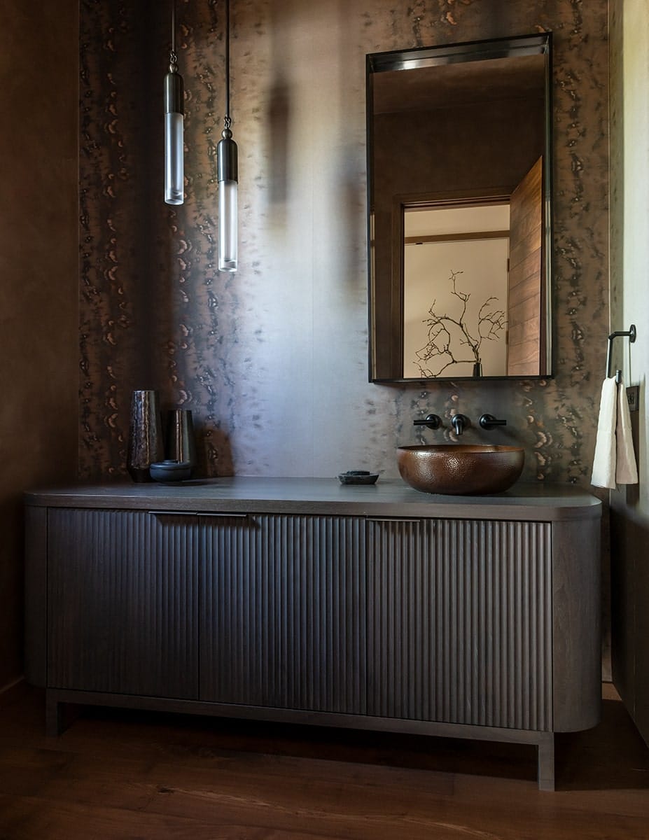 We wnętrzach dominują naturalne materiały, miękkie światło i zakrzywione formy, które wprowadzają subtelny, kobiecy charakter – nawiązując do estetyki kobiecej części rodziny. Autorska tapeta topograficzna z widokiem na góry stanowi unikalne tło dla przestrzeni życiowej i dodatkowo podkreśla lokalizację w sercu natury. Połączenie eleganckiego wystroju z funkcjonalnością tworzy dom, który łączy luksusowe wnętrza z rekreacją i wygodą – idealny do życia w stylu górskiego resortu. Dzięki inspiracjom zaczerpniętym z projektów typu nowoczesna stodoła, architekci stworzyli formę osadzoną w krajobrazie, ale odpowiadającą współczesnym wymaganiom estetycznym i funkcjonalnym.