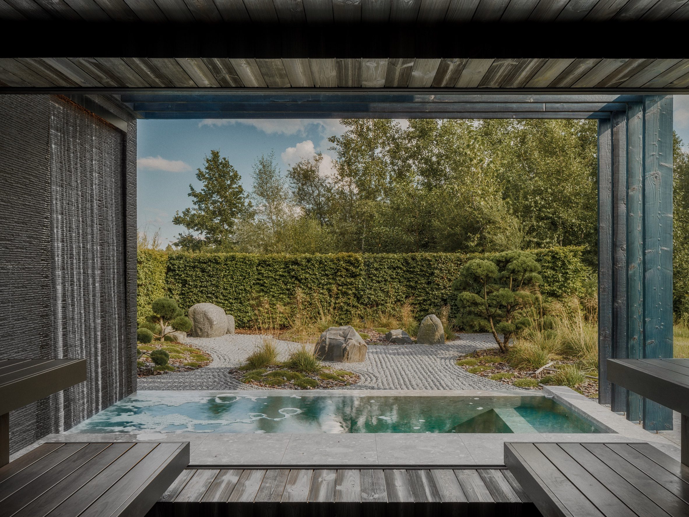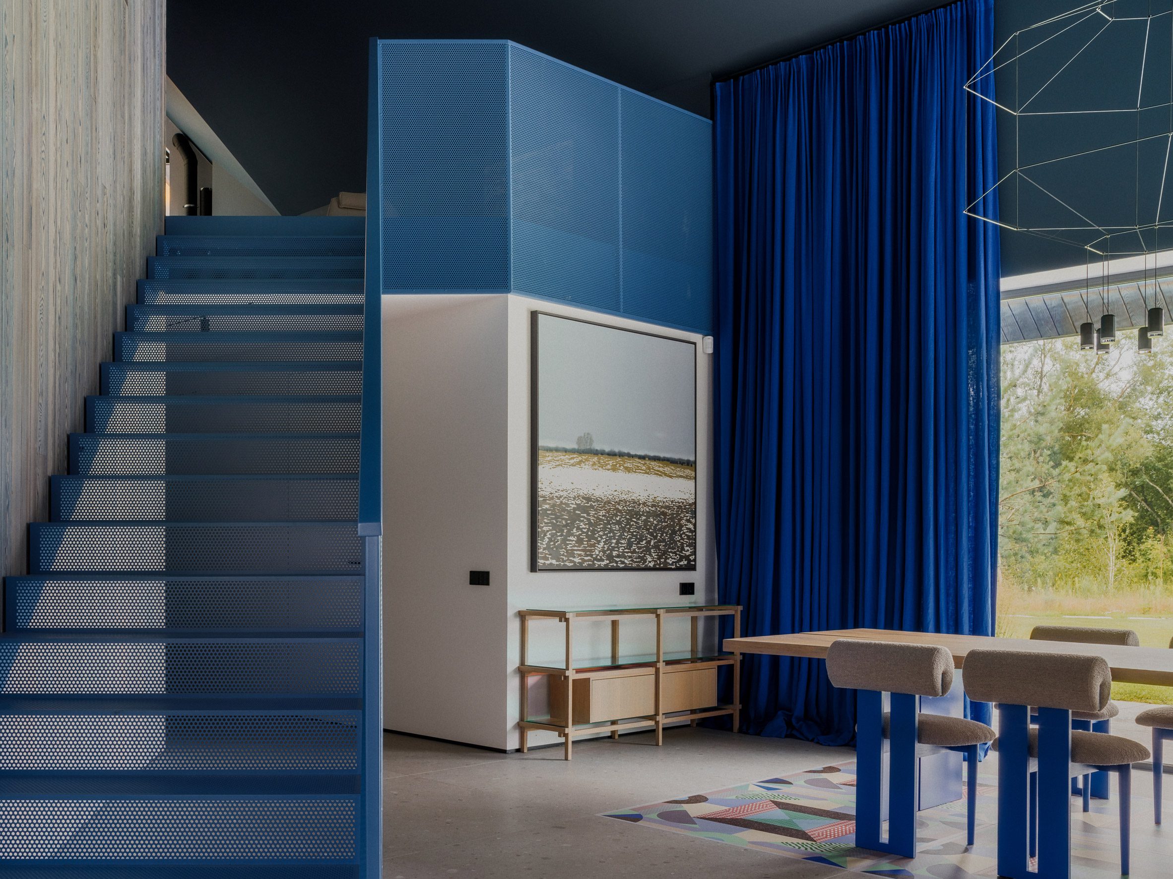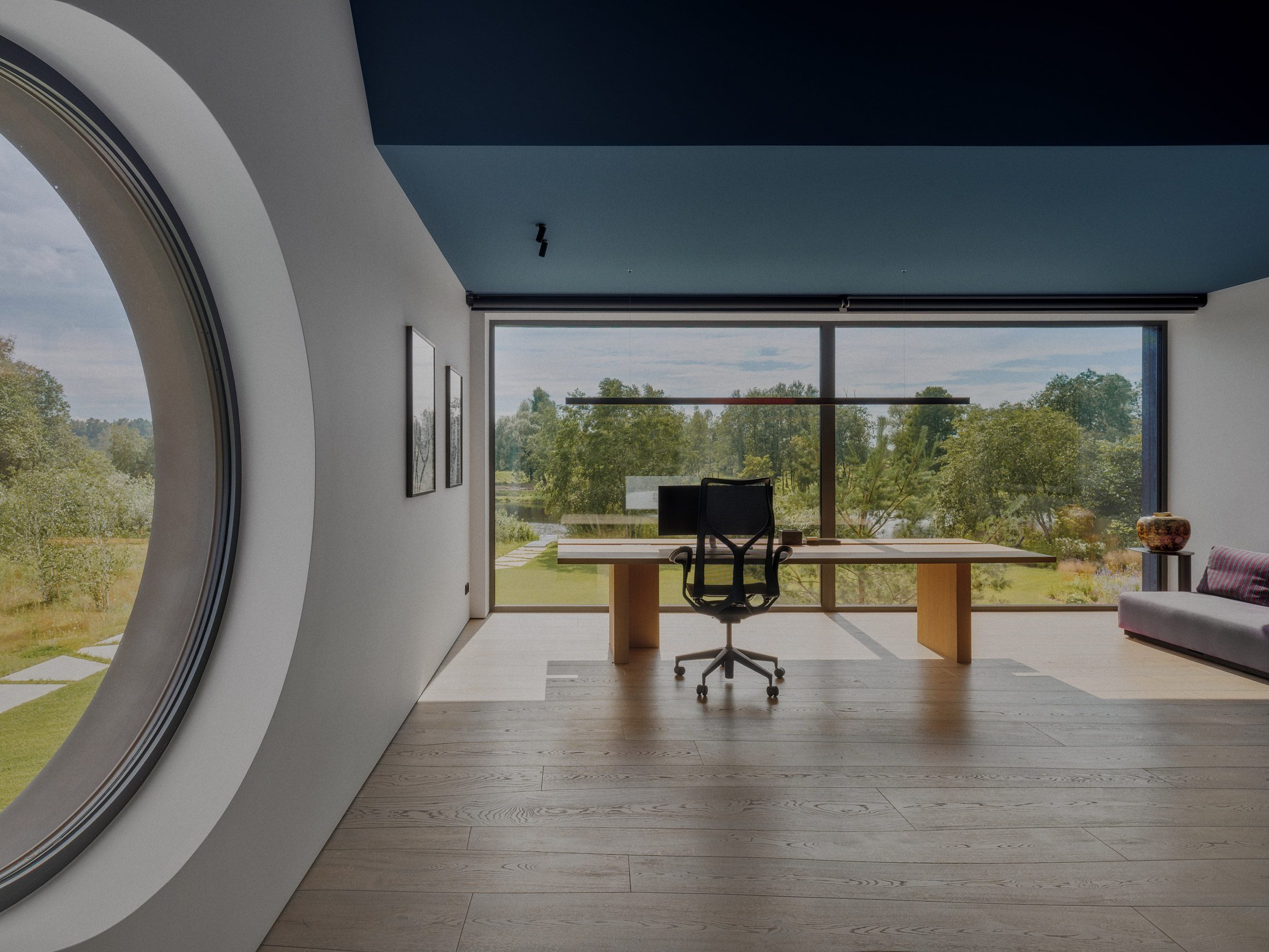 Dom ma kompaktowe wymiary i został zaprojektowany jako przestrzeń wypoczynkowa, maksymalnie skupiona na relacji z otoczeniem. Wąska forma oraz odpowiednio rozmieszczone przeszklenia kadrują widoki na krajobraz, jednocześnie zapewniając prywatność. Niewielka skala budynku podkreśla jego kameralny charakter i pozwala na bardziej bezpośredni kontakt z naturą.