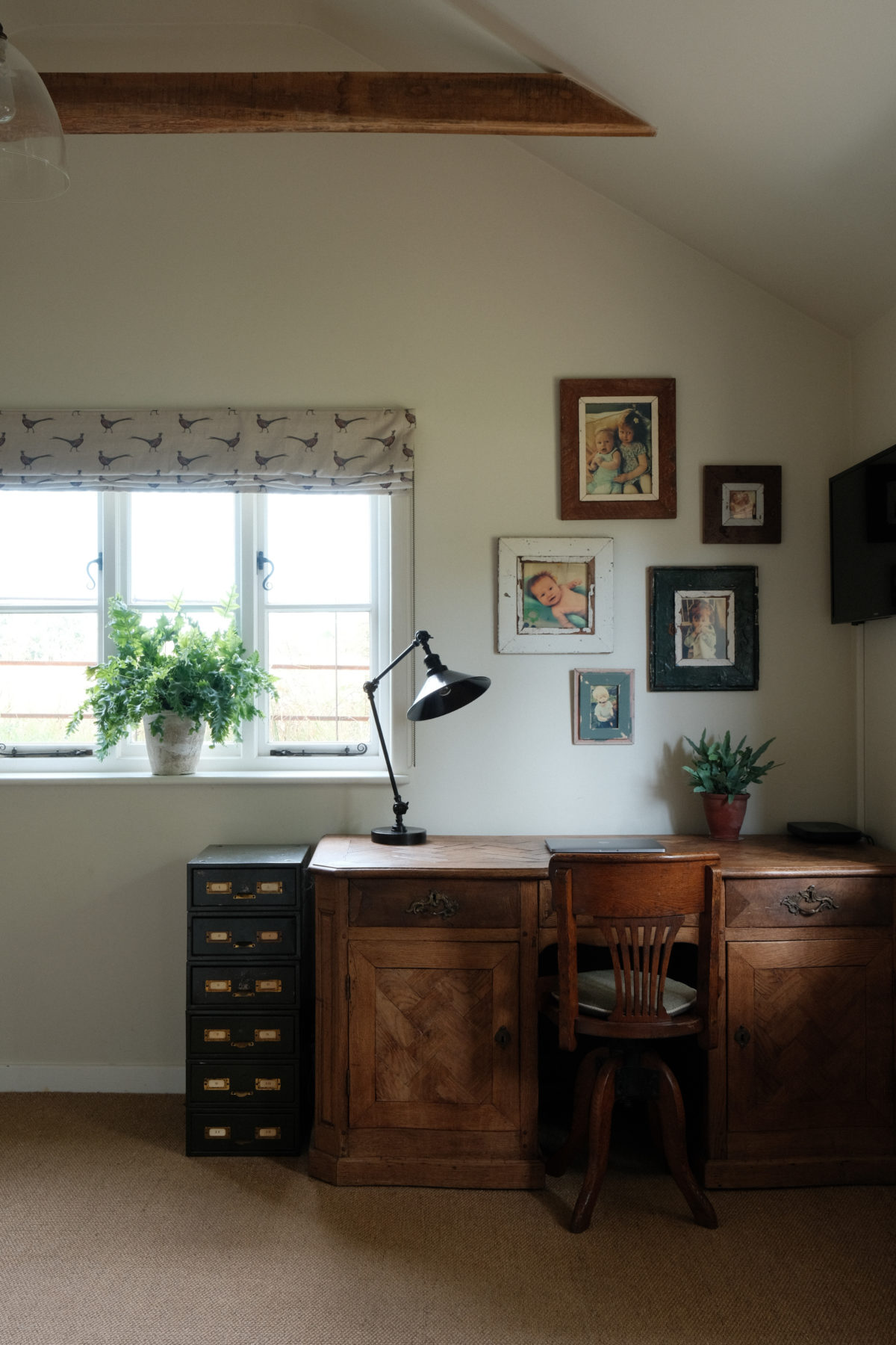 Na piętrze znajdują się dwie kolejne sypialnie z łóżkiem typu king-size, a także dwie sypialnie dla dzieci, z których jedna posiada prywatną łazienkę. Do dyspozycji domowników jest również duża rodzinna łazienka z wolnostojącą wanną i kabiną prysznicową, a także dodatkowa łazienka z prysznicem.
