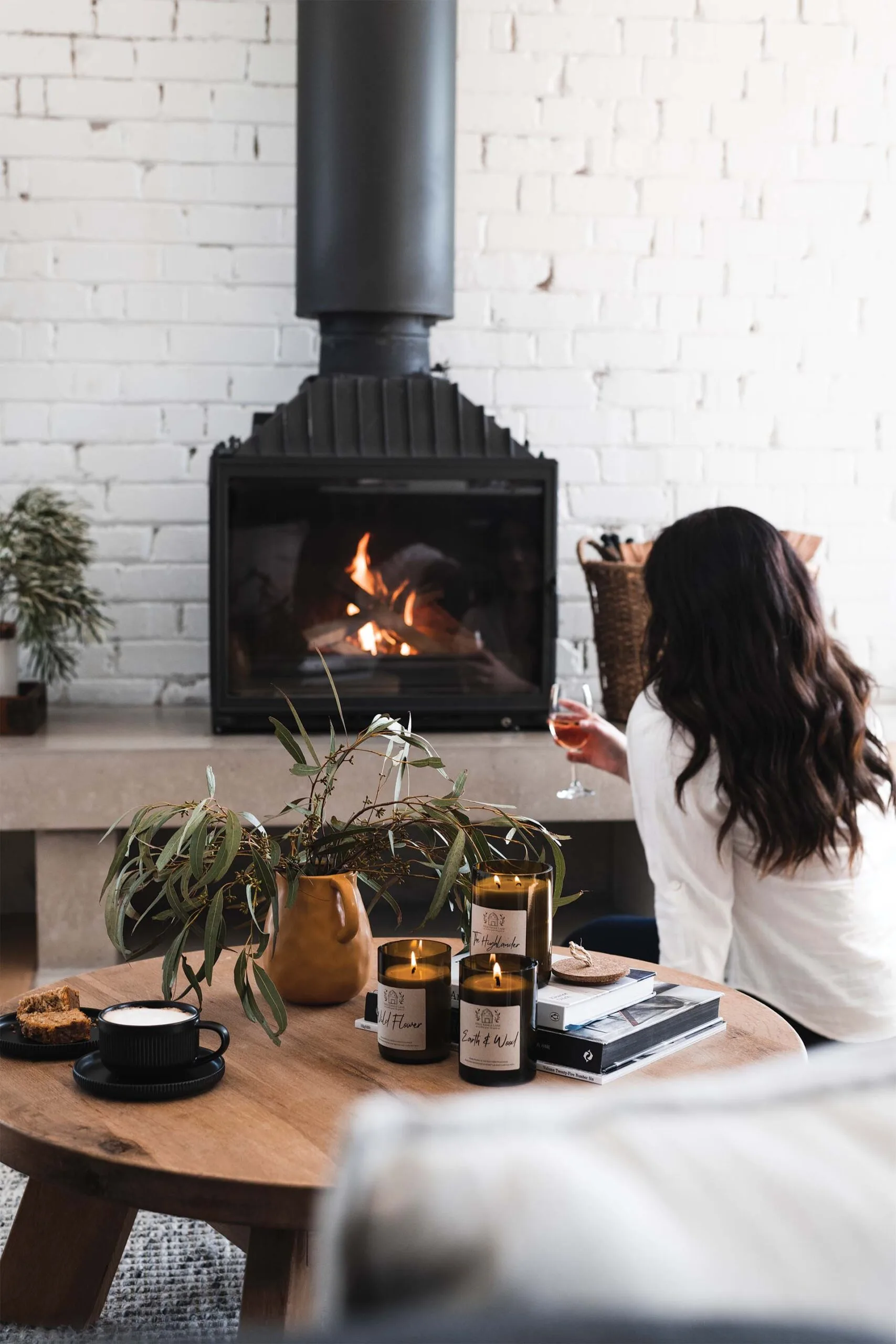 We wnętrzach dominuje połączenie surowych i naturalnych materiałów – betonowe posadzki, bielone ceglane ściany i ciemna stolarka stanowią industrialną bazę, którą ocieplają miękkie lny, wełna, rustykalne drewno i naturalne faktury. Całość została zaaranżowana przez Bowerbird Lane Interiors, którzy zadbali, by każdy detal podkreślał ideę „creature comforts”. Centralnym punktem salonu jest kominek Cheminee, a w każdej sypialni znajduje się telewizor. W łazienkach uwagę przyciągają drewniane konsole, wolnostojąca wanna i ogrzewanie podłogowe, które zapewniają luksusowy komfort.