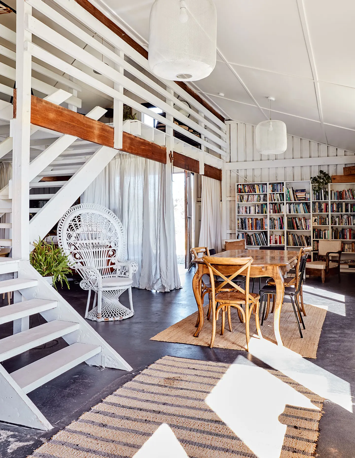 Dom mieści cztery miejsca noclegowe, a jego prosta estetyka nawiązuje do australijskiego minimalizmu – naturalne światło, otwarta przestrzeń i surowe materiały tworzą atmosferę relaksu.