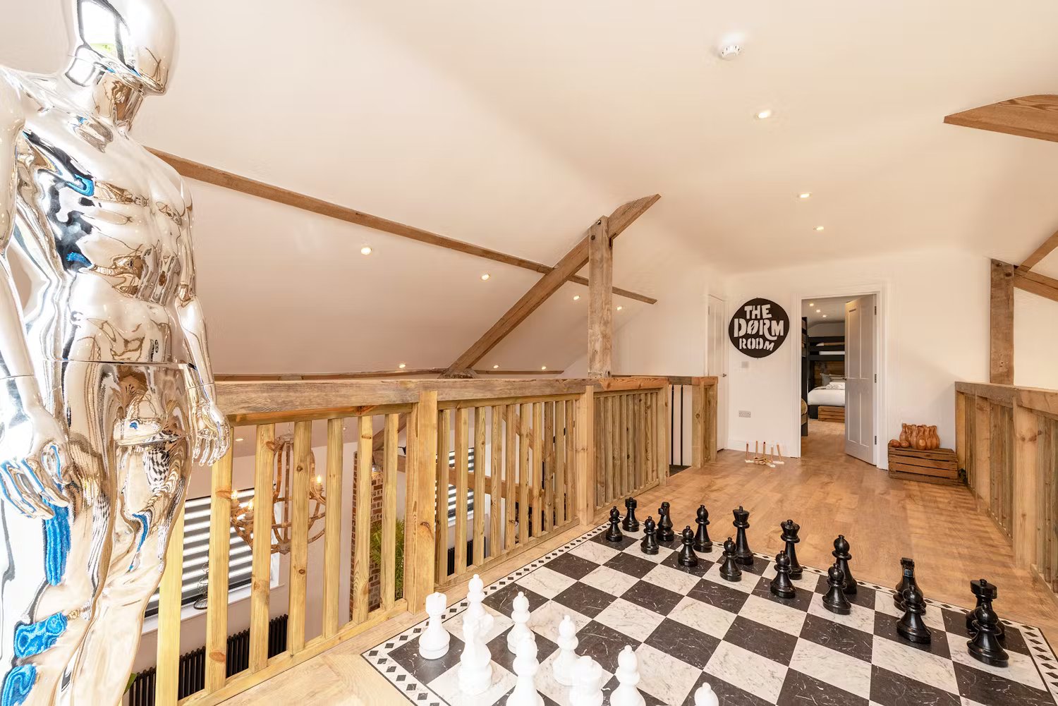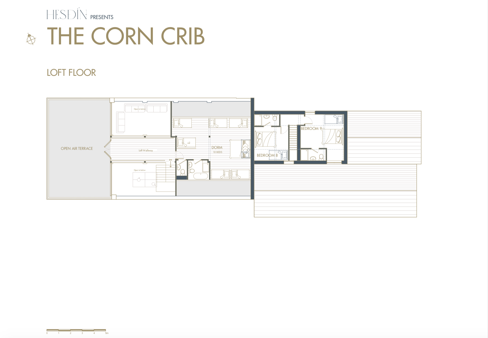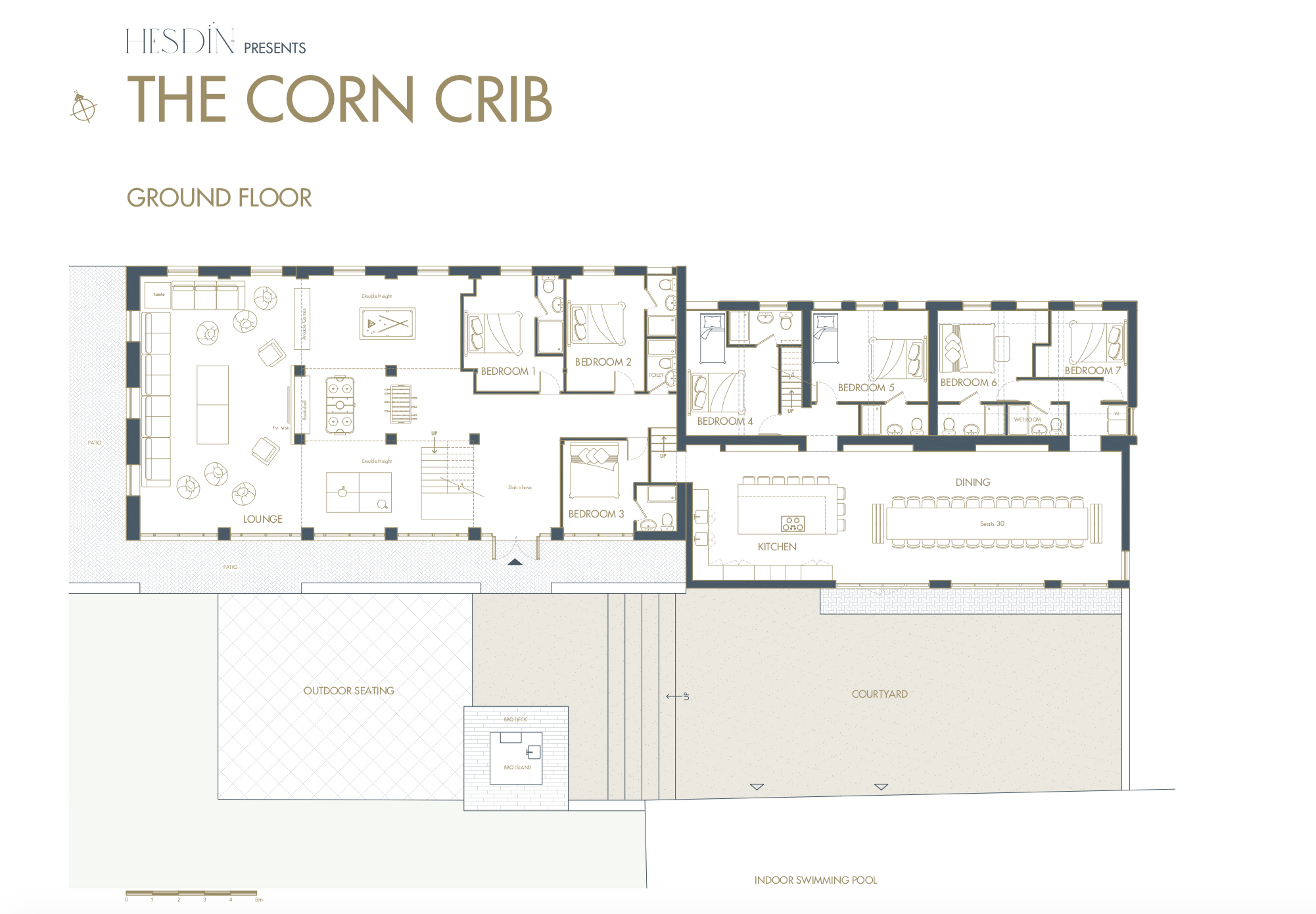 Centralnym punktem Hesdin Estate jest The Corn Crib – miejsce pełne magii i eklektycznego designu. Wnętrza zachwycają oryginalnymi detalami, takimi jak różnorodne żyrandole, artystyczne dodatki (w tym słynna różowa owca), a także bogatym wykończeniem, w którym nowoczesność łączy się z rustykalnym urokiem. Duże przeszklenia wprowadzają do wnętrz światło i pozwalają cieszyć się widokiem zielonych terenów oraz urokliwej zagrody ze świniami, kozami i alpakami.
