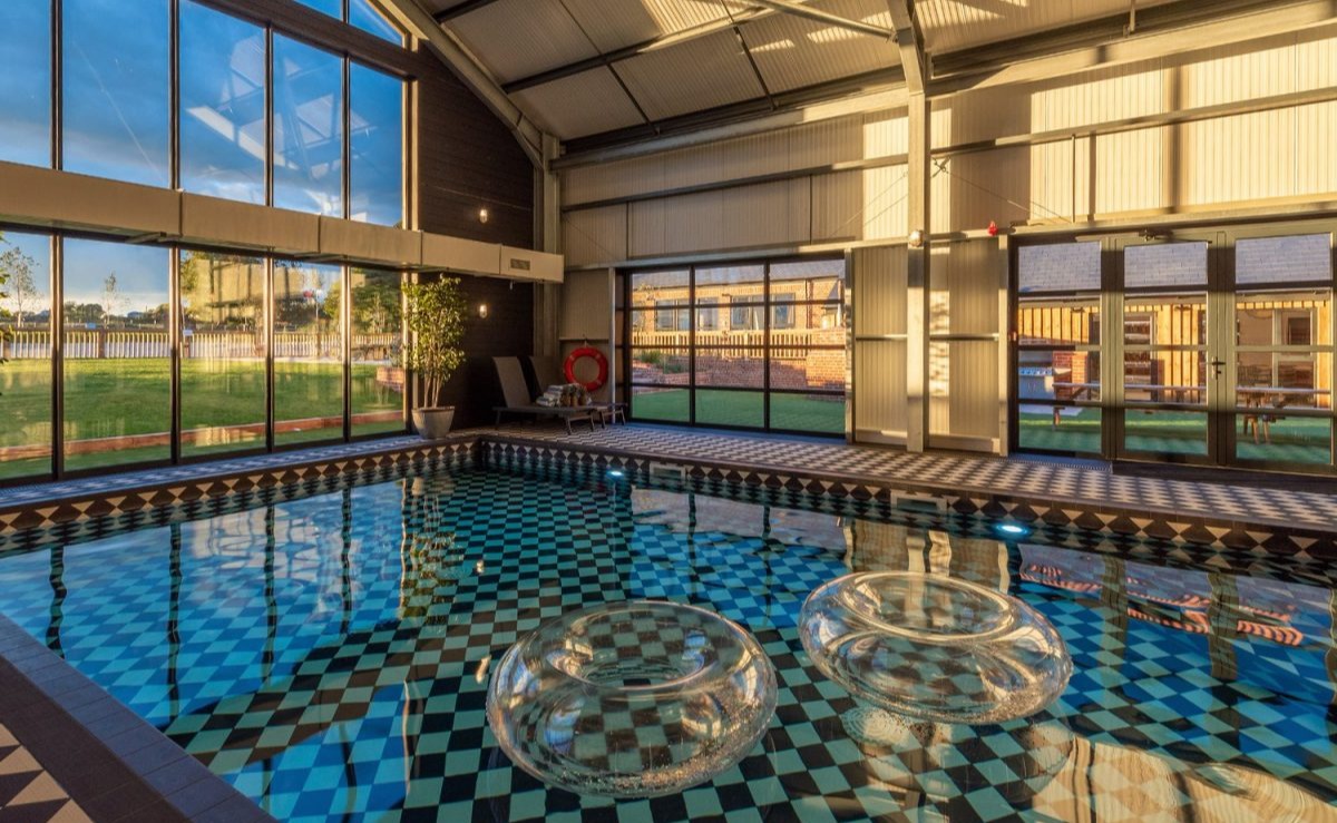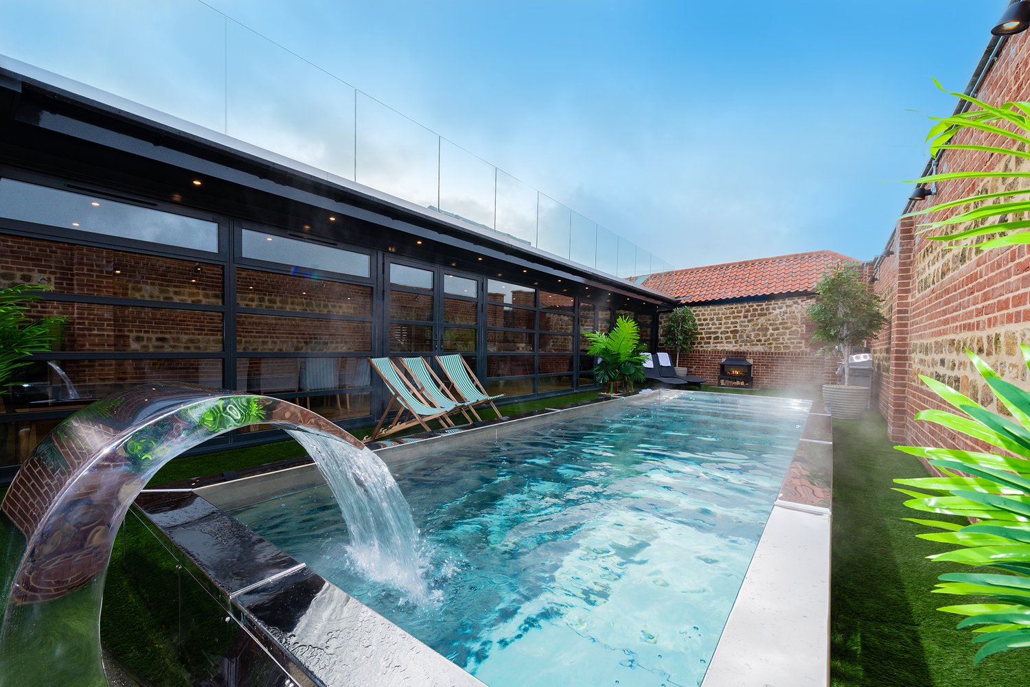 Hesdin powstał z przebudowy trzech historycznych stodół, które zostały starannie odnowione i rozbudowane, tworząc jedną, spójną przestrzeń mieszkalną. To doskonały przykład, jak można przekształcić klasyczne zabudowania w nowoczesną stodołę z charakterem i duszą. W osobnym budynku z dwuspadowym dachem powstała prawdziwa perełka – strefa spa i wellness z podgrzewanym basenem, jacuzzi, sauną oraz tarasem z barem i grillem.