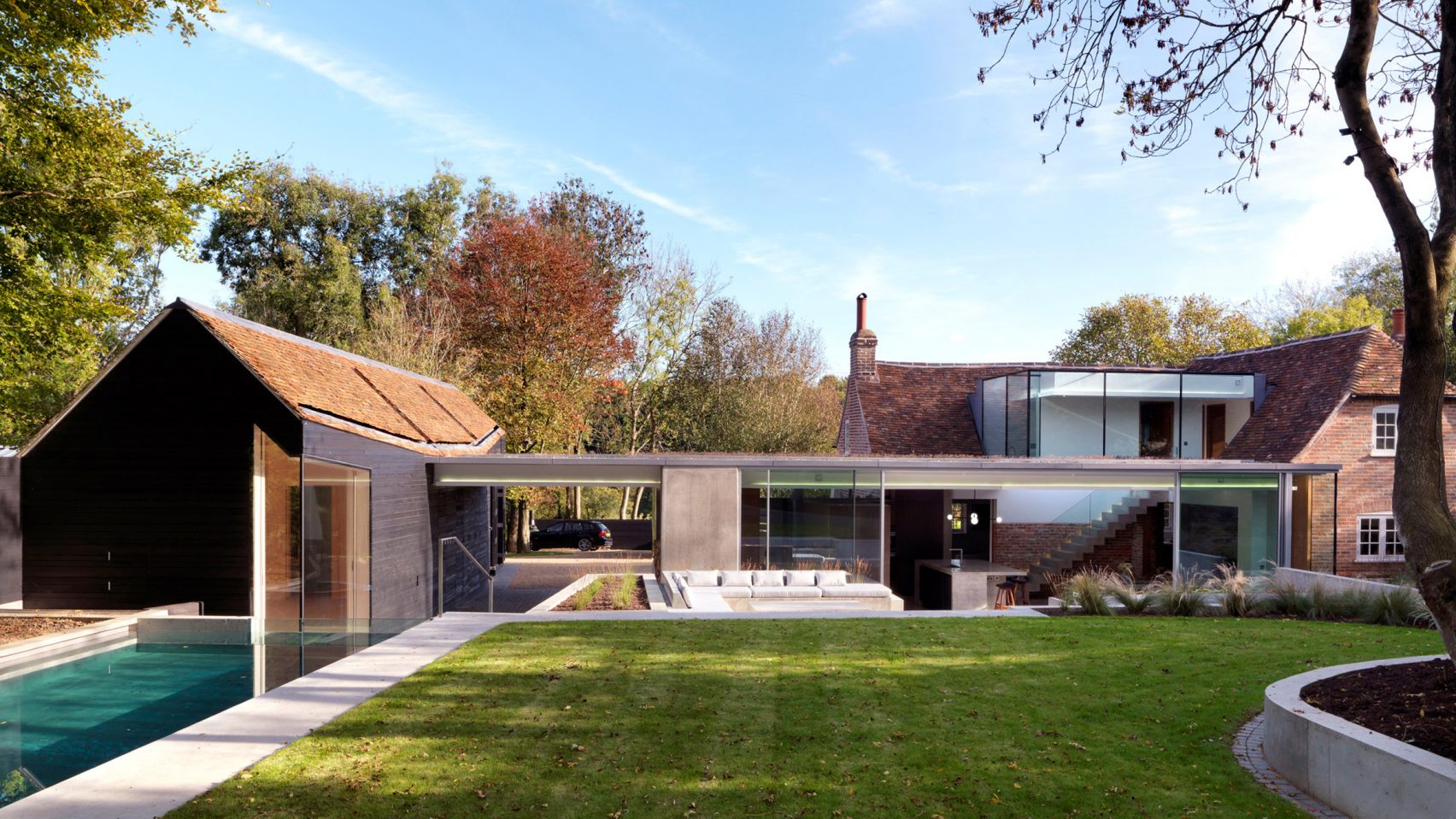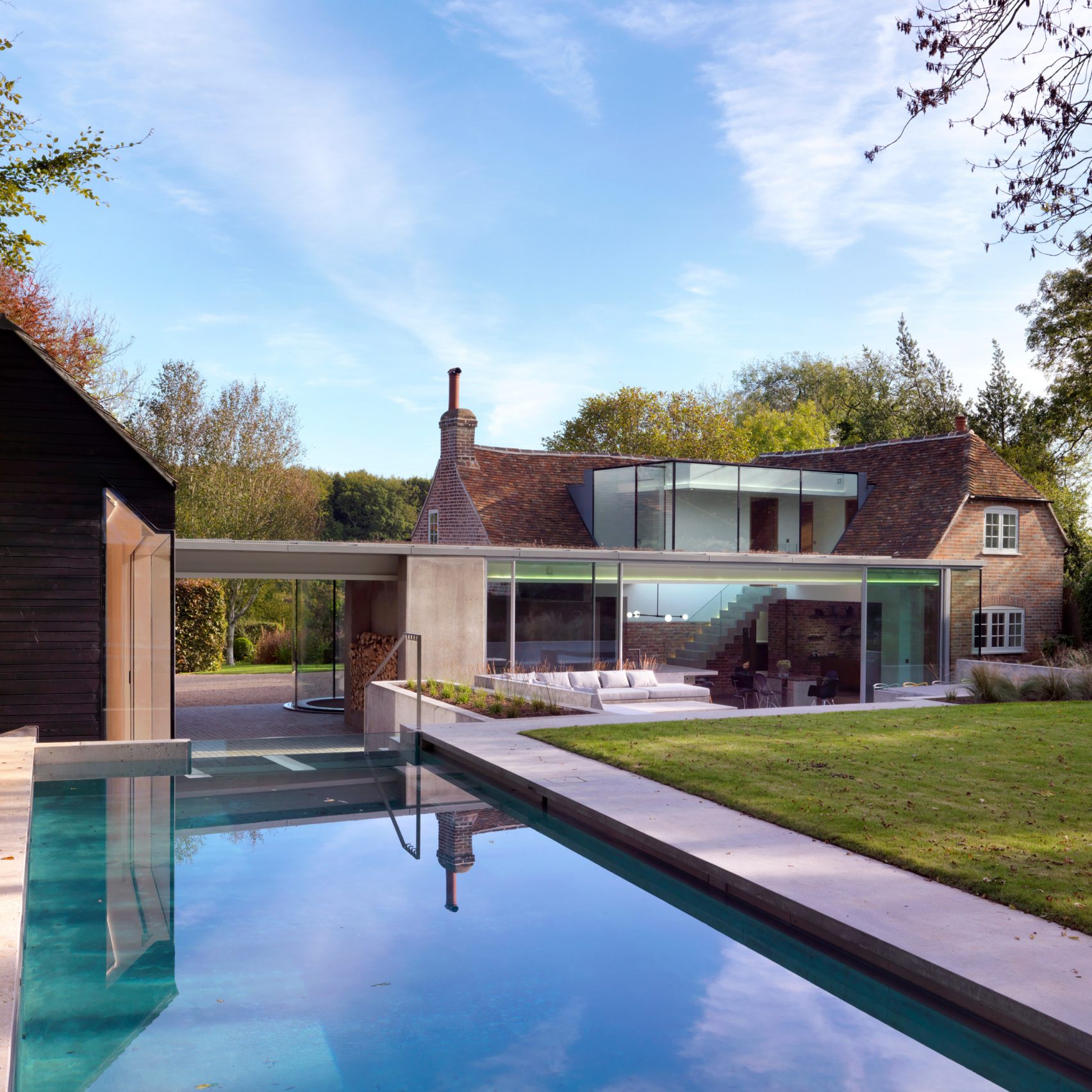 The Cottage to wyjątkowy projekt zrealizowany przez Guy Hollaway Architects, będący efektem wieloletniej pracy głównego architekta, który stworzył własny dom rodzinny. Usytuowany w malowniczej scenerii hrabstwa Kent, projekt łączy XVIII-wieczną tradycyjną bryłę z nowoczesną, minimalistyczną rozbudową, przekształcając klasyczny wiejski domek w przestrzeń dostosowaną do współczesnego życia.