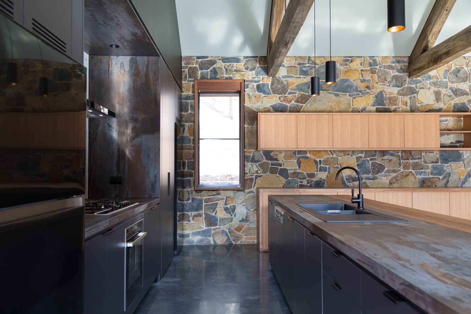 Materiały użyte w budowie zostały starannie dobrane z uwzględnieniem lokalnego kontekstu. Zastosowano połączenie drewna, kamienia i stali corten, które nadają bryłom trwałość i wpisują się w wiejski krajobraz. Kamienna forma nowoczesnej stodoły reprezentuje strefę publiczną domu – z kuchnią, jadalnią i salonem – natomiast drewniana część mieści prywatne pomieszczenia. Ręcznie obrabiany kamień i kratownice z recyklingu wzmacniają poczucie autentyczności, a corten nawiązuje do tradycyjnych budynków gospodarczych i wymaga minimalnej konserwacji. Projekt to efekt ścisłej współpracy architektów, rzemieślników i lokalnych budowniczych – dowód na to, że zrównoważona architektura może łączyć piękno, funkcjonalność i samowystarczalność w harmonii z naturą.