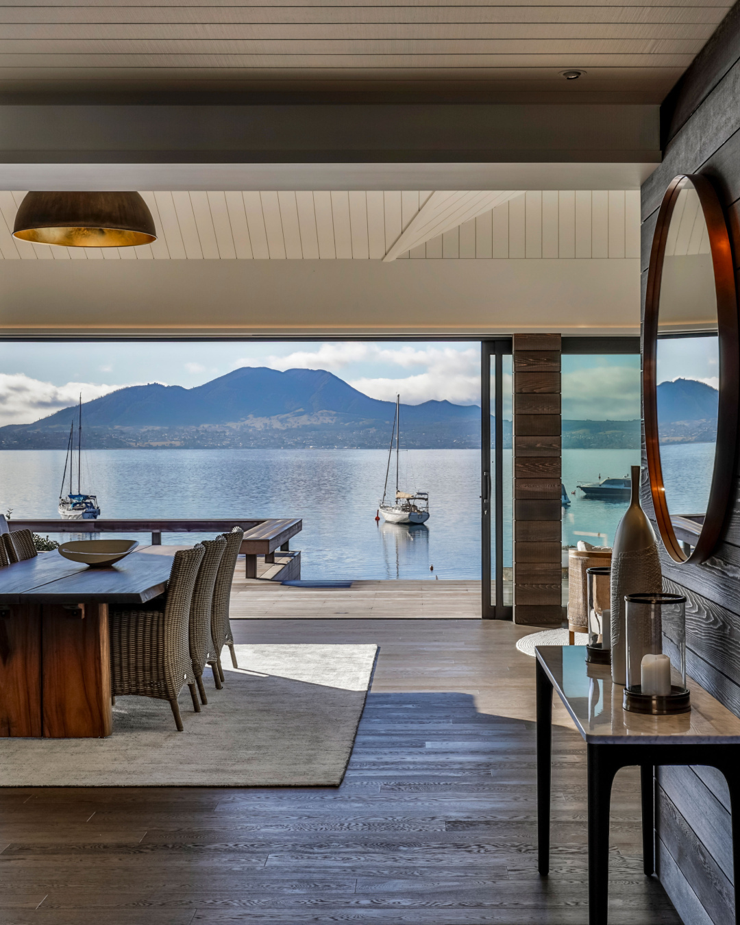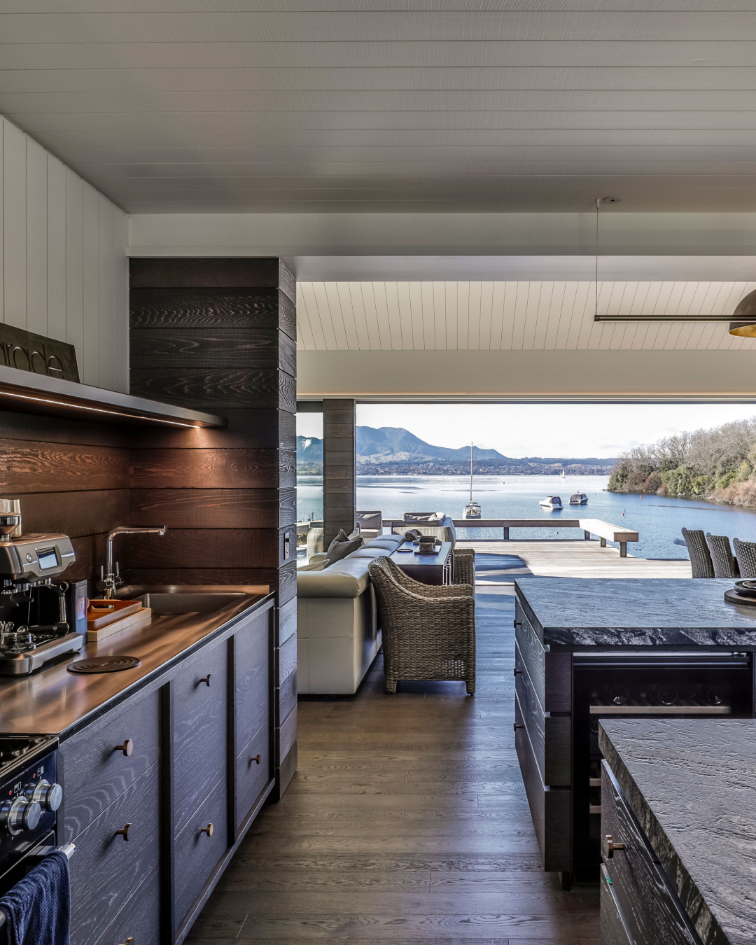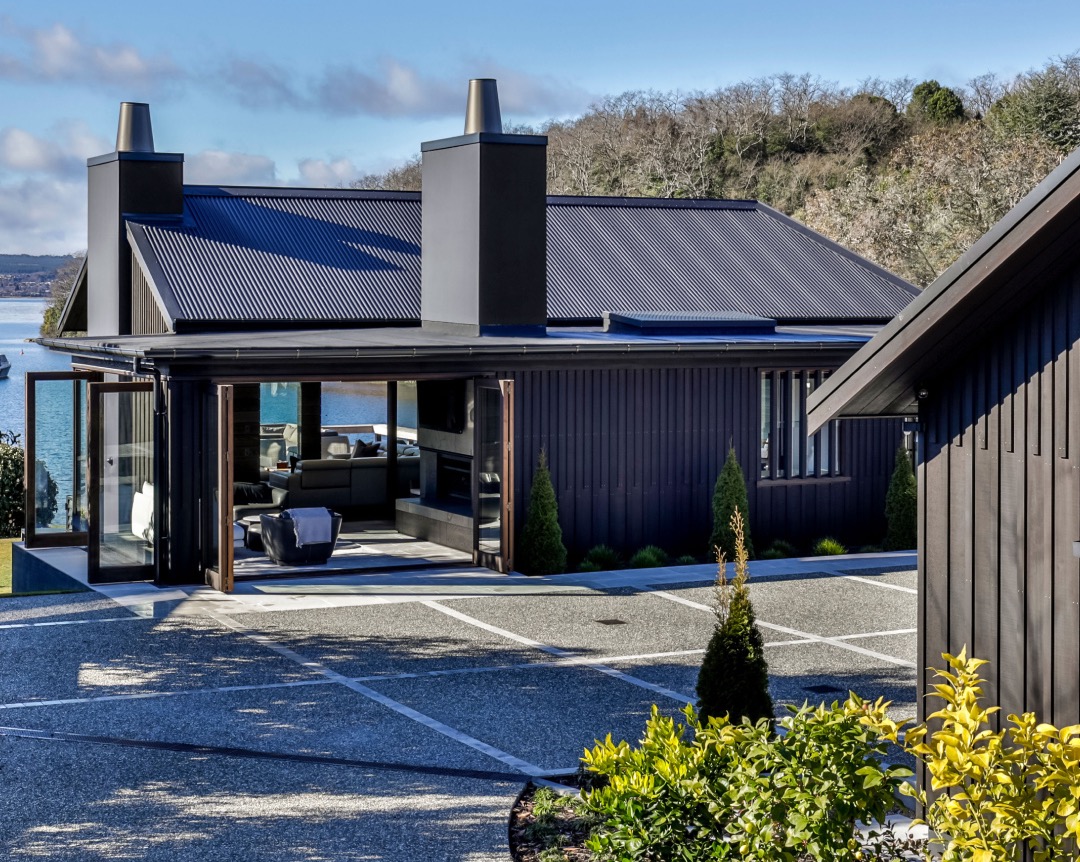 Dom nad jeziorem w Acacia Bay, Taupō, to nowoczesny dom wakacyjny, który harmonijnie łączy tradycję i współczesność, oferując wyjątkowe widoki na jezioro i wzgórze Tauhara.