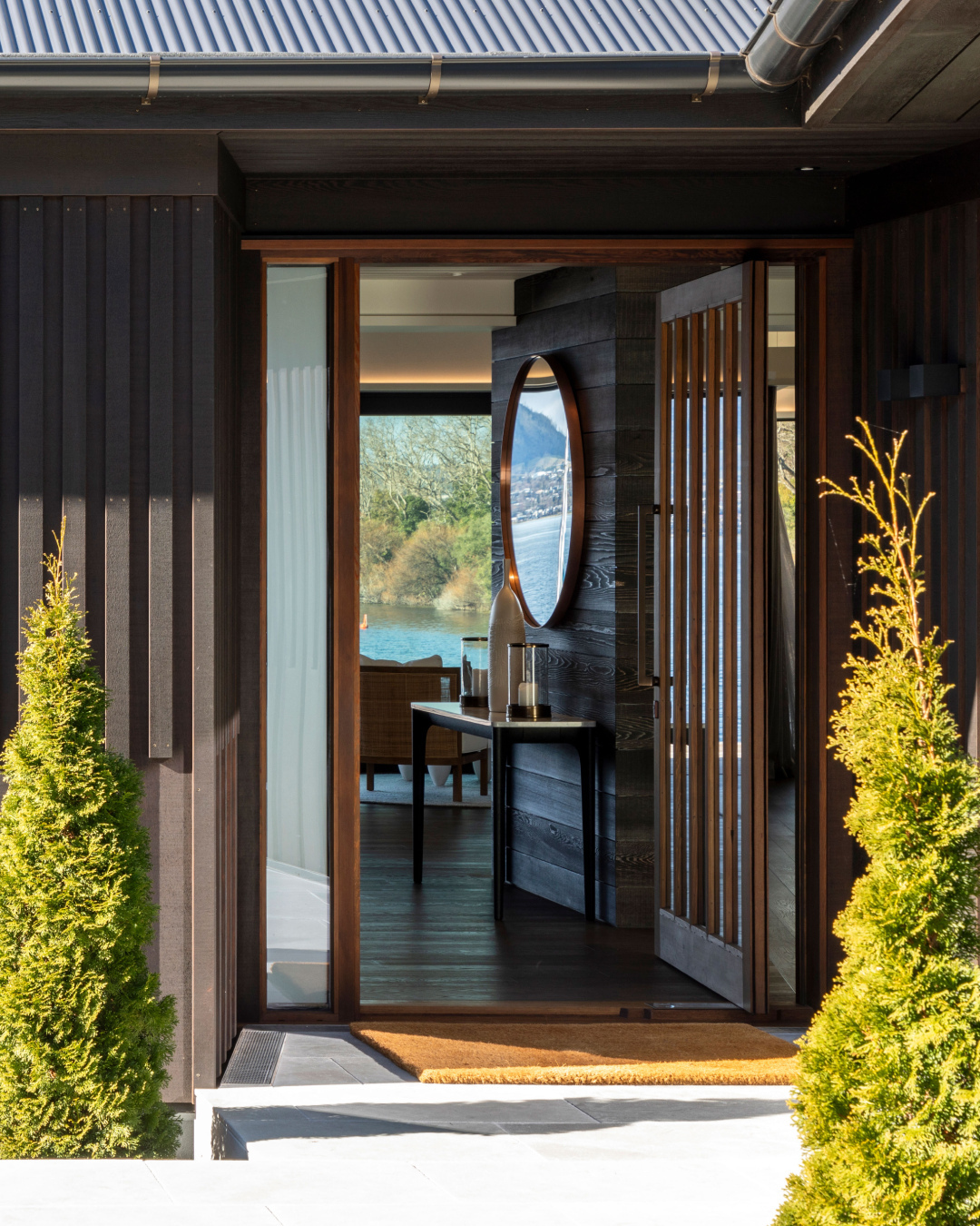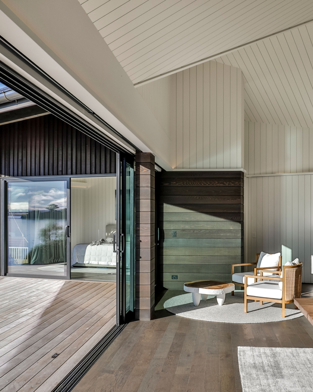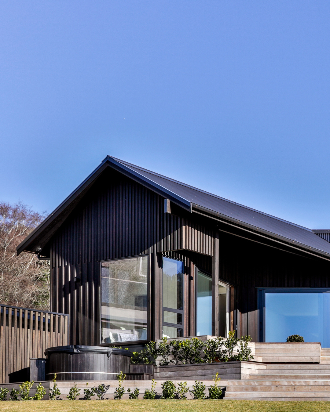 Dom nad jeziorem w Acacia Bay, Taupō, to nowoczesny dom wakacyjny, który harmonijnie łączy tradycję i współczesność, oferując wyjątkowe widoki na jezioro i wzgórze Tauhara.