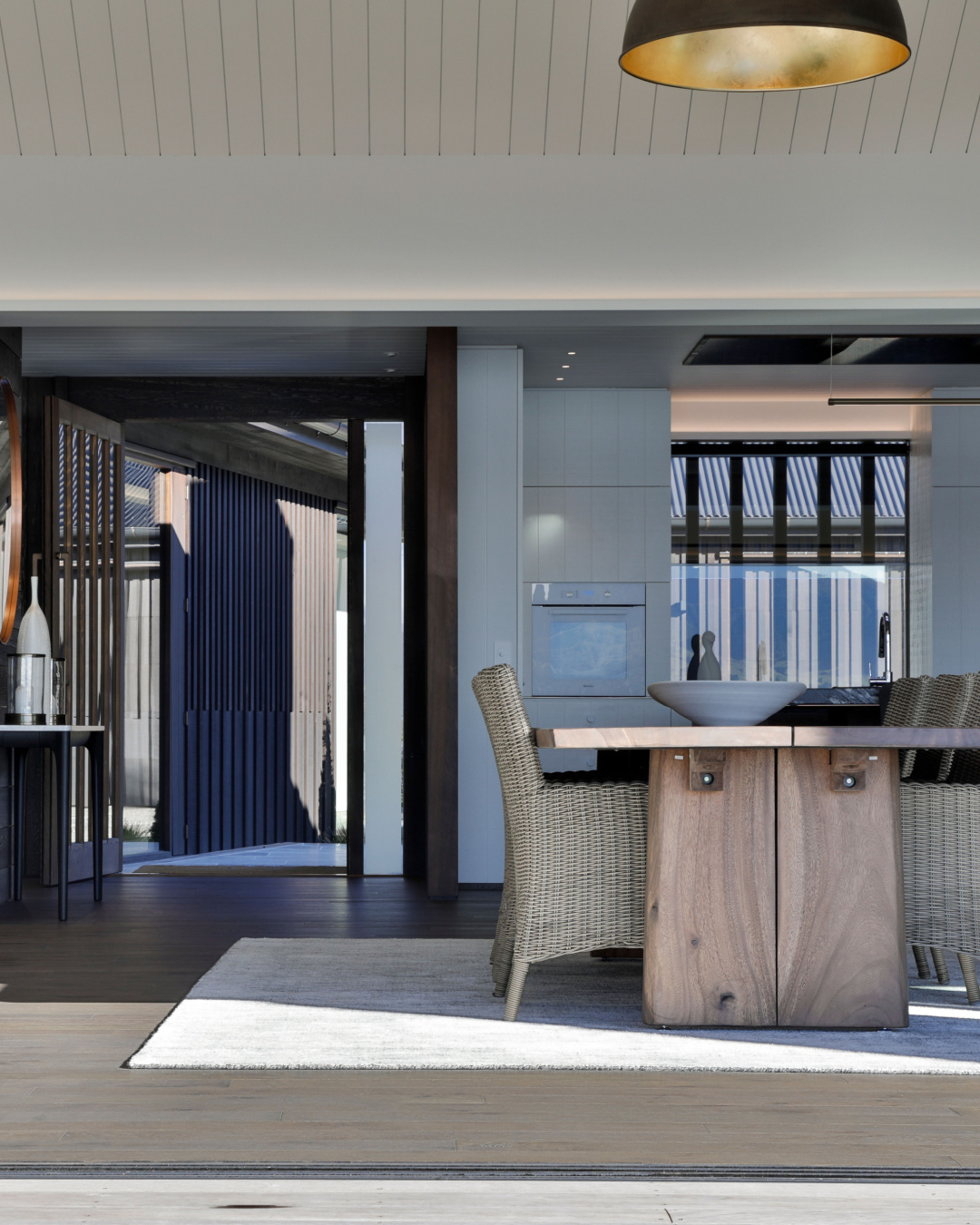 Projekt czerpie z dziedzictwa lokalnych „bachów”, z prostymi formami i elewacją z desek. Główne przestrzenie mieszkalne i sypialnia są rozmieszczone w kształcie boomerangu, odzwierciedlając plan wcześniejszego domu na tym terenie.