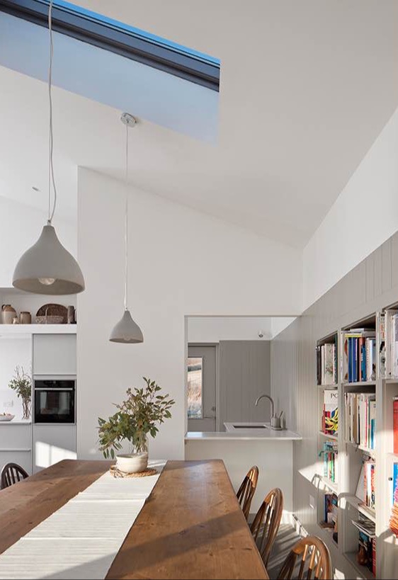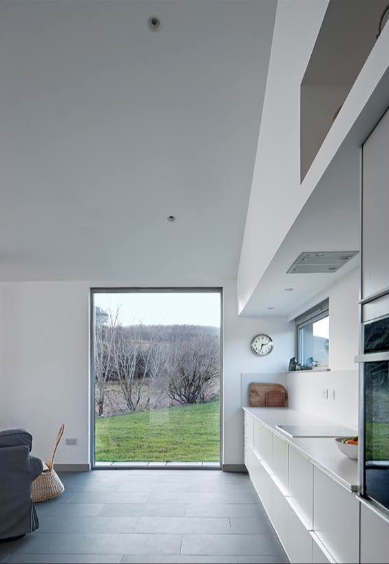 Projekt bazuje na starannym rozmieszczeniu i orientacji otworów okiennych. Każde przeszklenie kadruje wybrany fragment krajobrazu, wciągając widoki do wnętrza i podkreślając relację domu z otoczeniem. Dzięki temu mieszkańcy mogą na co dzień doświadczać zmienności pór roku i uroku szkockiej przyrody.