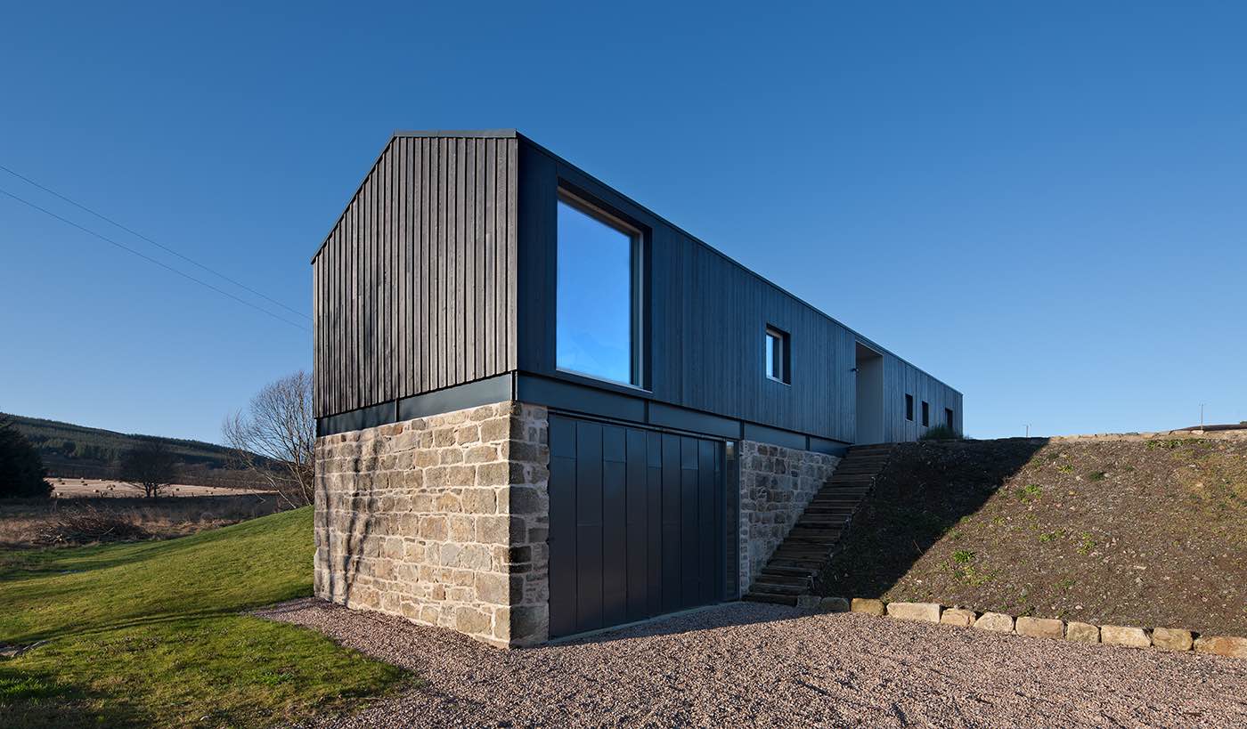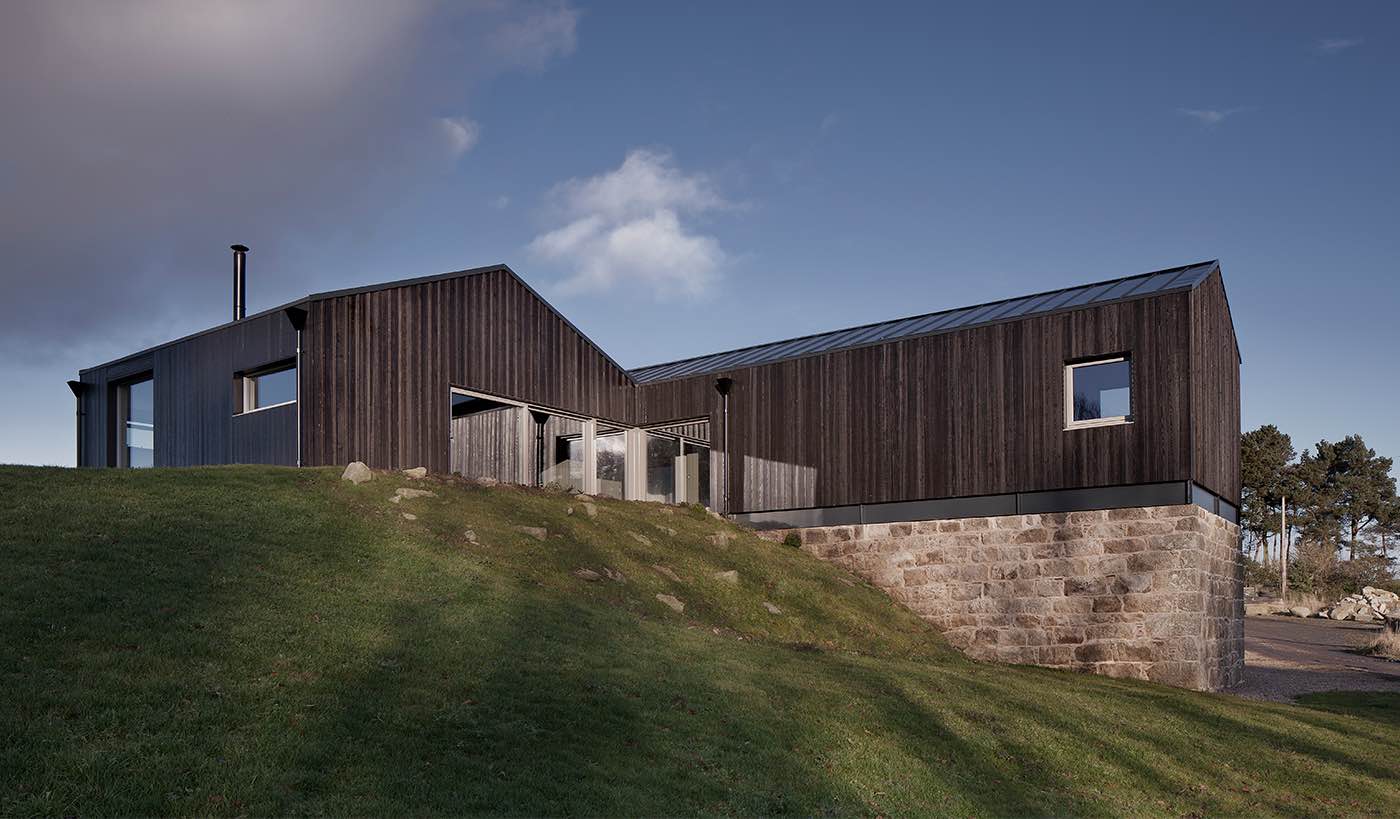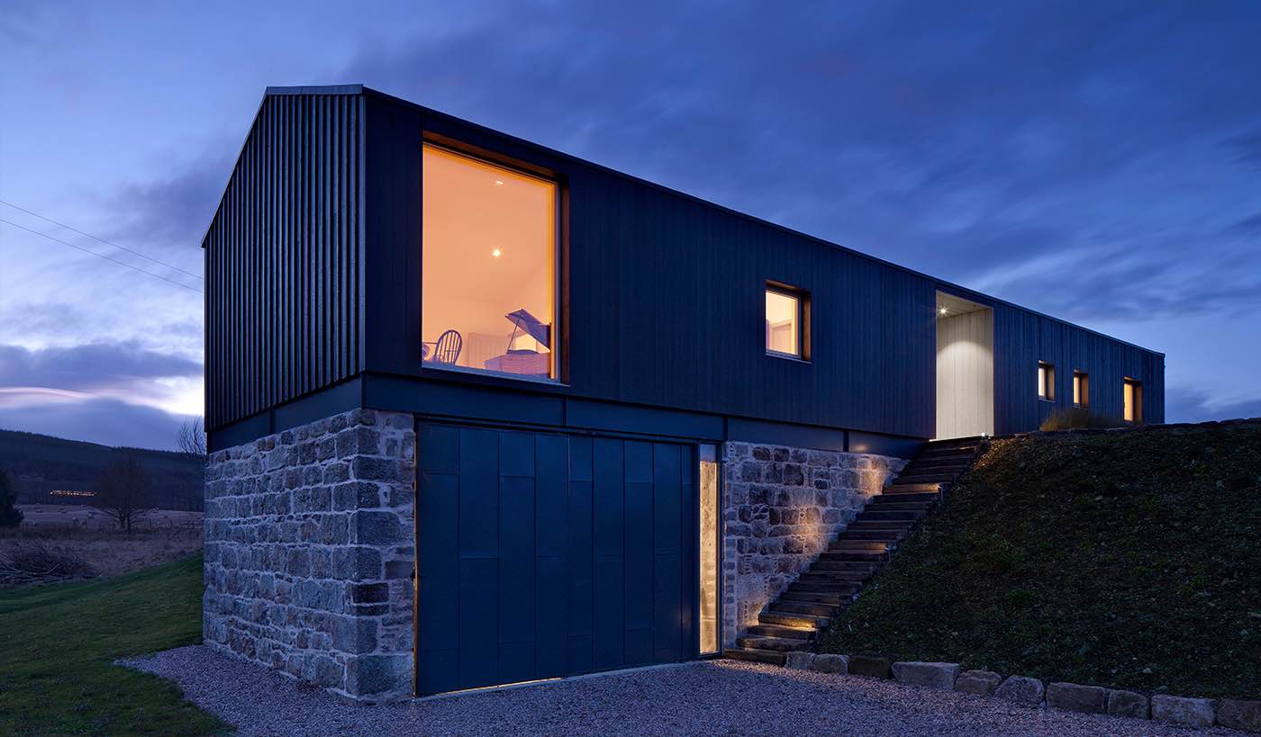 W malowniczym krajobrazie Aberdeenshire powstał dom jednorodzinny, który łączy nowoczesną architekturę z przeszłością miejsca. Projekt wykorzystuje pozostałości dawnego młyna – jego kamienne mury pozbawione dachu tworzą naturalny cokół dla współczesnej bryły. Dzięki temu nowy budynek staje się integralną częścią topografii i harmonijnie wpisuje się w szkocki krajobraz.