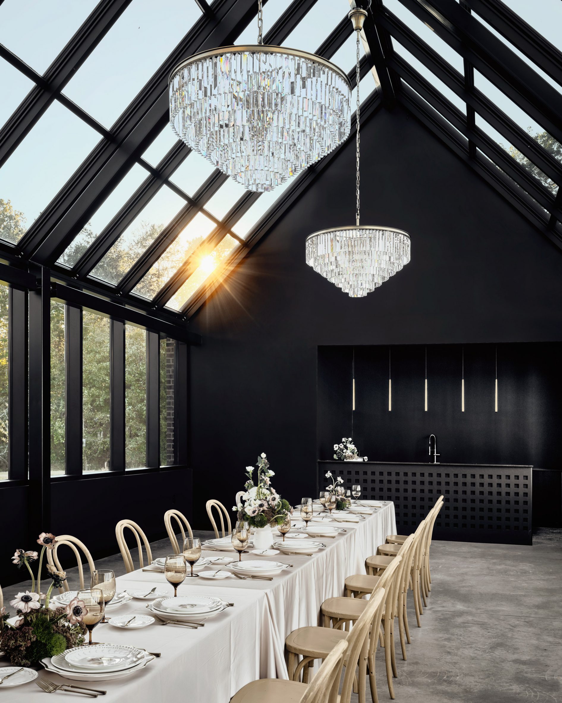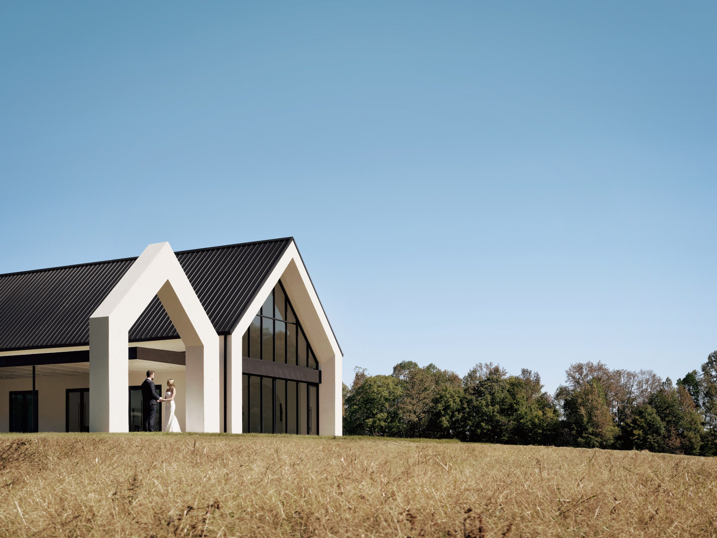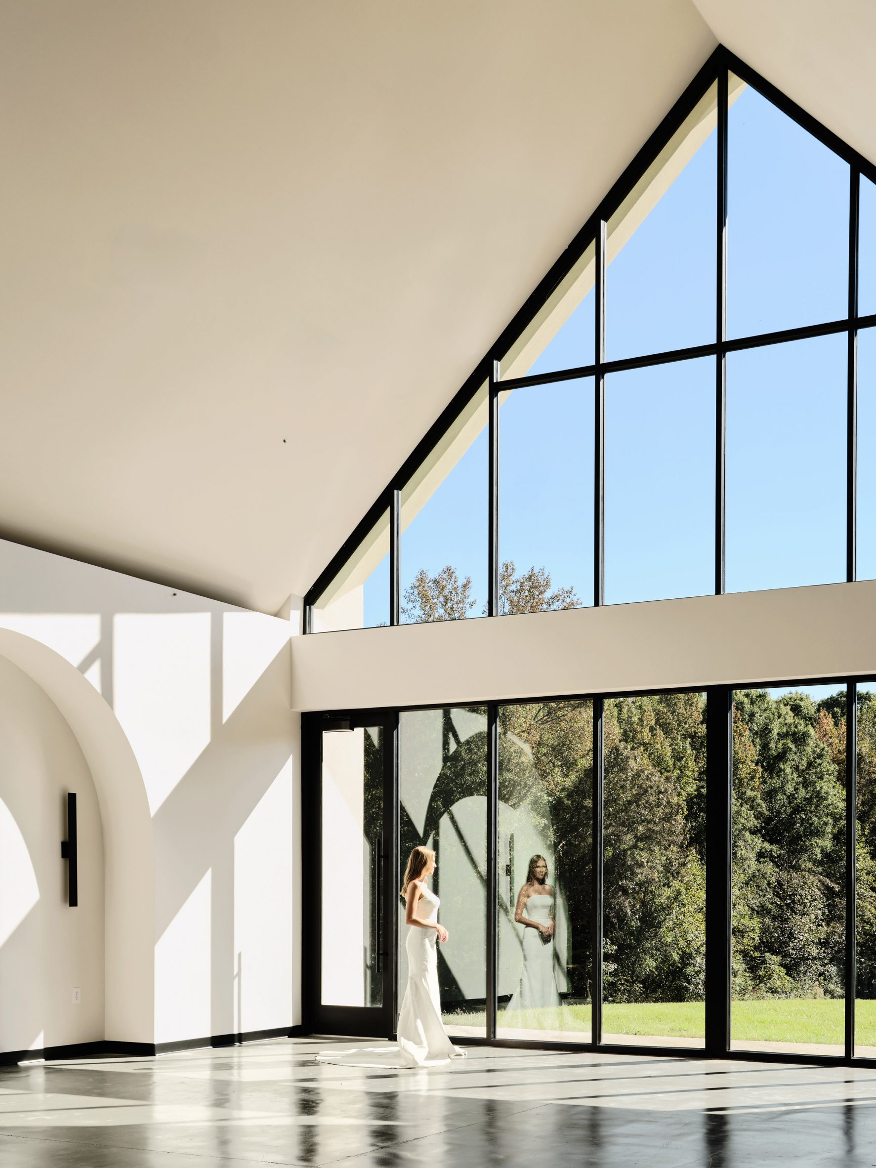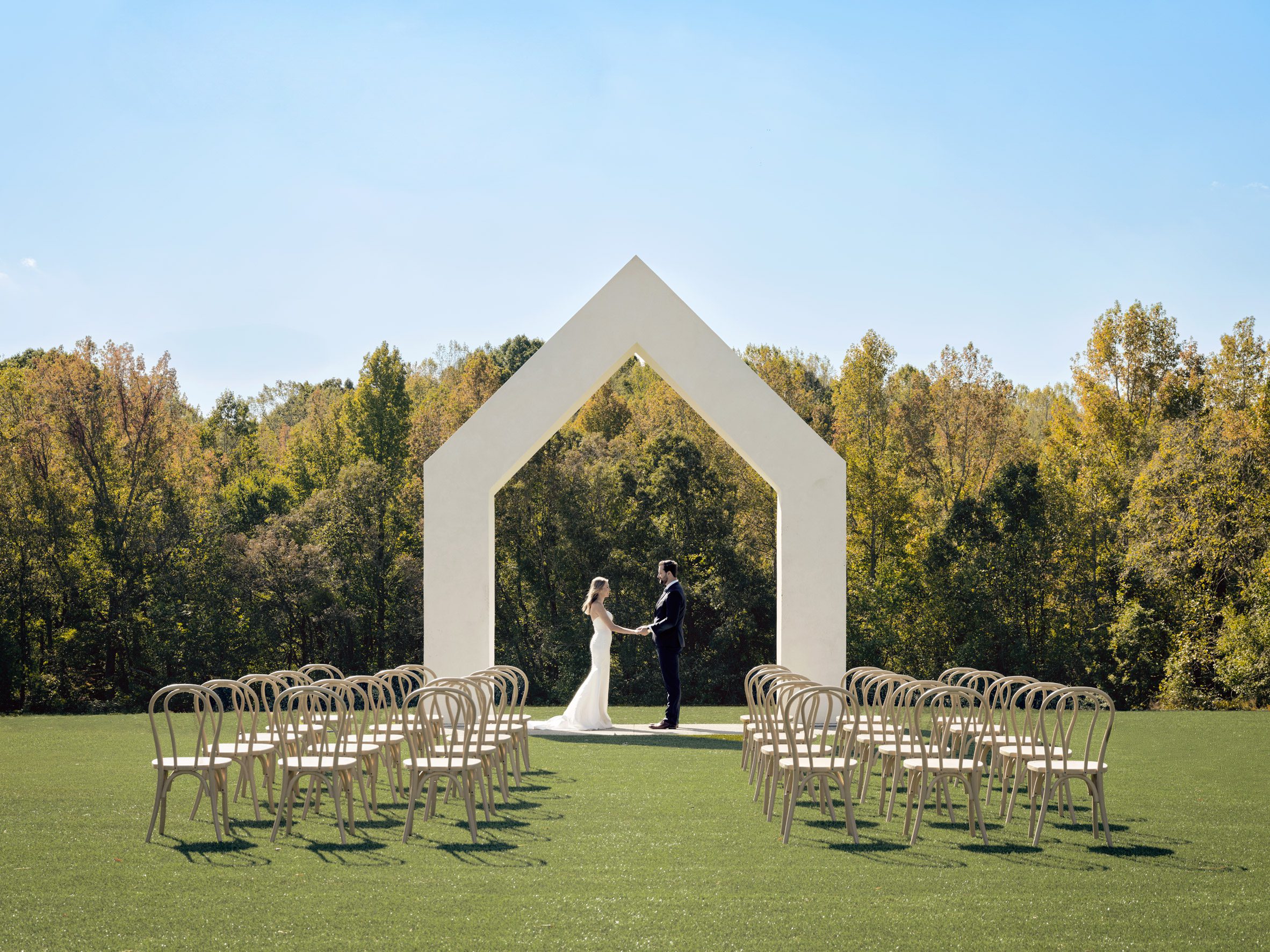 Na terenie obiektu znajduje się także duży trawnik z dwustronnym kominkiem, a kluczowym elementem przestrzeni jest minimalistyczna brama ślubna zaprojektowana przez The Ranch Mine. Jej forma symbolizuje nowy początek dla par wstępujących w małżeństwo.