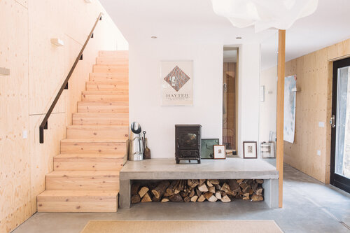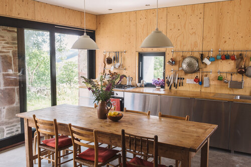We wnętrzach dominują naturalne materiały: świerkowa sklejka, gładki tynk, sosnowe podłogi i polerowany beton, co nadaje całości nowoczesny, ale ciepły wyraz. The Mill to przykład, jak dzięki odpowiedzialnej renowacji i współczesnej architekturze można tchnąć nowe życie w historyczne budynki wiejskie – tworząc dom trwały, ponadczasowy i idealnie osadzony w krajobrazie.