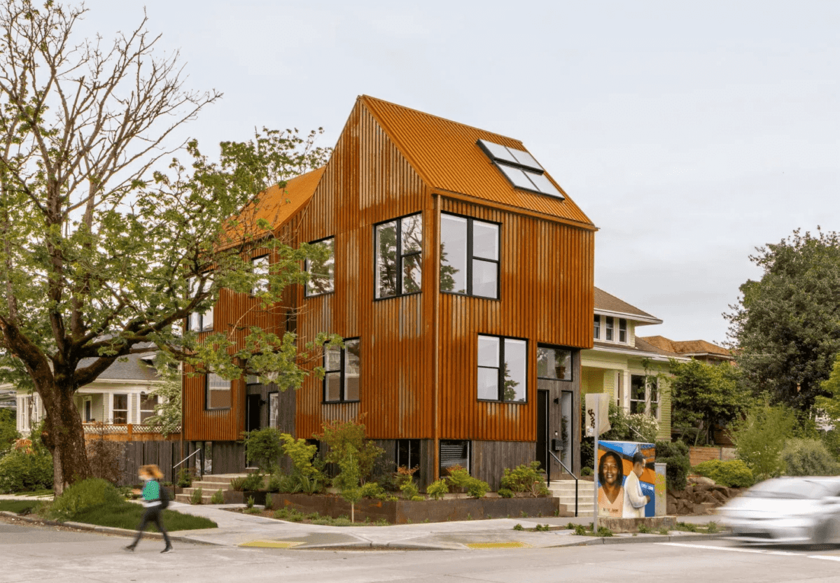 W Seattle znajduje się The Oak & Adler, wyjątkowy projekt wielomieszkaniowy autorstwa studia architektonicznego Hybrid. Ta inwestycja, inspirowana ideą nowoczesnej stodoły, została nadzorowana przez studio od koncepcji aż po realizację. Jej celem było stworzenie przyjaznej społecznościowo przestrzeni, która jednocześnie zwiększa gęstość zaludnienia w mieście bez kompromisów w zakresie architektury i estetyki.