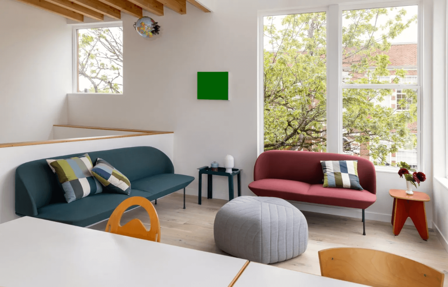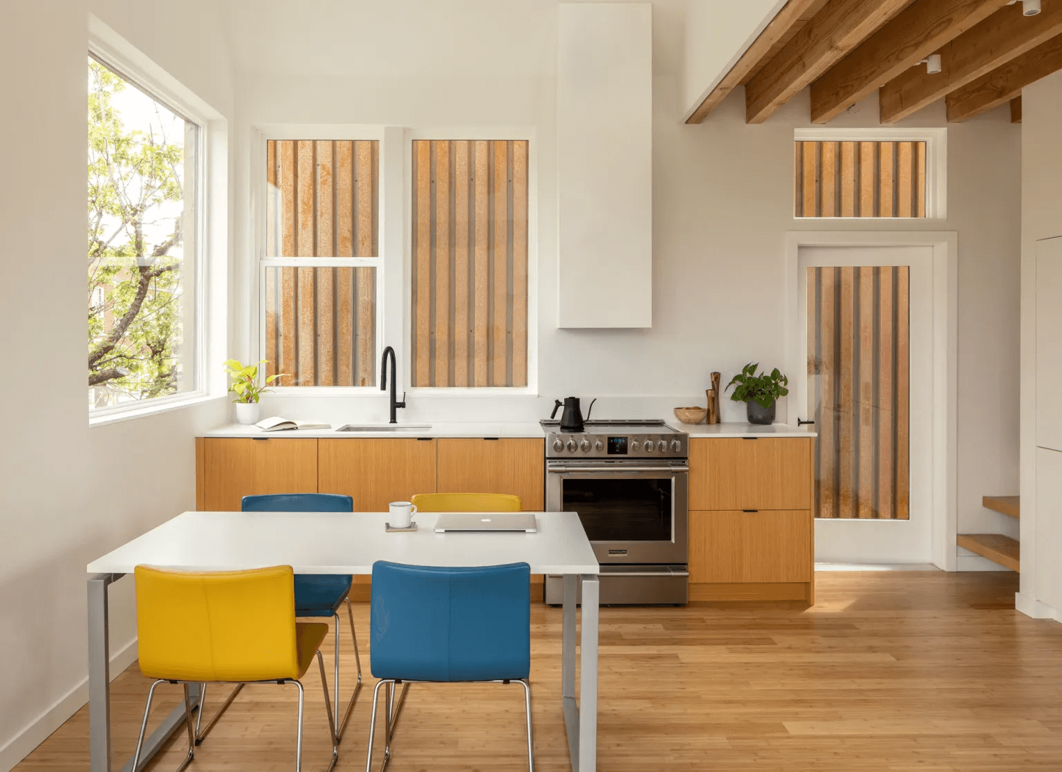 Nowoczesna stodoła w Seattle zachwyca stonowaną paletą barw, łącząc białe powierzchnie z jasnymi bambusowymi podłogami, współczesnymi meblami oraz drewnianymi belkami sufitowymi. Wnętrza wypełnione kolorowymi detalami i funkcjonalnymi rozwiązaniami emanują rodzinną i przyjazną atmosferą, idealnie wpisując się w koncepcję współczesnego stylu życia.