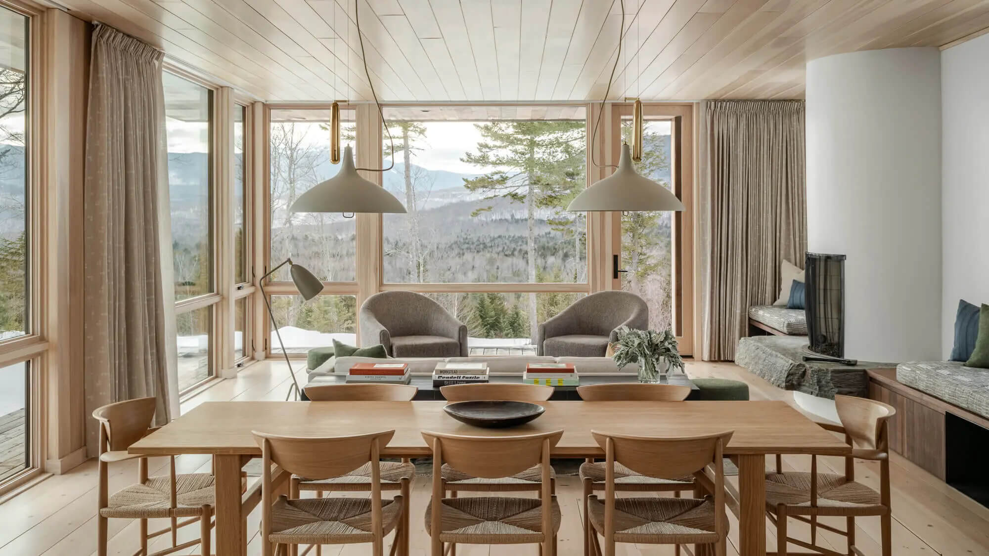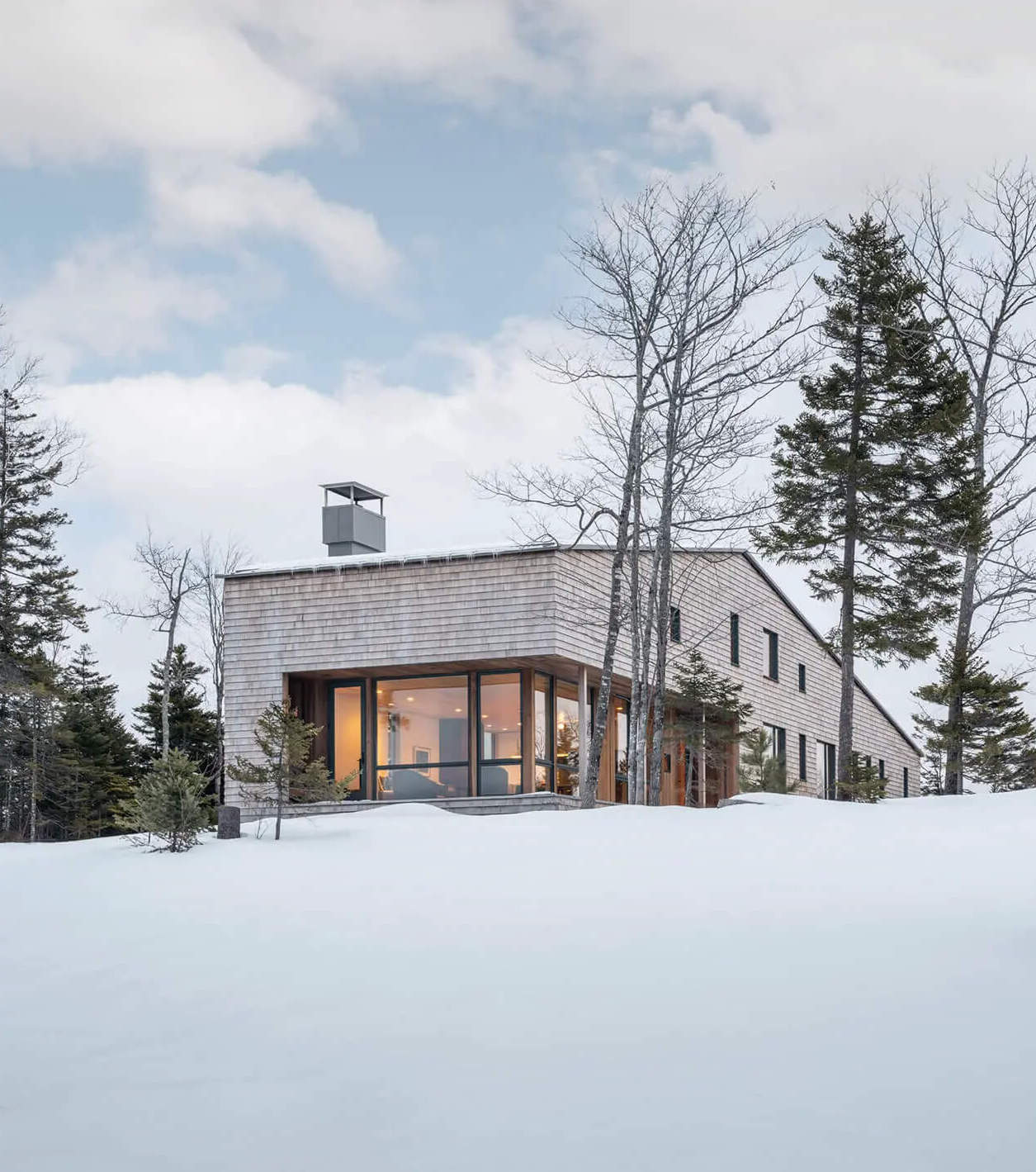 Dolina Carrabassett to region słynący z naturalnego piękna i zimowych atrakcji na świeżym powietrzu. Klienci z Bostonu postanowili zrealizować projekt całorocznego domku, który zapewniłby dostęp do malowniczych gór i popularnych szlaków. Położony na szczycie góry, dom nie tylko oferuje zapierające dech w piersiach widoki, ale także harmonijnie współgra z otaczającym krajobrazem, zachowując otwarty dostęp do punktów widokowych i szlaków.