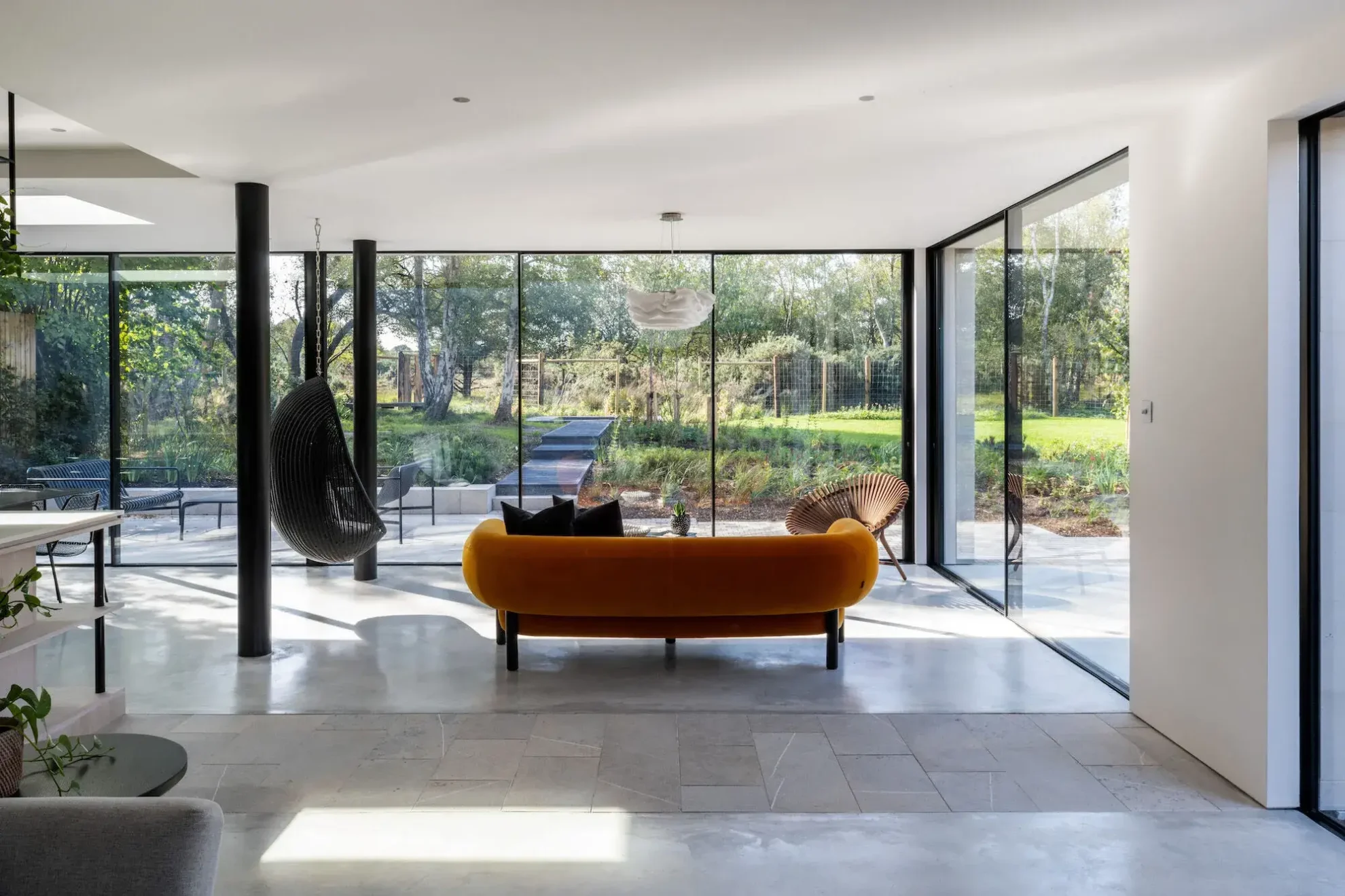 Wizją nowego projektu było stworzenie nowoczesnej dobudówki, która powiększyłaby dom dla właścicieli i ich rosnącej rodziny, jednocześnie ściślej łącząc budynek z jego naturalnym otoczeniem. Nowa dobudowa z boku i z tyłu posiada duże przeszklenia. Dzięki nimi można podziwiać spektakularne widoki na wspaniały krajobraz Dorset, otwierając dom na światło i słońce oraz umożliwiając właścicielom interakcję z mnóstwem lokalnej flory i faunę tworzącą tło posiadłości.