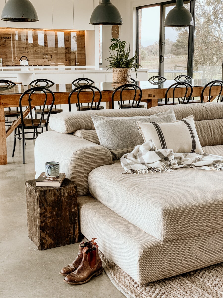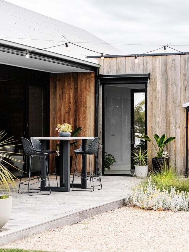 Architektura The Sandhill to połączenie industrialnego stylu, recyklingu i przemyślanych rozwiązań. Dwa pawilony wypełnione naturalnym światłem oferują minimalistyczne wnętrza z cegłą z odzysku, drewnem i metalem. Symboliczny stół do sortowania wełny z Byron Bay, przekształcony w stół jadalniany, nadaje projektowi charakteru i głębi. Ta nowoczesna stodoła łączy piękno używanych materiałów z praktycznym podejściem do życia w zgodzie z naturą.