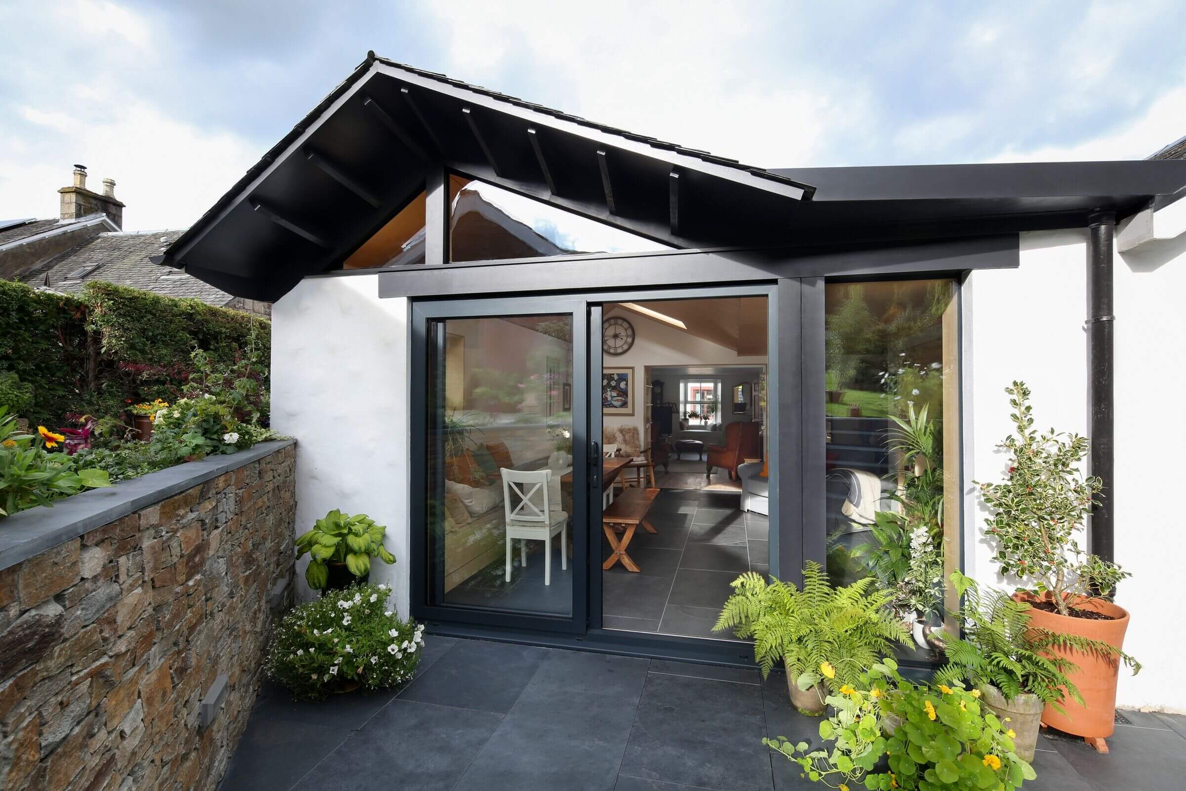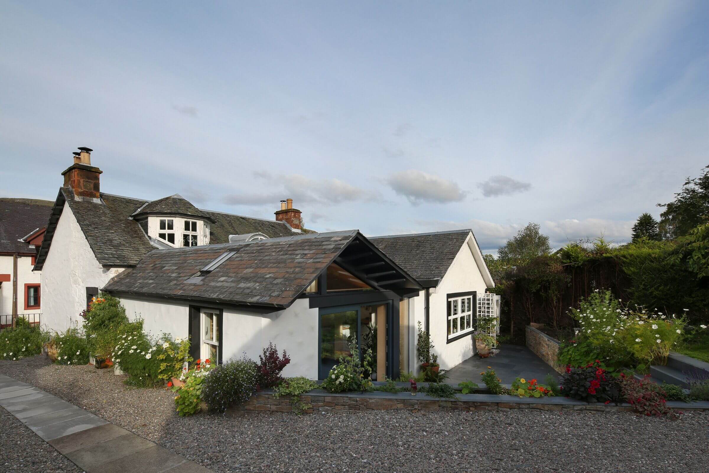 Klienci kupili uroczy stary domek w sercu obszaru chronionego Fintry z zamiarem stworzenia szklanego przedłużenia budynku skierowanego na malowniczy widok. Jednak po konsultacjach z architektami zdecydowali się na cieplejsze rozwiązanie, które lepiej wpisywało się w lokalną tradycję.