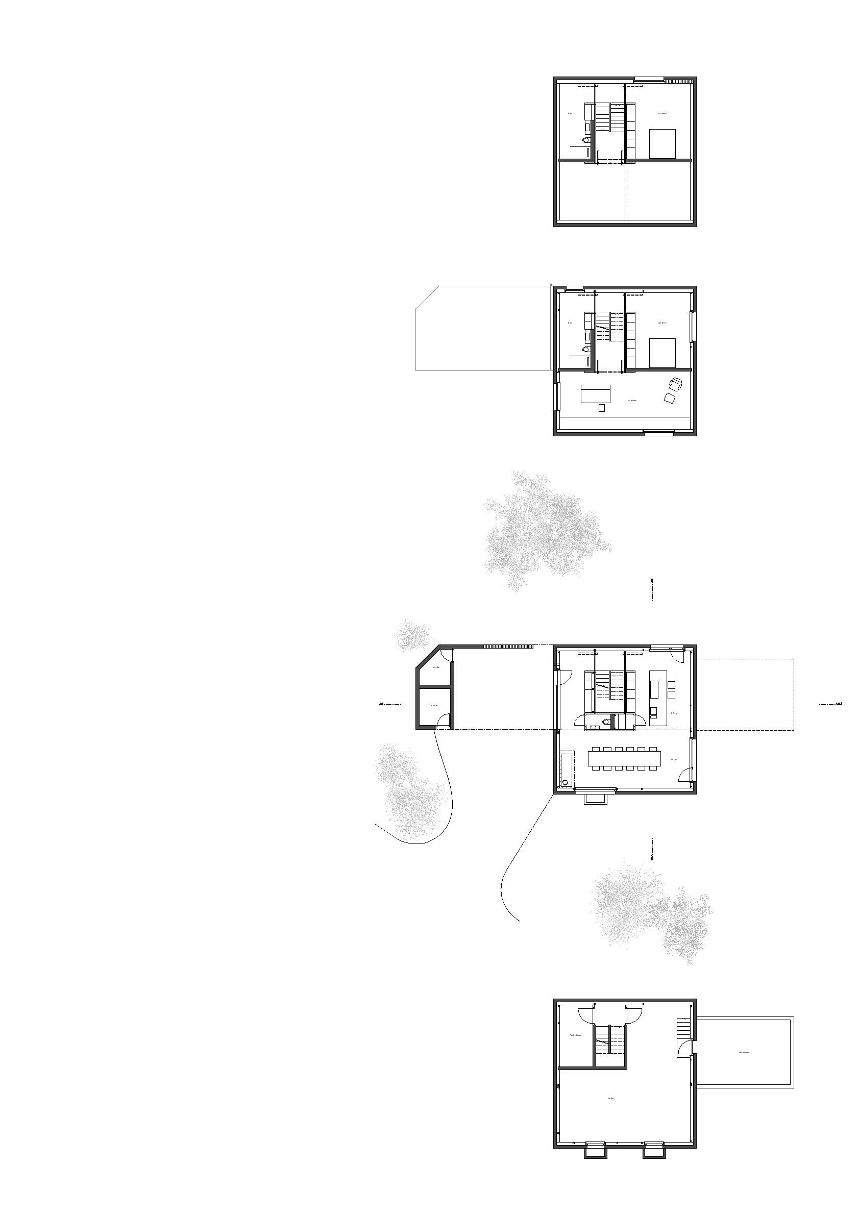 Wszystkie pomieszczenia rozmieszczono wokół centralnej, drewnianej klatki schodowej, która organizuje układ wnętrz i sprzyja pionowej komunikacji. Podwyższony salon tworzy przestrzeń antresoli na wyższych kondygnacjach, zróżnicowane wysokości pomieszczeń oraz ich orientacja wzmacniają funkcjonalność i atmosferę wnętrz.