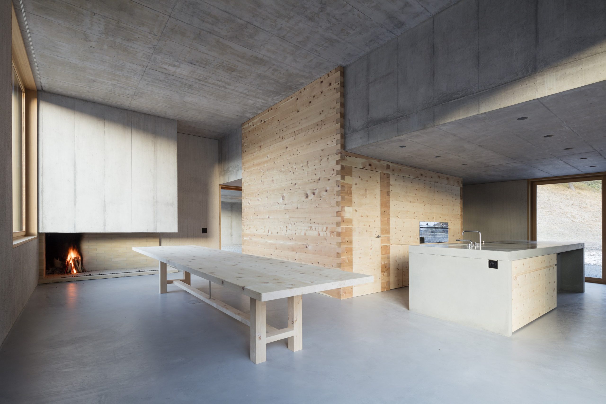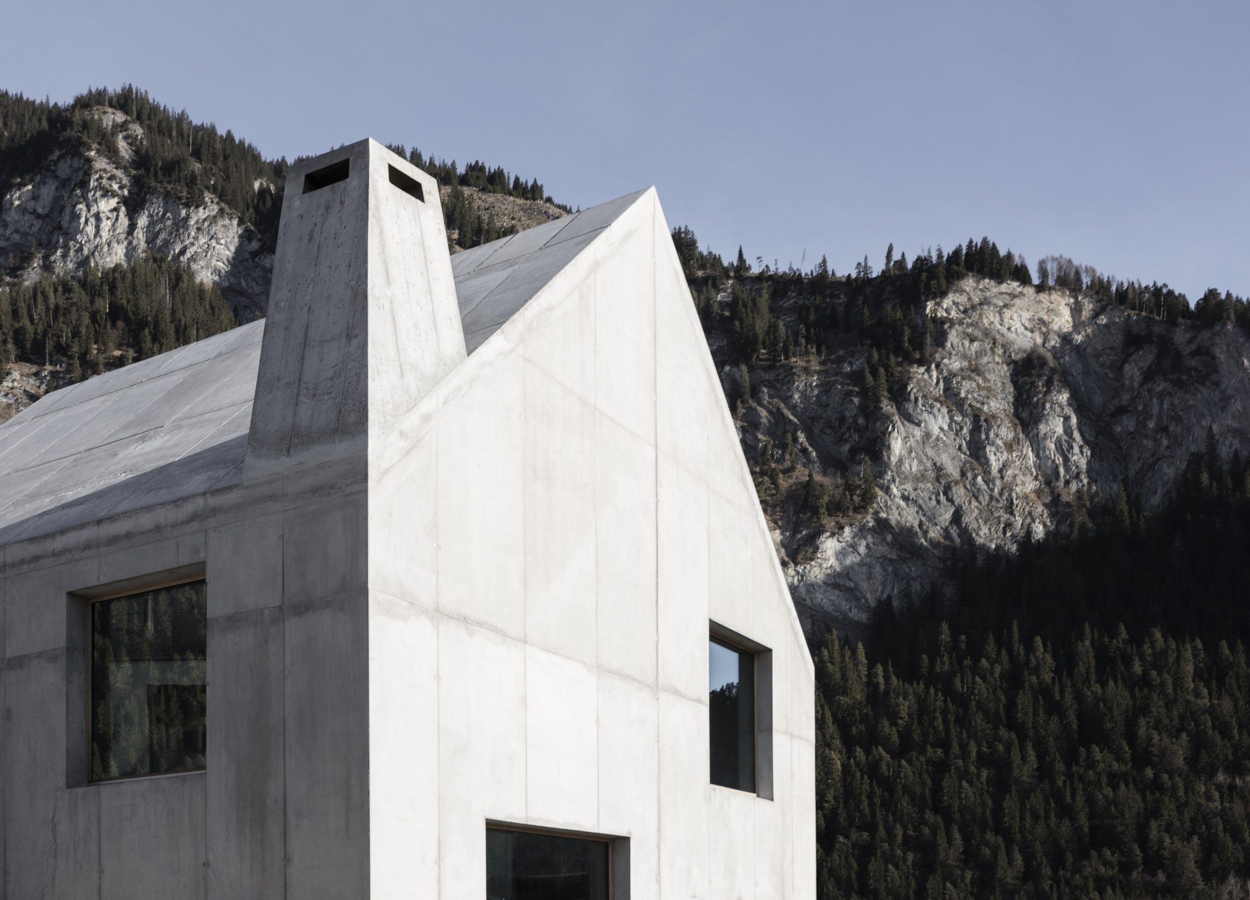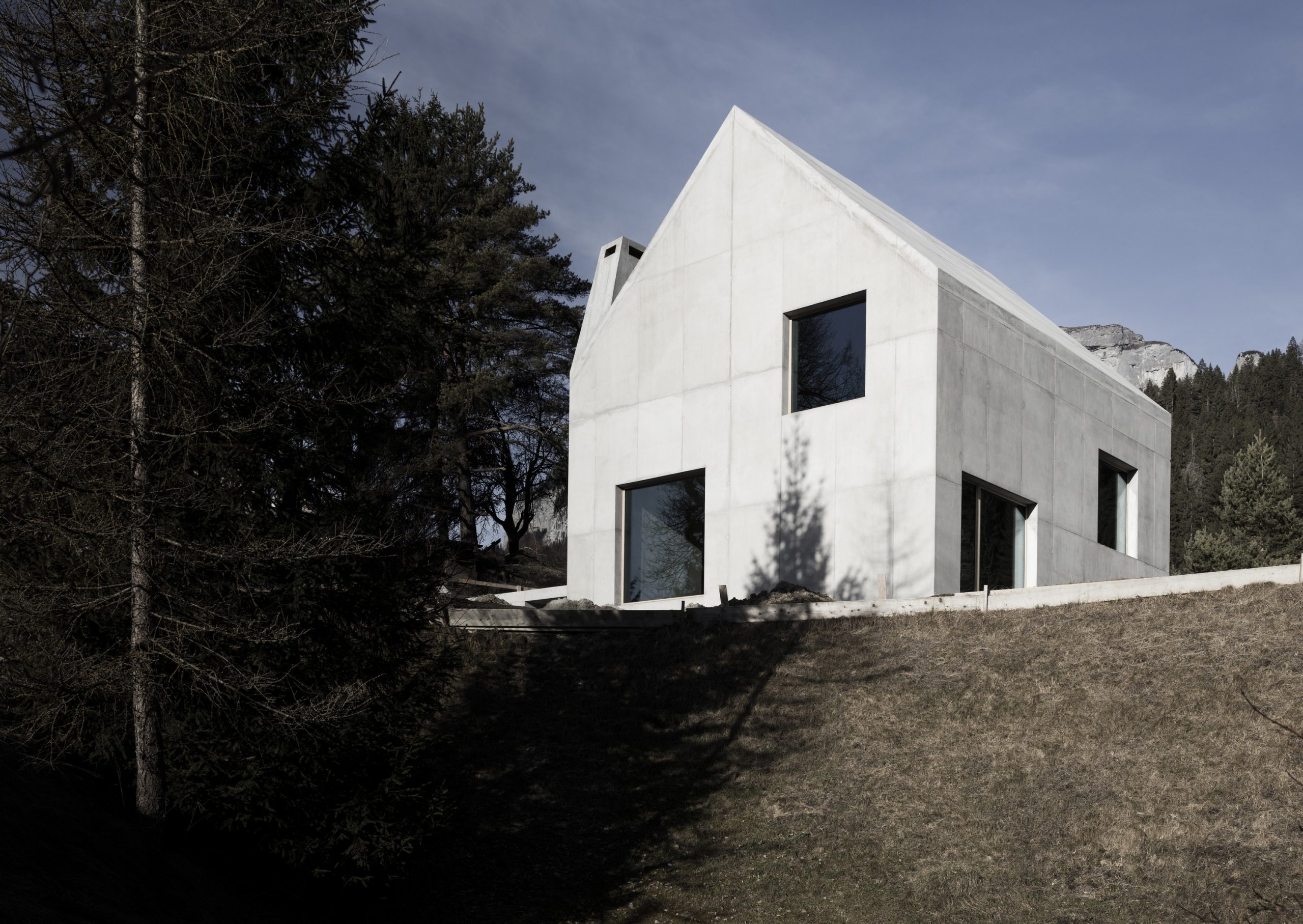 Duże, starannie rozmieszczone okna kadrują widoki na Alpy Gryzońskie, doświetlając wnętrza i dodając lekkości zwartej formie. Projekt cechuje minimalizm, trwałość i związek z kontekstem, a sam dom łączy nowoczesną estetykę z górskim charakterem regionu.