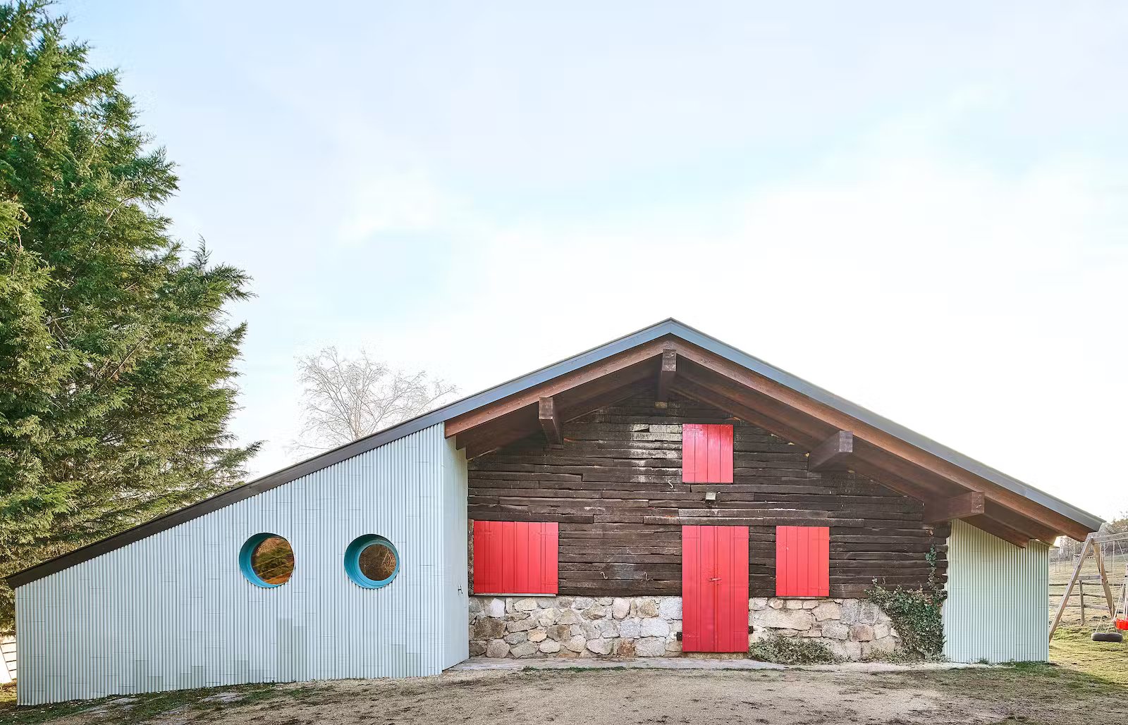W pierwszym etapie, już wykonanym, na obwodzie dachu powstaje trzyczęściowa dobudowa z okładziną ceramiczną, która wyróżnia nowe elementy: powiększoną część dzienną, sypialnię dla czterech córek (w miejscu, gdzie znajdował się garaż i drewutnia) oraz kotłownię. Kamienne ściany zostały wycięte i zastąpione skośną metalową belką i ściągaczem, dzięki czemu cała część mieszkalna otwiera się na krajobraz. Zmieniany jest również dach, przy czym materiały są odzyskiwane i przekształcane w wyposażenie wnętrz.