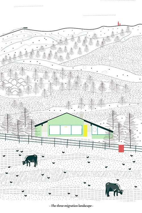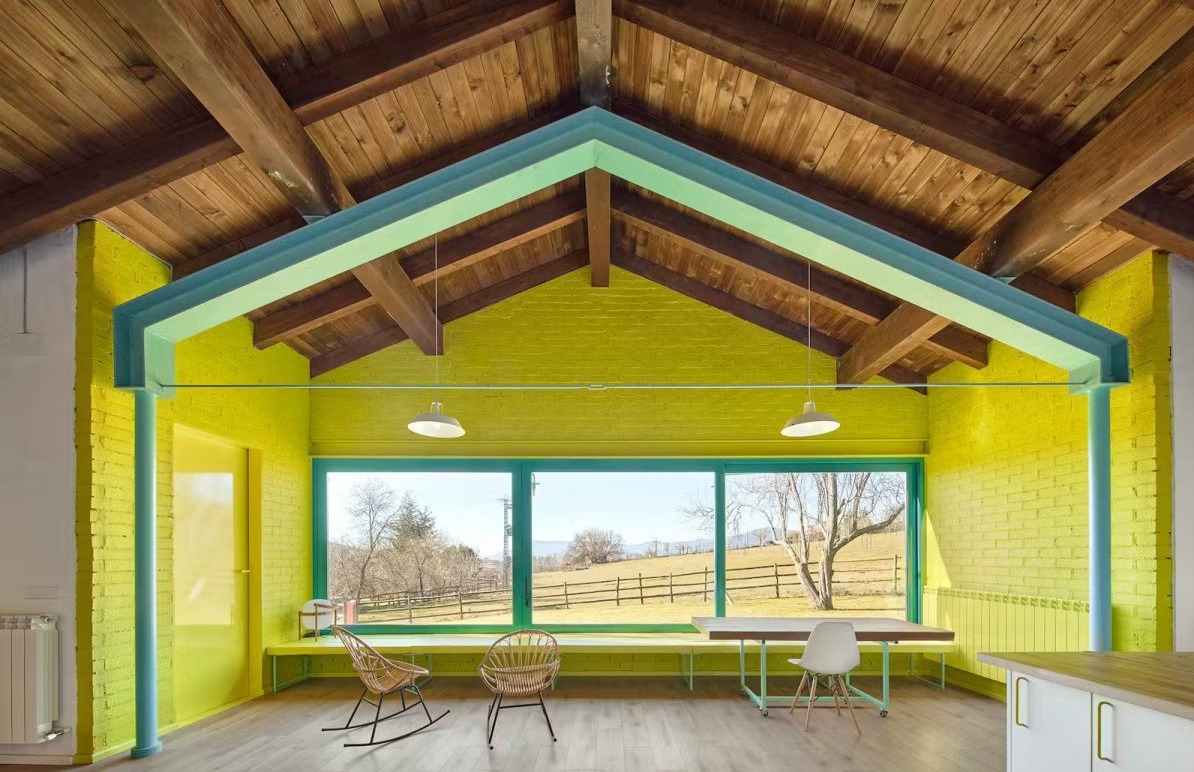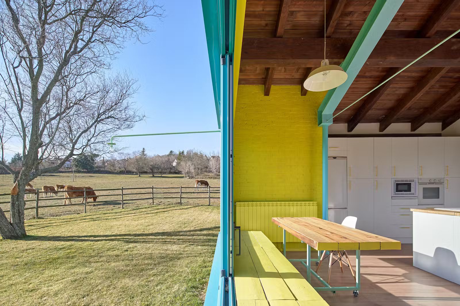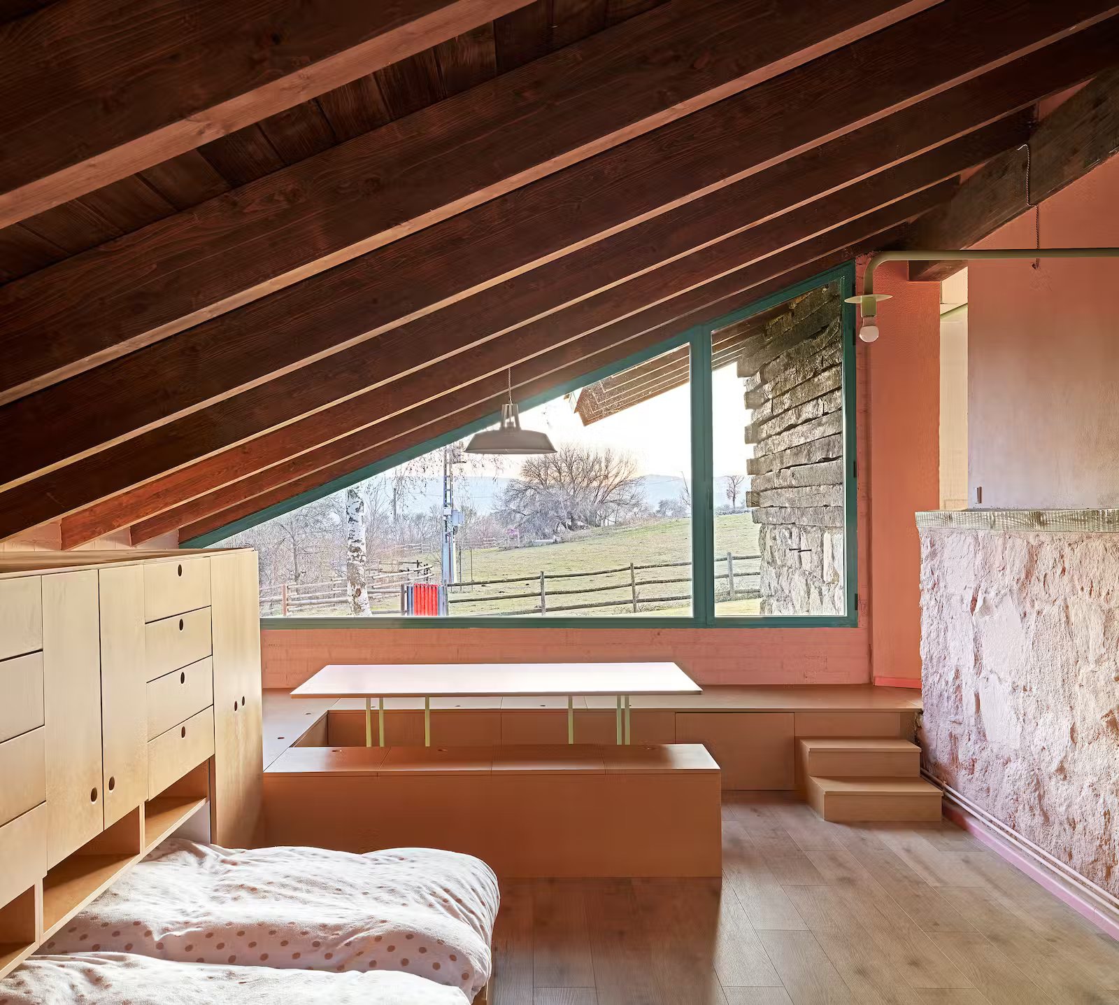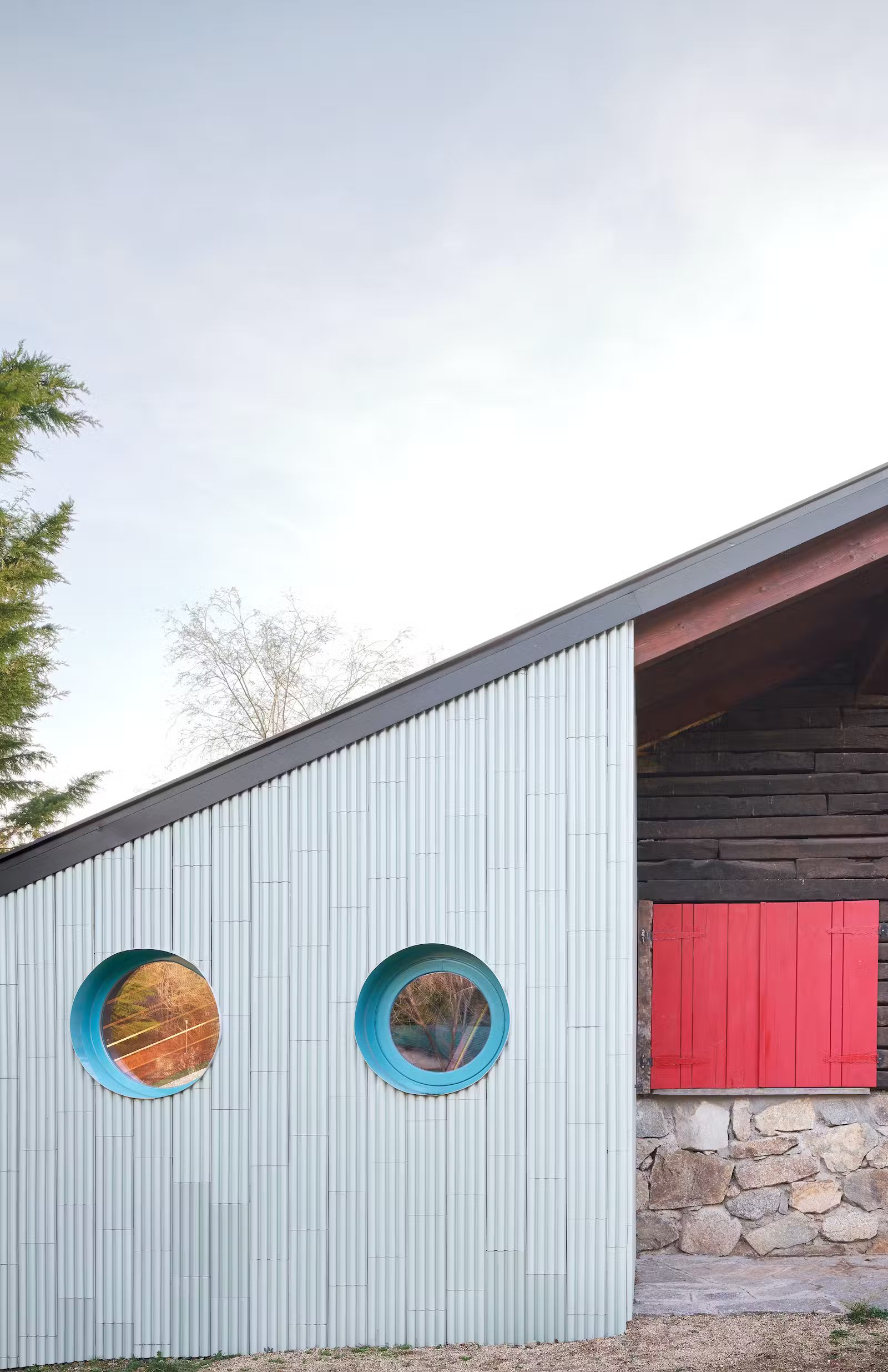 Na szczycie starych materiałów, które otrzymały drugie życie, znajduje się kolejna nowa warstwa materiałów, głównie metalu, która przybliża dom do krajobrazu: ukryte drzwi prowadzące bezpośrednio na pole; obrotowe lampy zewnętrzne, które oświetlają wieczorne posiłki na zewnątrz w miesiącach letnich; cztery ruchome łóżka i dwa iluminatory umożliwiające obserwację od północy aż po południowy krajobraz. Młody Stary Dom uwidacznia relacje pomiędzy obiektami, mieszkańcami i krajobrazami, pomiędzy starym a obecnym, a także nowe, które pozwalają przemyśleć współczesne modele zamieszkiwania terytorium „wiejsko-miejskiego”.