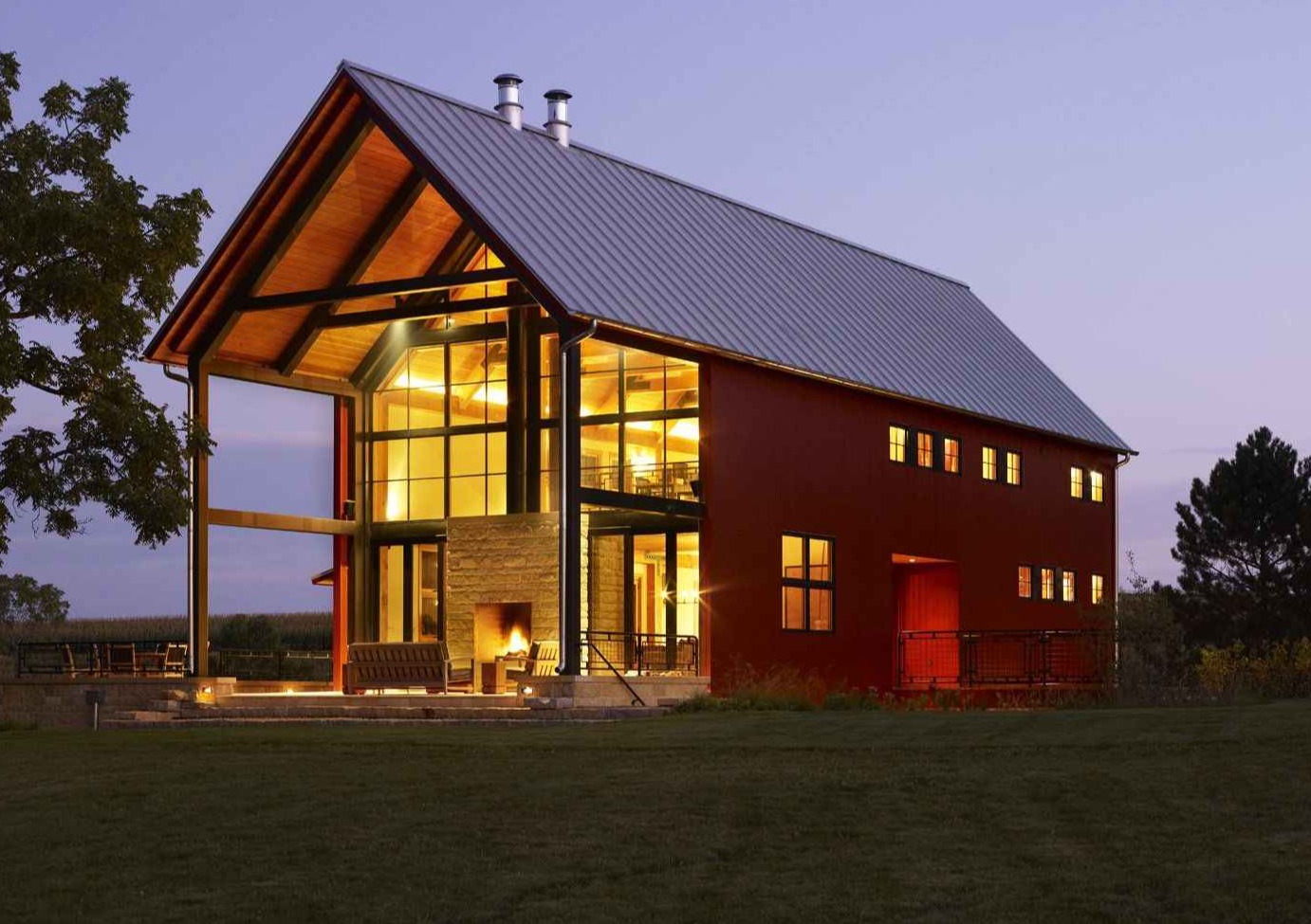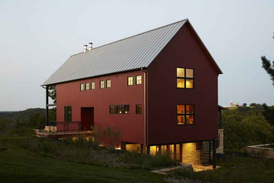 Ten nowoczesny dom w Wisconsin powstał z elementów 130-letniej stodoły, która znajdowała się pierwotnie na zakupionej działce. Realizacja jest spełnieniem marzeń czteroosobowej rodziny o ekologicznym, solidnym i funkcjonalnym domu weekendowym, blisko natury i z dala od miejskiego zgiełku. Zrujnowana stodoła wymagała całkowitej rozbiórki, jednak wszystkie elementy nadające się do ponownego wykorzystania zostały starannie odzyskane. Dzięki temu nowy budynek zyskał autentyczny charakter i stał się przykładem idei nowoczesna stodoła, opartej na recyklingu materiałów i szacunku do historii miejsca.