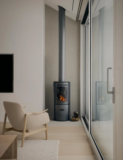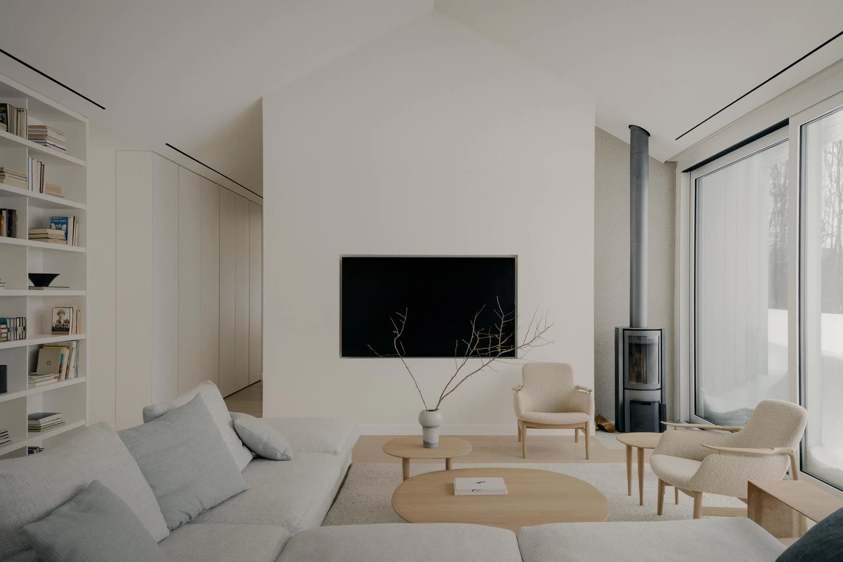 Dom powstał jako świadoma odpowiedź na lokalne warunki klimatyczne. Głębokie wnęki okienne ograniczają przegrzewanie się wnętrz latem, a zimą wpuszczają niskie słońce. Naturalna wentylacja krzyżowa, potrójne przeszklenia oraz wysoka izolacyjność ścian i dachu zapewniają komfort przez cały rok. Timbertop House nie dominuje nad wzgórzem – współistnieje z nim, jakby stał tam od zawsze. To architektura, która subtelnie wtapia się w krajobraz i stawia na równowagę zamiast efektowności.