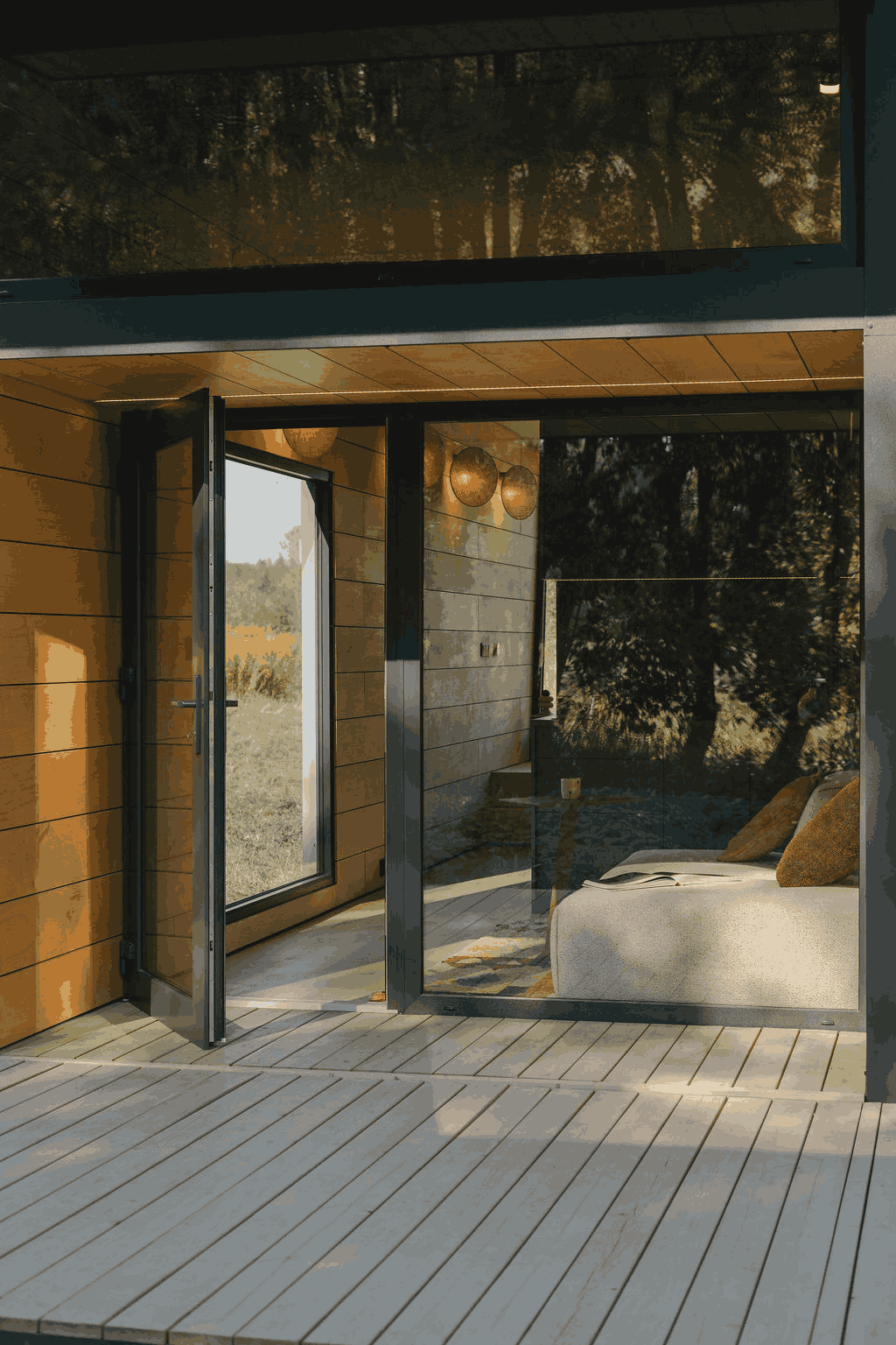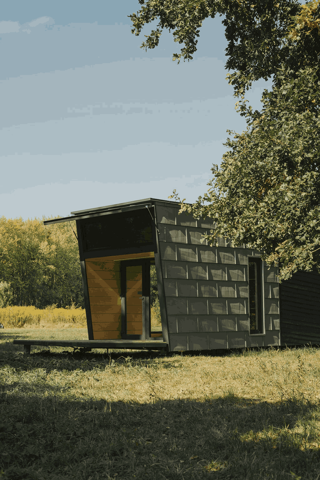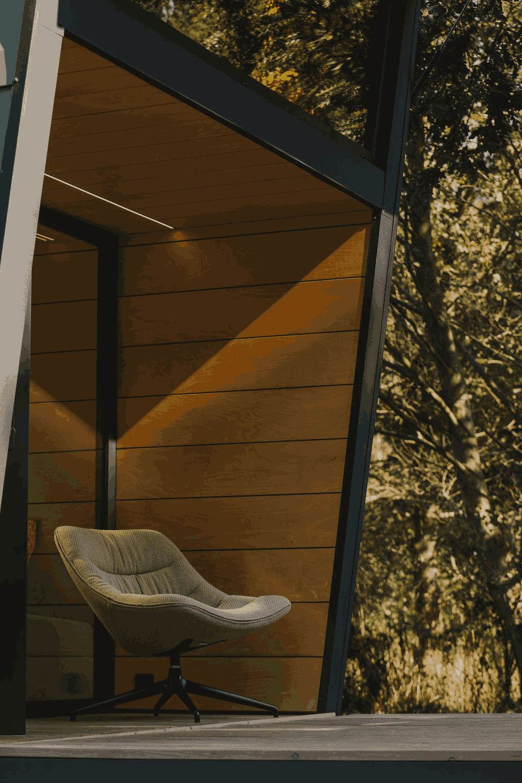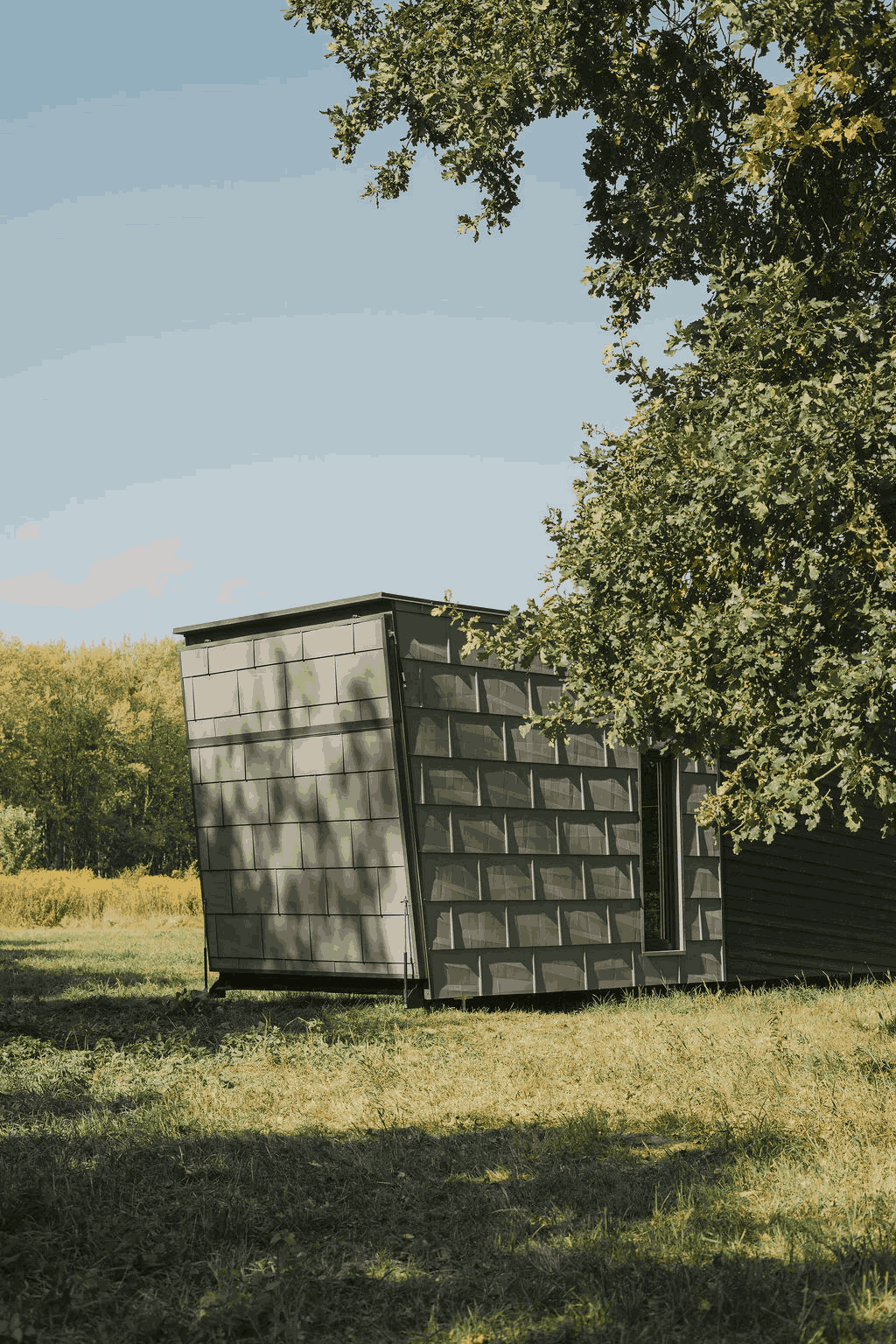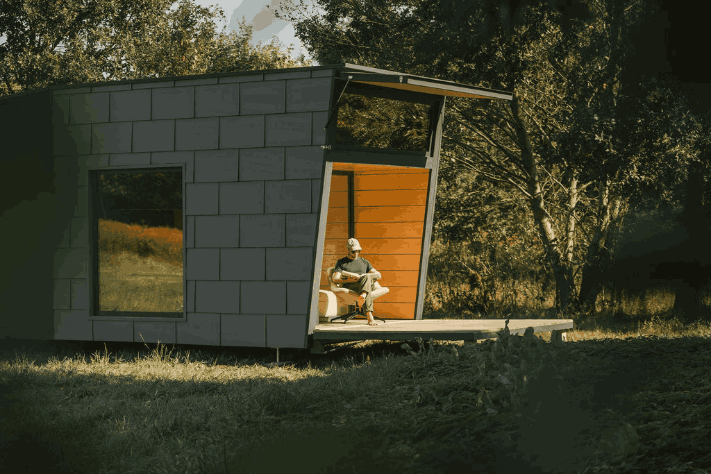To właśnie taras stał się punktem wyjścia do całej koncepcji. W większości mobilnych domków taras jest elementem dołączanym, co komplikuje transport. Architekci postanowili więc zintegrować taras z bryłą budynku, tak by można go było… zabrać ze sobą.